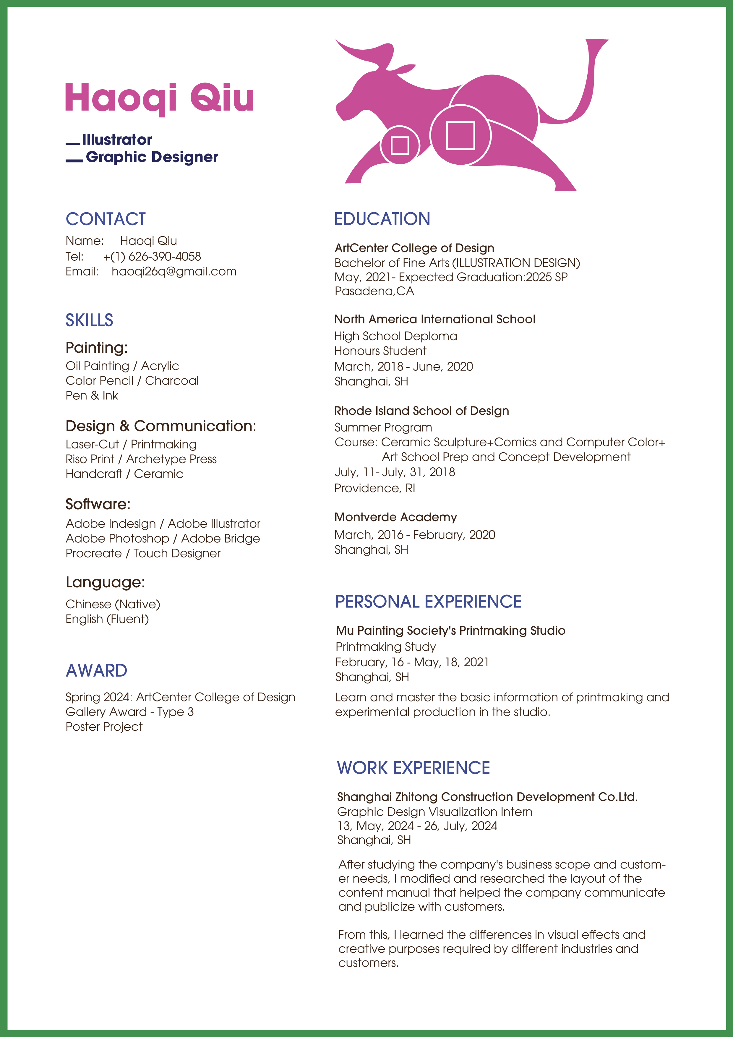 Hello, I’m Haoqi Qiu from China. For me, design is the visual communication of ideas and thoughts, and I have always been fascinated by how different materials and techniques can express complex concepts. The open-minded approach to experimentation and embracing diverse media, topics, and techniques allows me to freely explore and refine my design language, helping me push the boundaries of traditional methods.