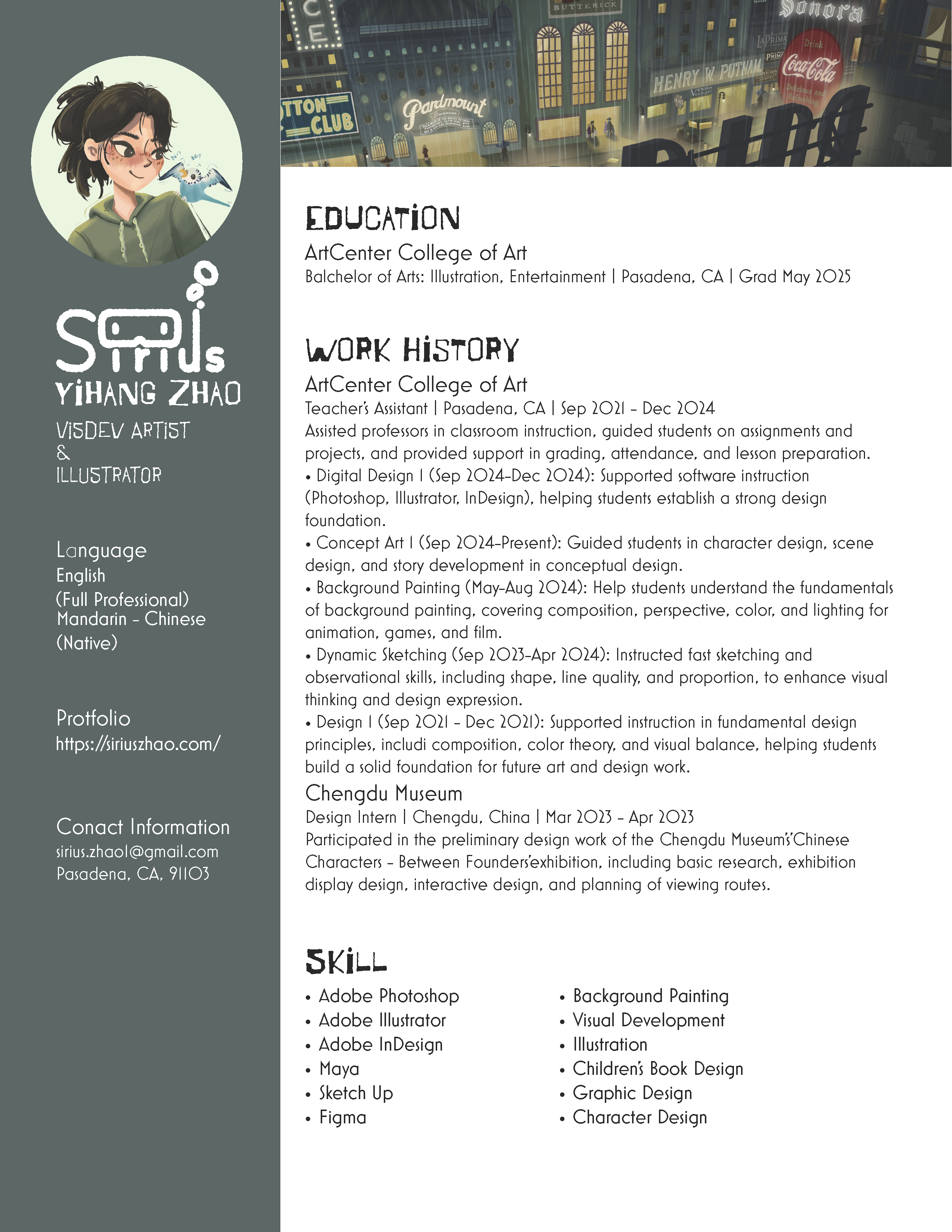 I'm a Visual Development Artist and Illustrator from Chengdu, China. I love traveling, diving, nature, and animals—and drawing has always been my way of connecting with the world. Through art, I explore emotion, atmosphere, and the quiet beauty of everyday moments.