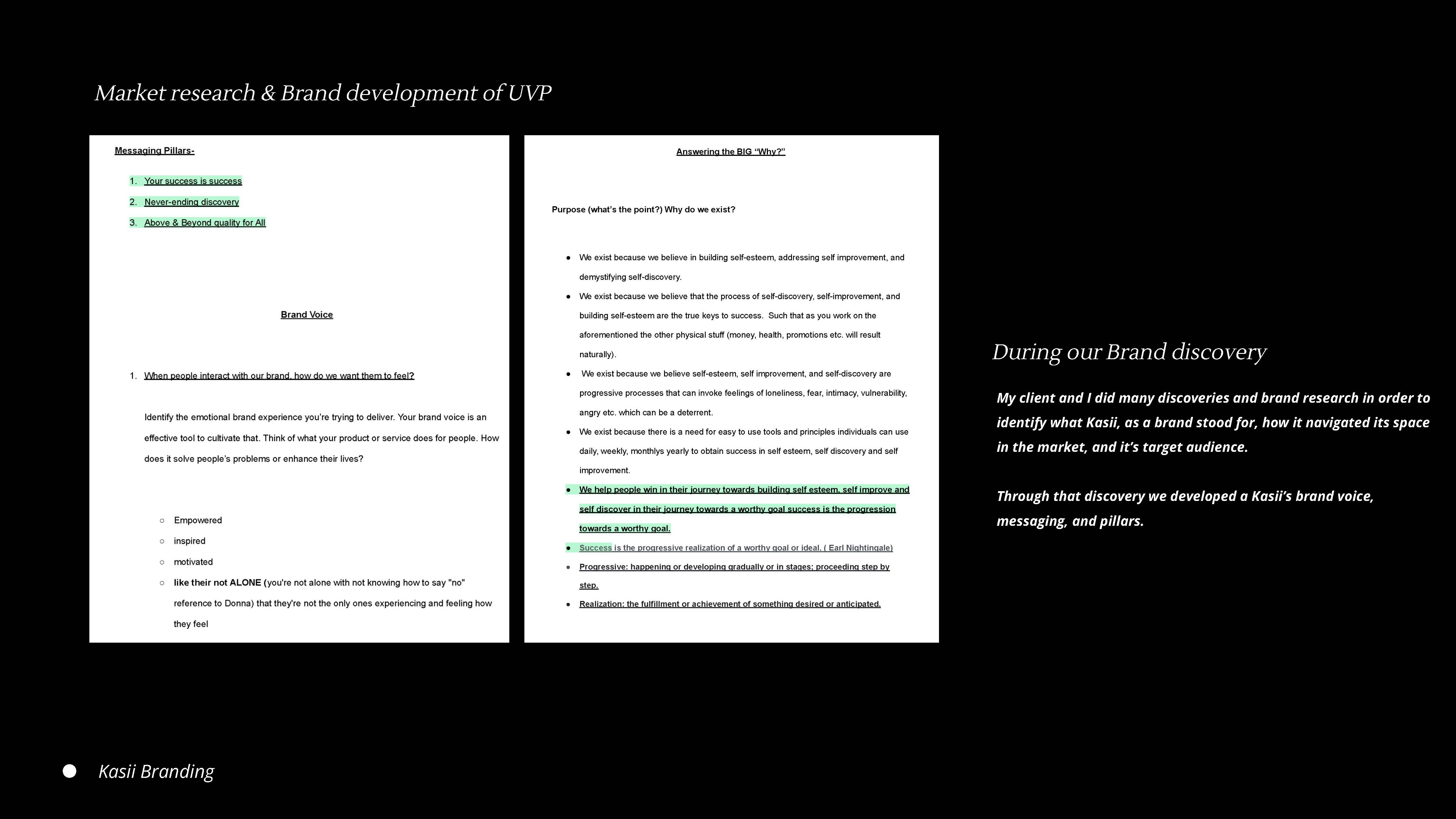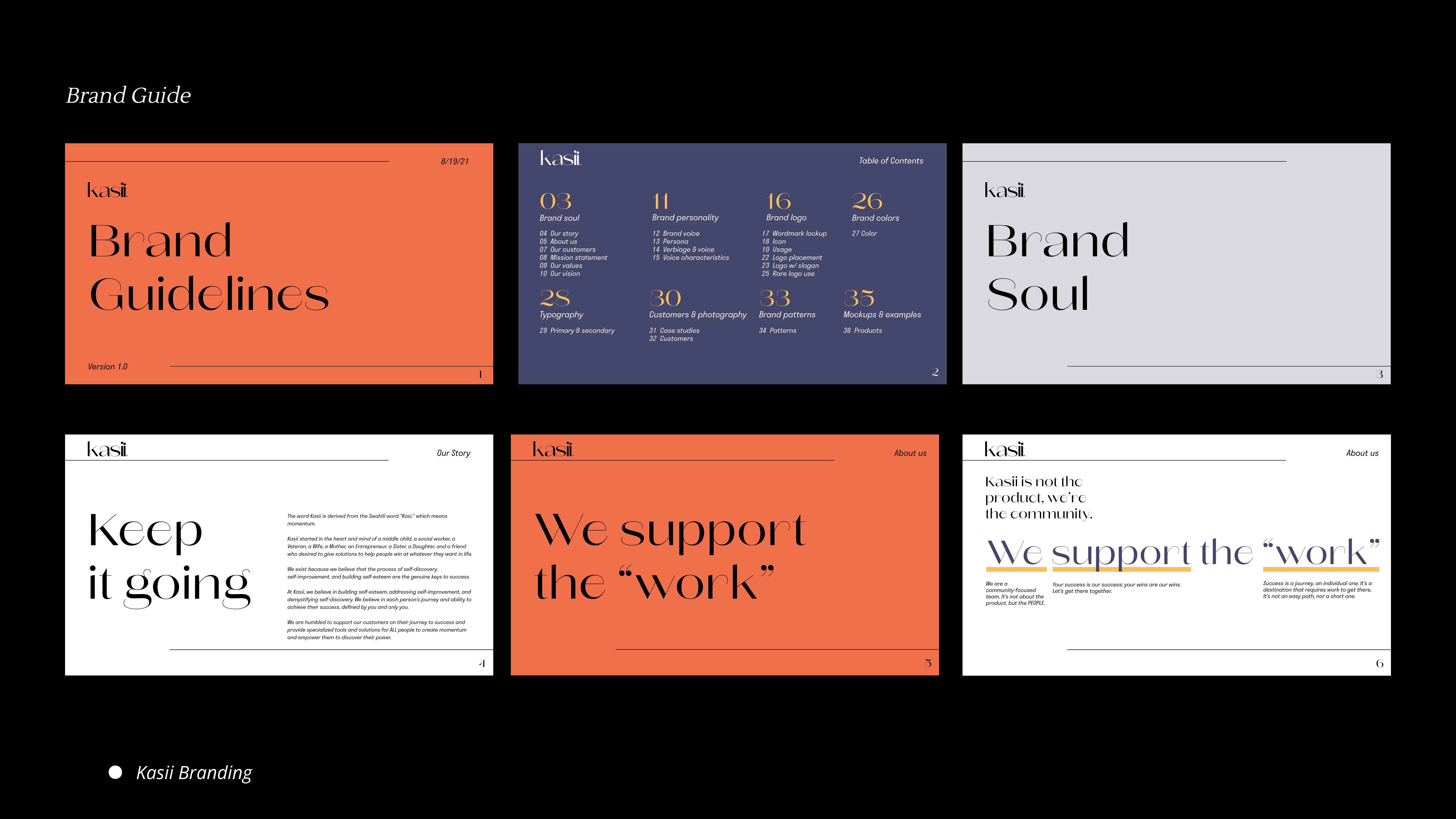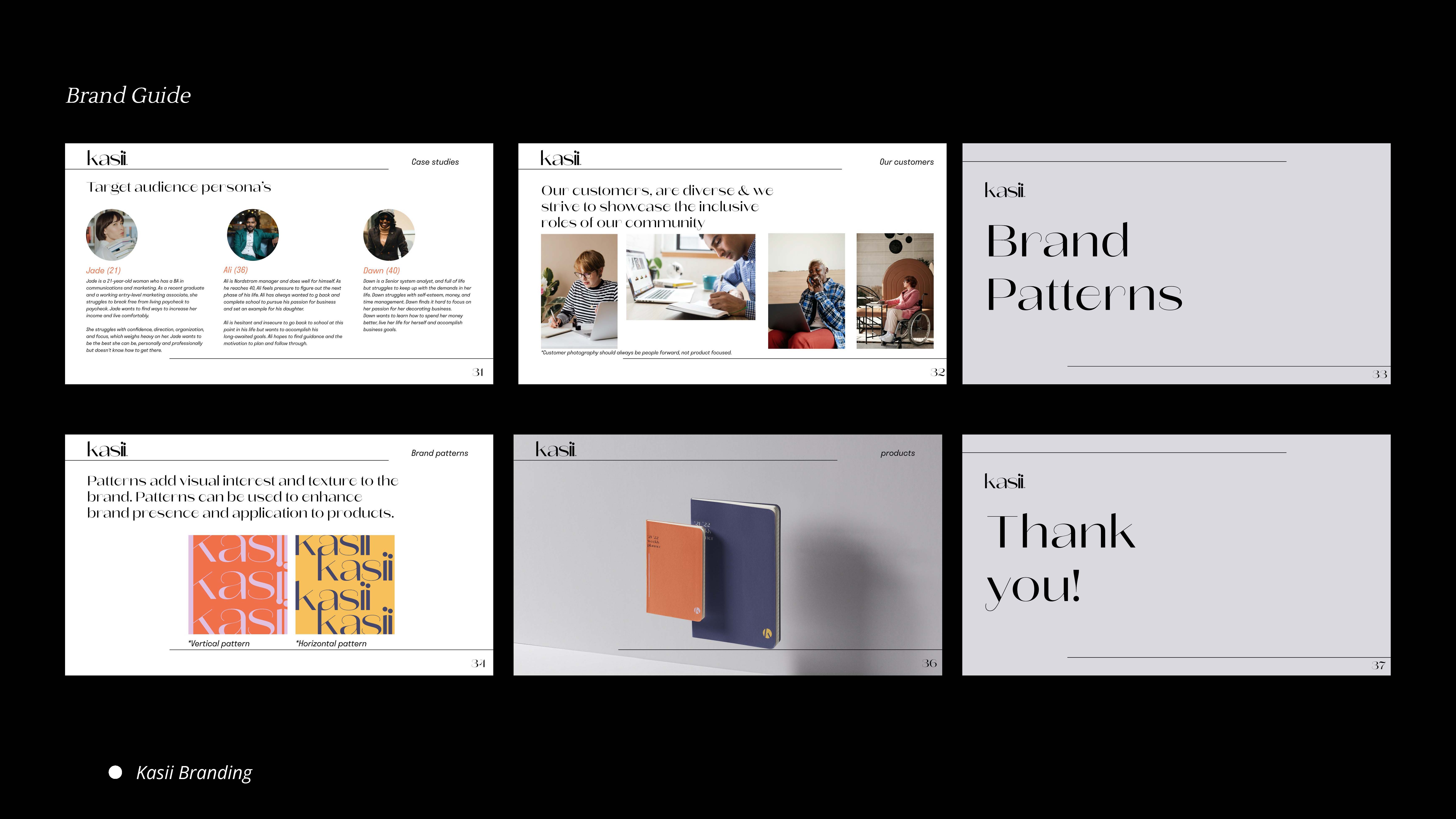 It was a learning experience not only to be the graphic designer but also the creative director and strategist to bring Kasii to life for the client. I learned project management, how to make important documents like contracts, and how to research markets and audiences I understood the importance of knowing how to explain and validate my design decisions that were understandable to my client. Branding design requires in-depth research and a unique perspective to differentiate from other brands.