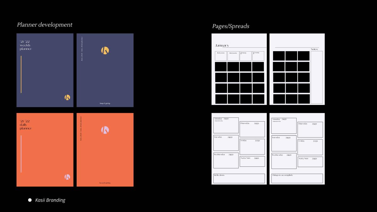 I was hired by a client who wanted to create an entire brand identity for Kasii. My client needed a brand strategy and brand assets for a self-care/stationery brand. After researching the industry, the ideal target audience, and figuring out the brand’s voice & messaging, I designed a brand identity that reflected Kasii’s values and mission.