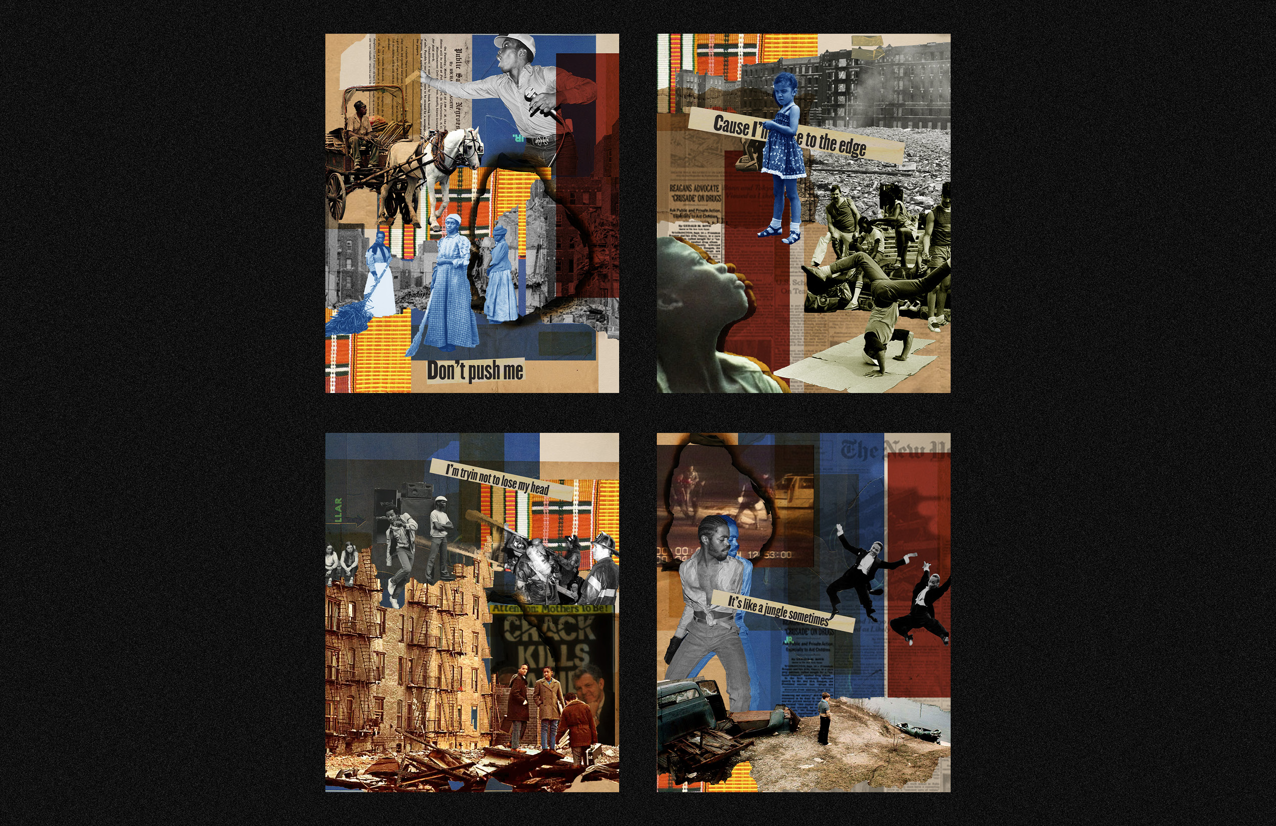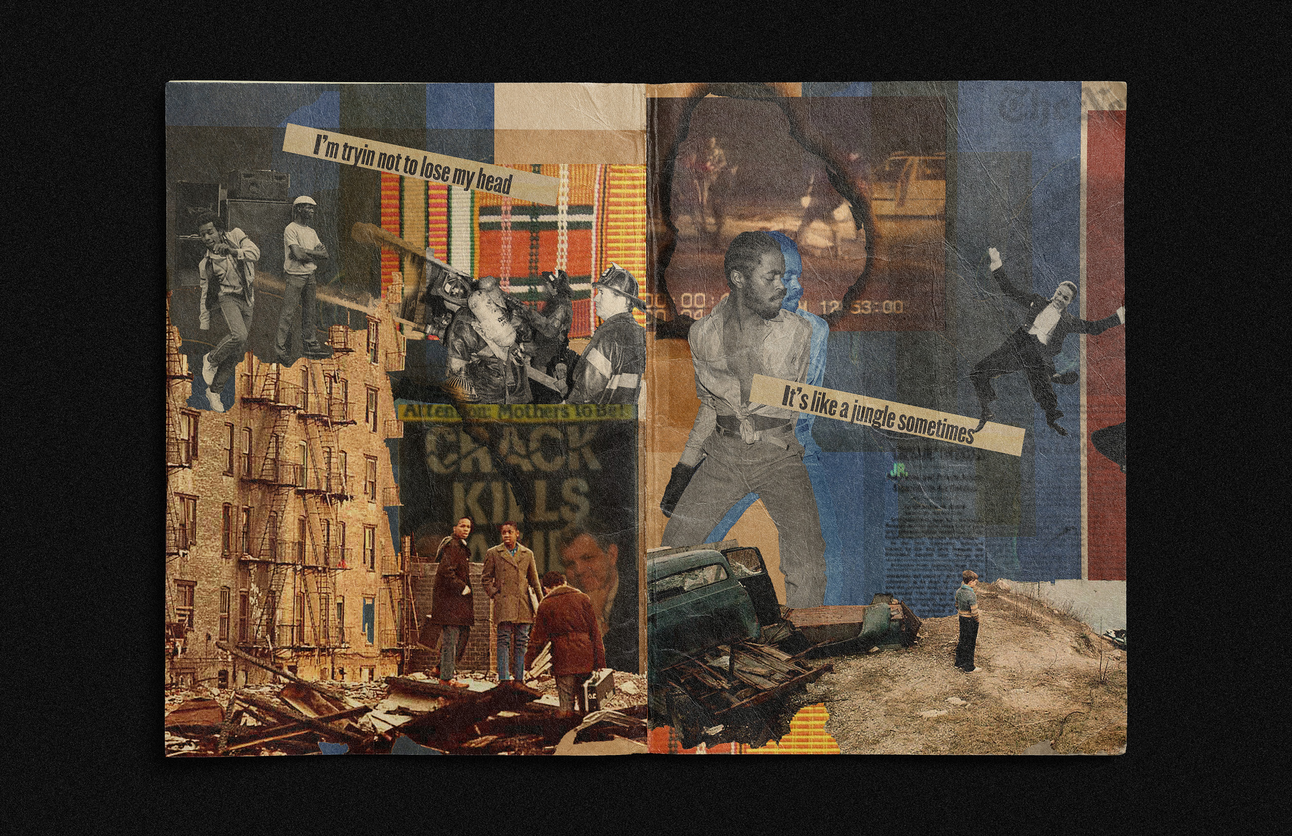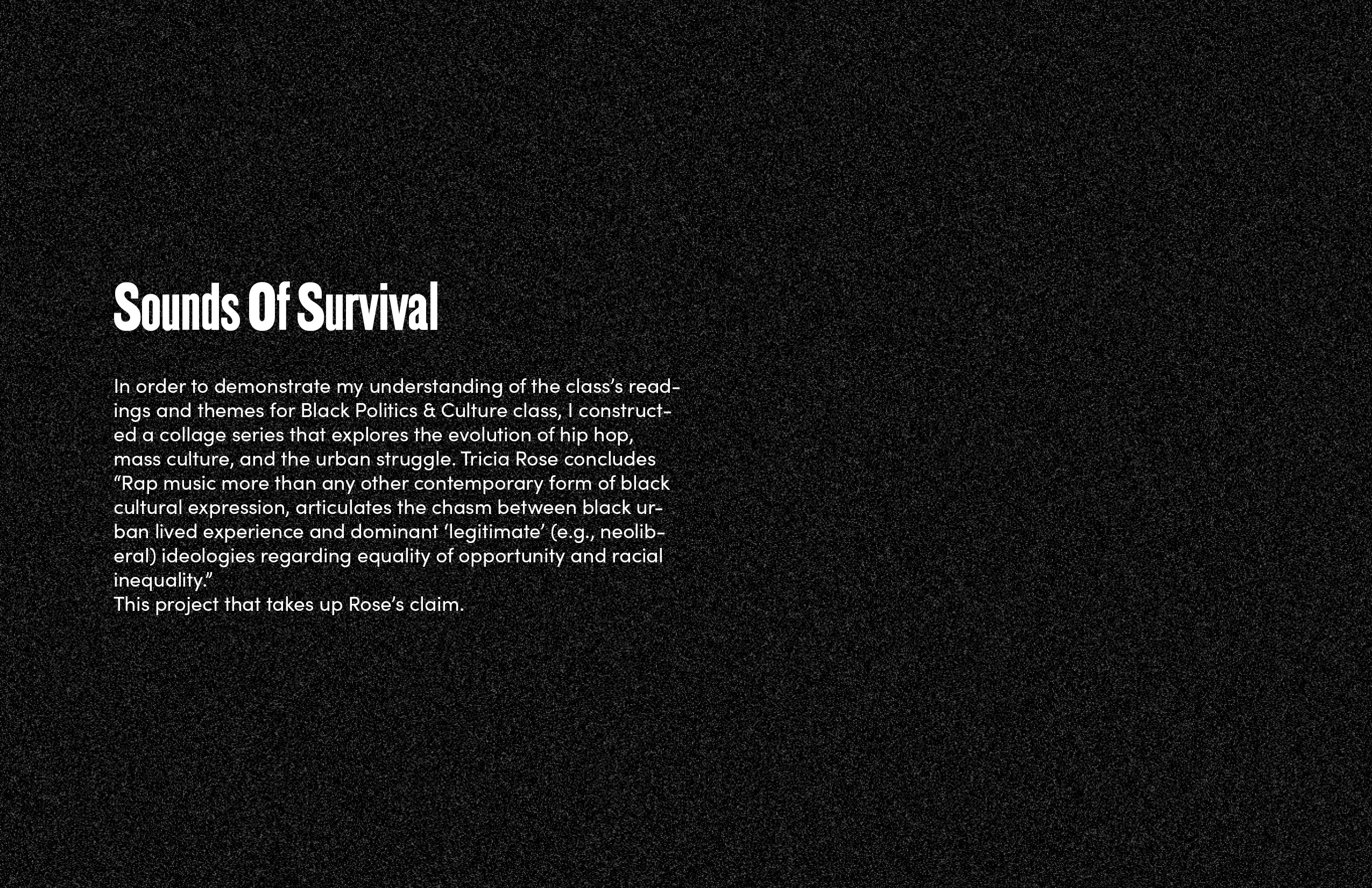 A collage, and visual essay for the Black Politics and Culture class taught by Cedjric Johnson (HHIS-253-01). In order to demonstrate my understanding of the class’s readings and themes for Black Politics & Culture class, I constructed a collage series that explores the evolution of hip hop, mass culture, and the urban struggle.