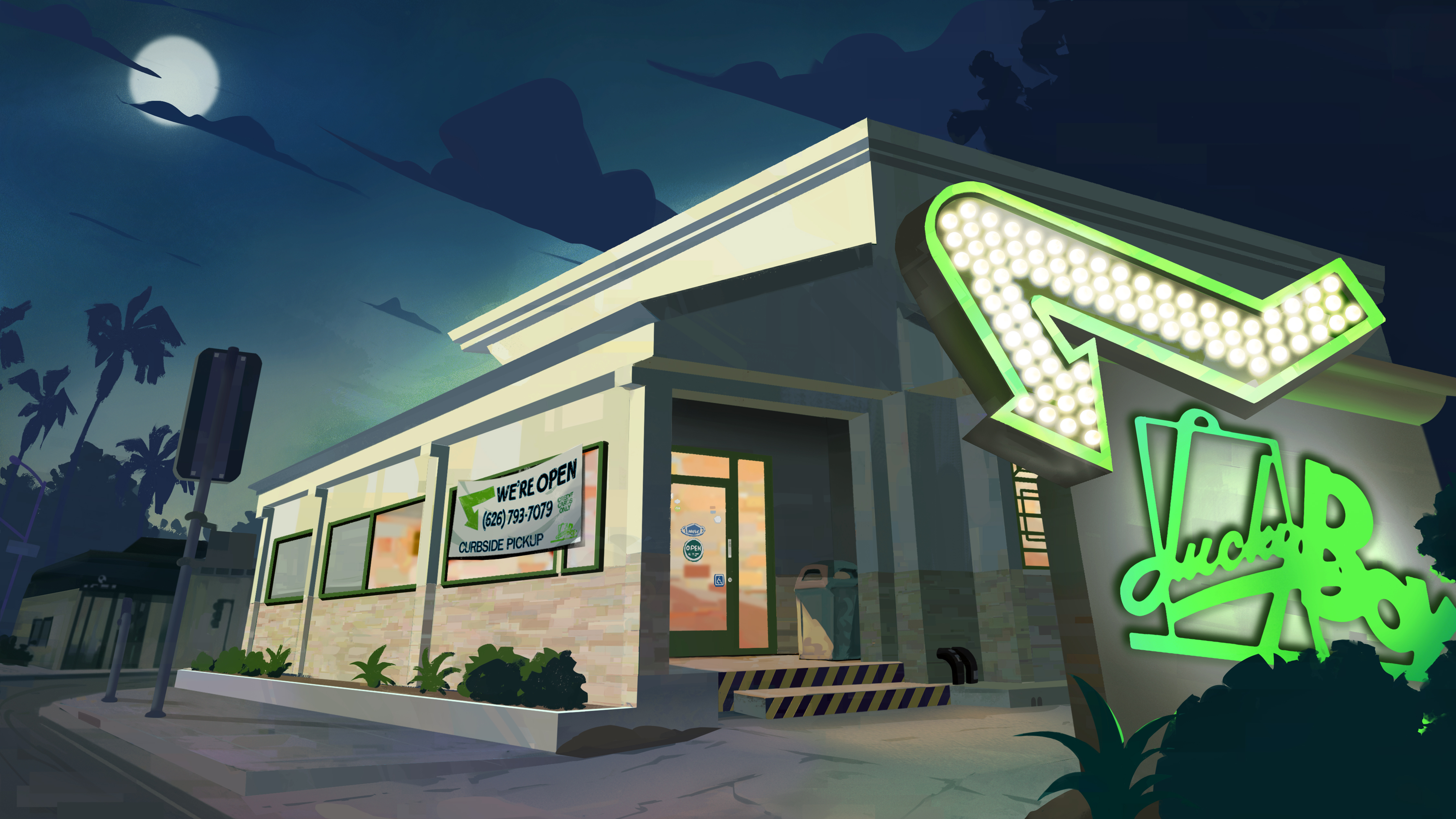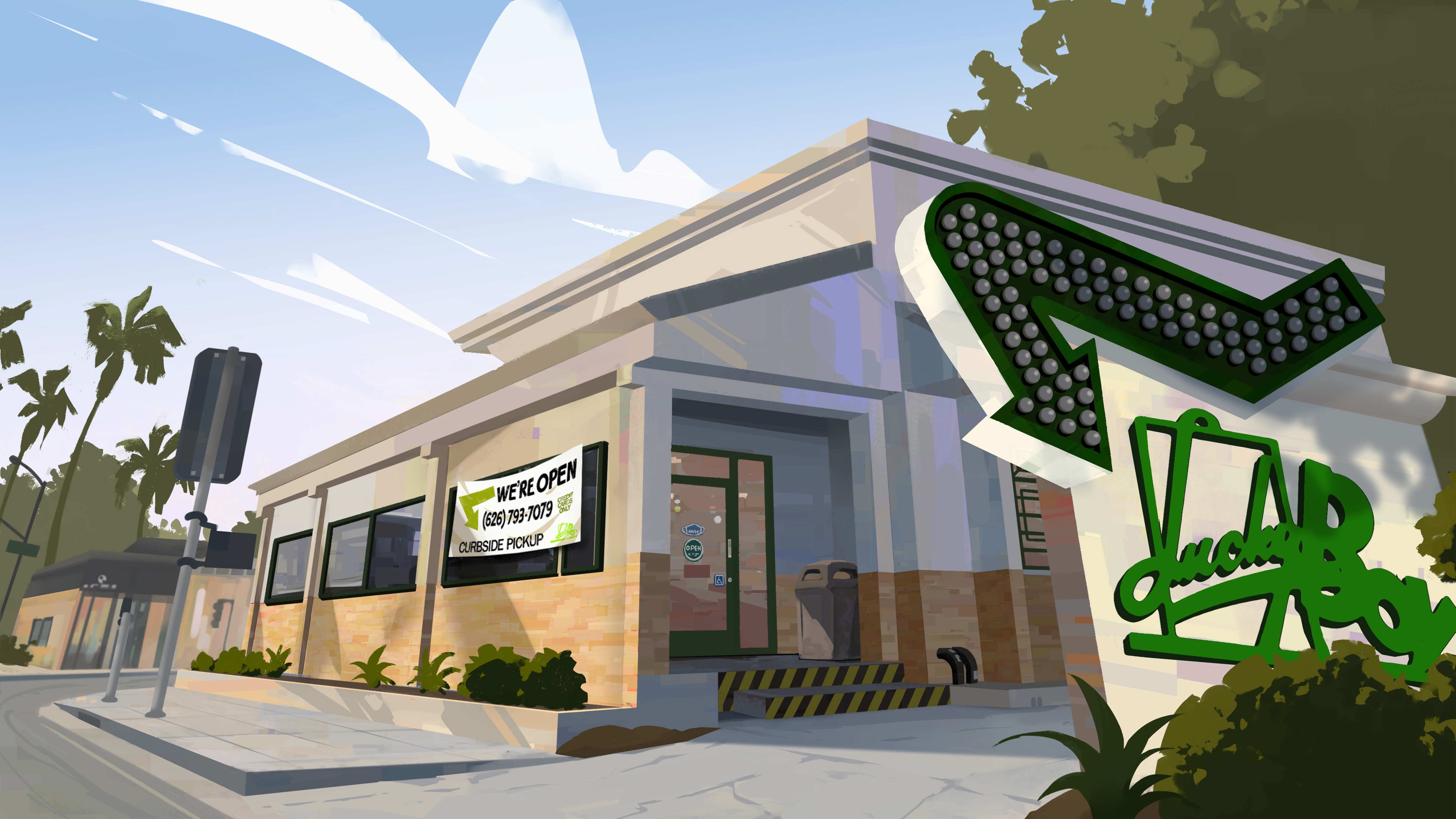 The prompt was to render a scene from daily life of a location with interesting signage. A structured workflow was required in order to depict the same location in two contrasting lighting situations. I chose Lucky Boy, a food restaurant down the road where I lived.