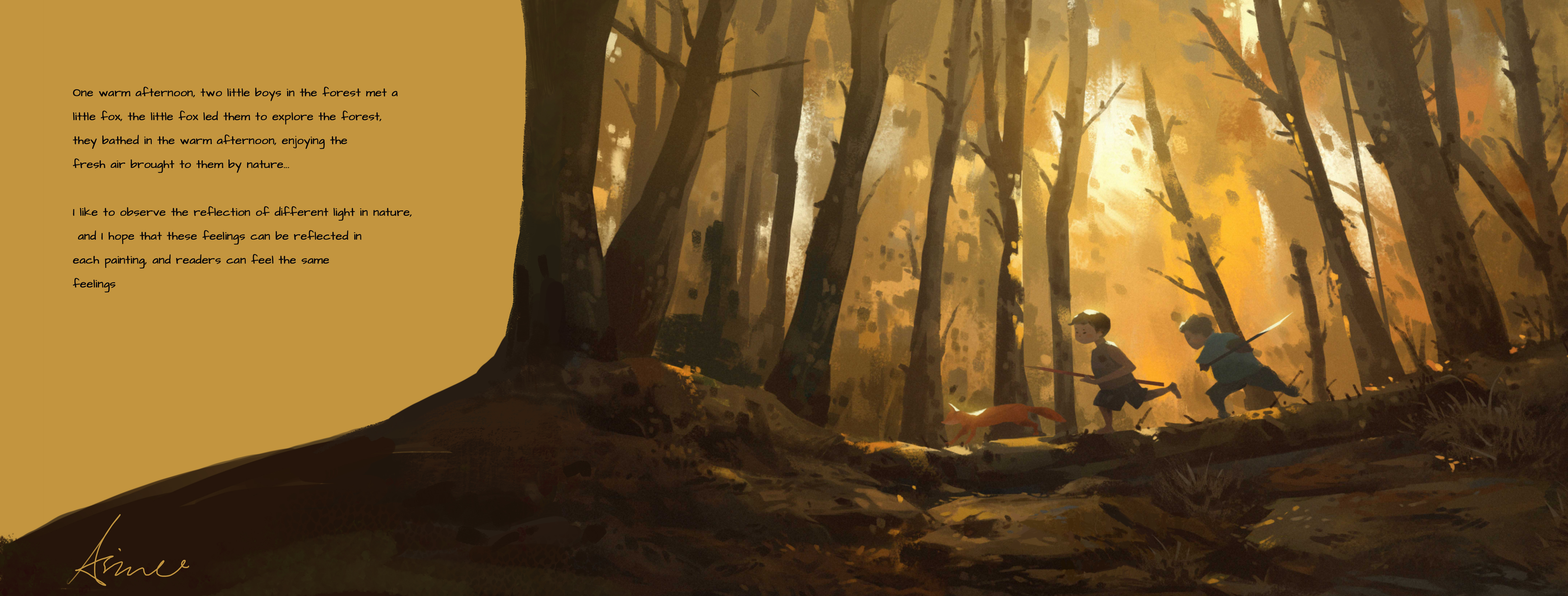 Graduates Select DepartmentBrand Design & StrategyCreative DirectionEntertainment DesignFilmFine ArtFurniture, Lighting and FixturesGraduate ArtGraduate FilmGraduate Graphic DesignGraduate Interaction DesignGraduate Spatial Experience DesignGraphic DesignIllustrationIndustrial DesignInteraction DesignMedia Design PracticesPhotography and ImagingProduct DesignSpatial Experience DesignTransportation DesignTransportation Systems and Design Back to Projects Aimee Xiao BS in Entertainment Design - Concept — Entertainment Design Echoes in the Forest Through this project, I want to explore the fascinating and mysterious world of the forest with a series of illustrations. Image Image Image Image Image Image Image Image Image
