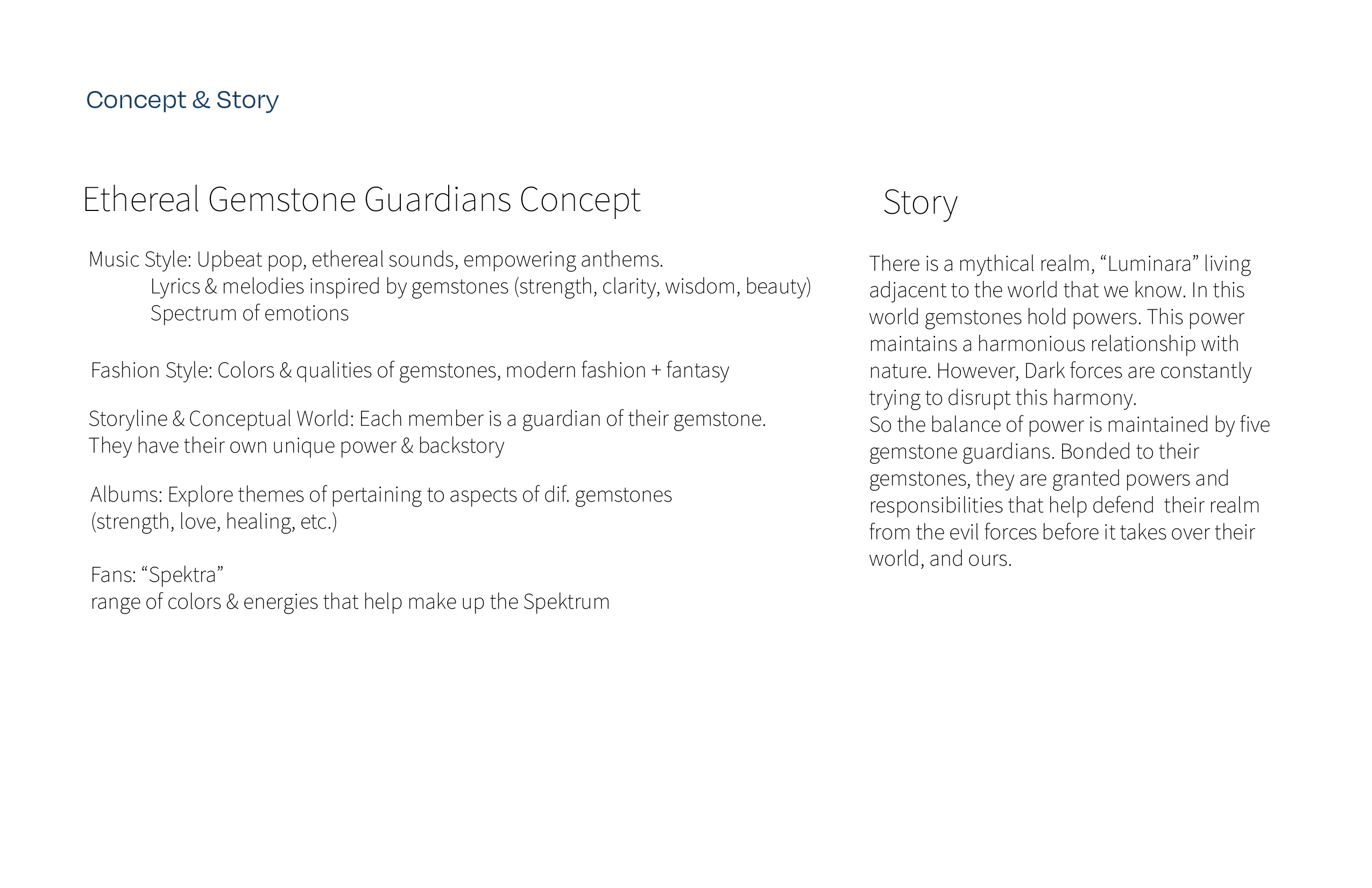 Working under the guidance of my Branding Lab professor, I am working on a personal project developing a female k-pop idol group, with a unique storyline and identity. As it is in progress, I still plan on working on a packaging design for their album, and a promotional campaign for the album release.