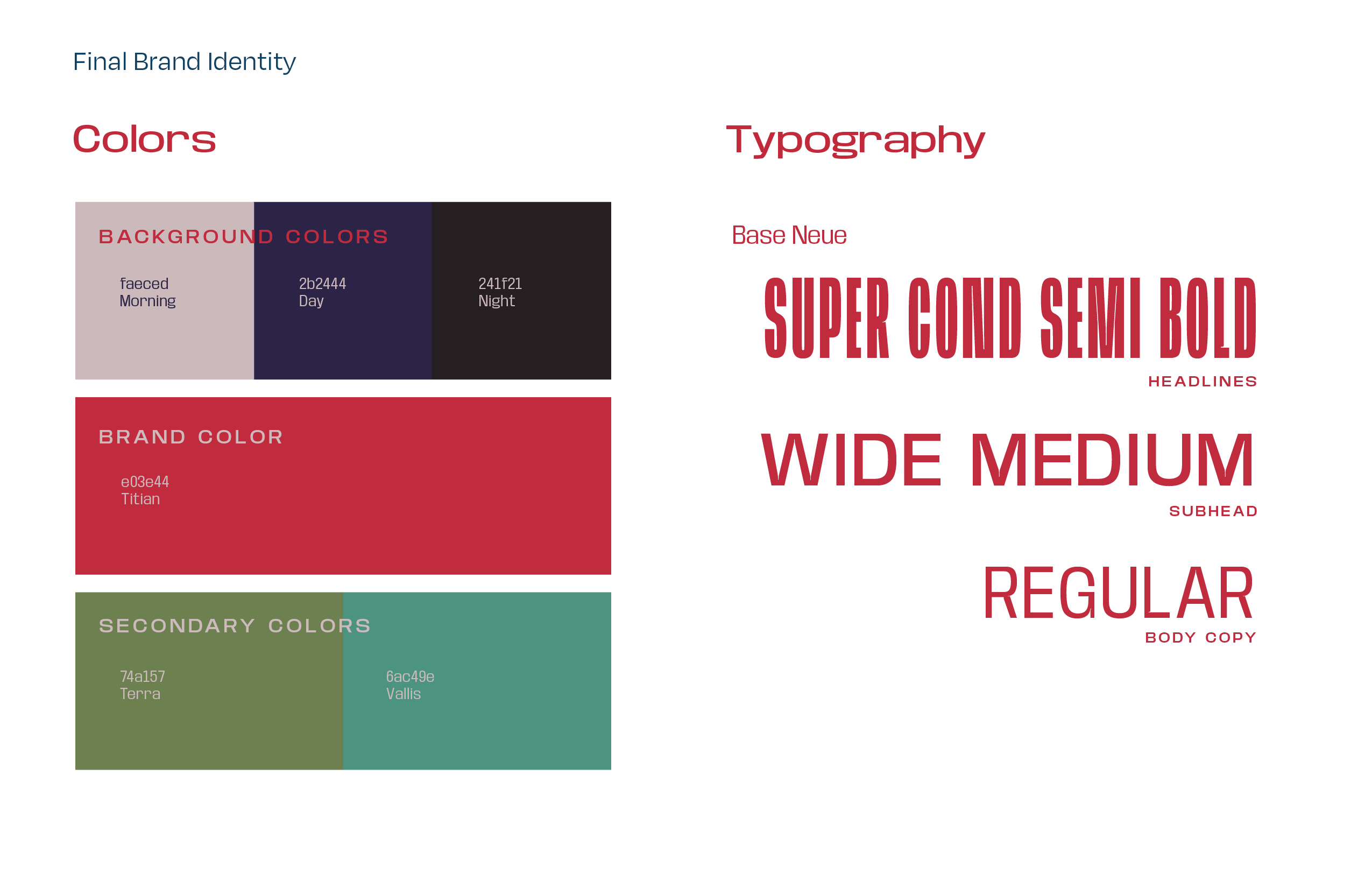 For the Fall 2023 term, I worked closely with a group of 2 other MDes students to execute a complete brand strategy development, and brand identity system for a fictional company. This stage we then used all the information from the previous stages to make a brand visual identity.