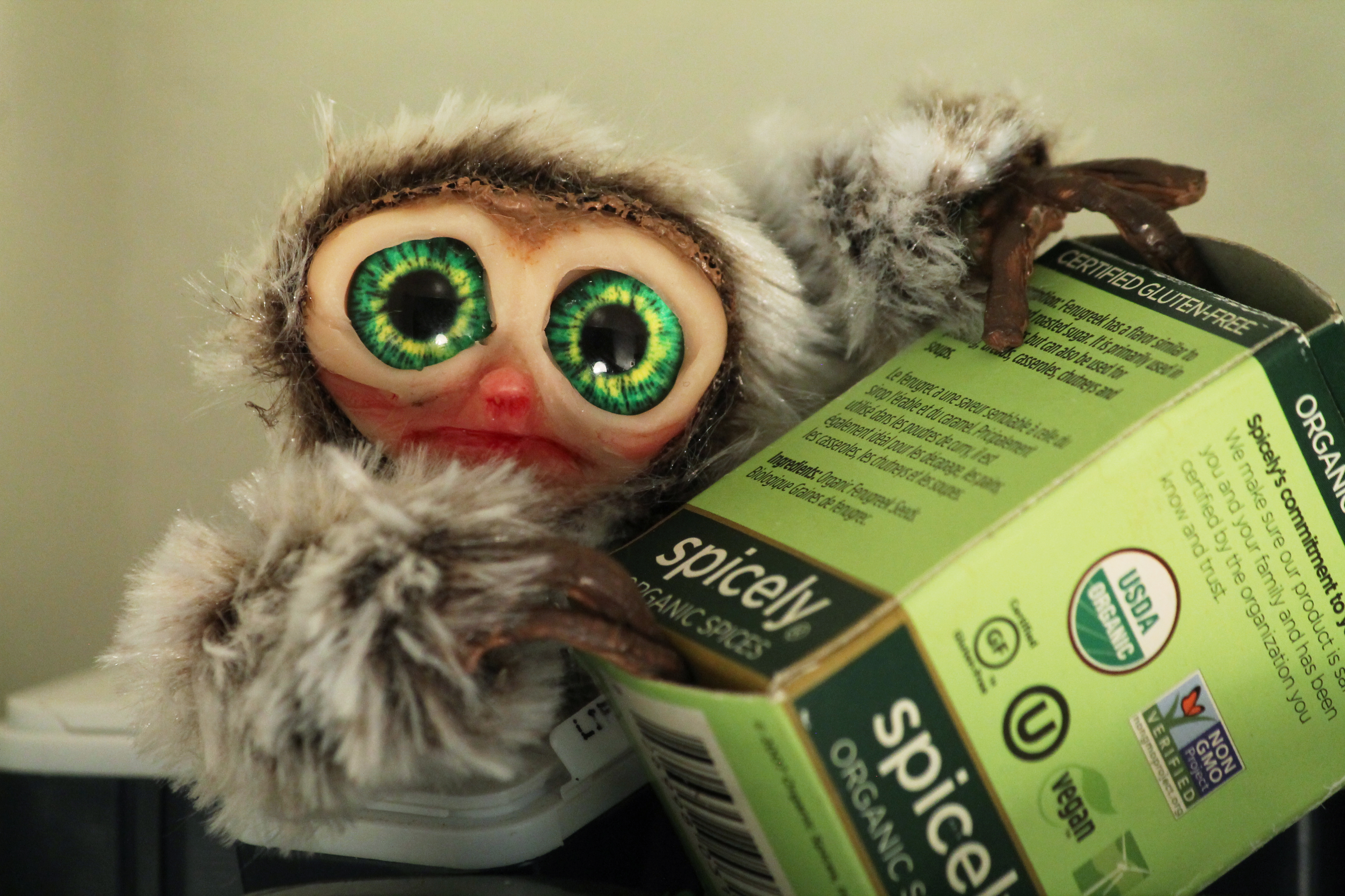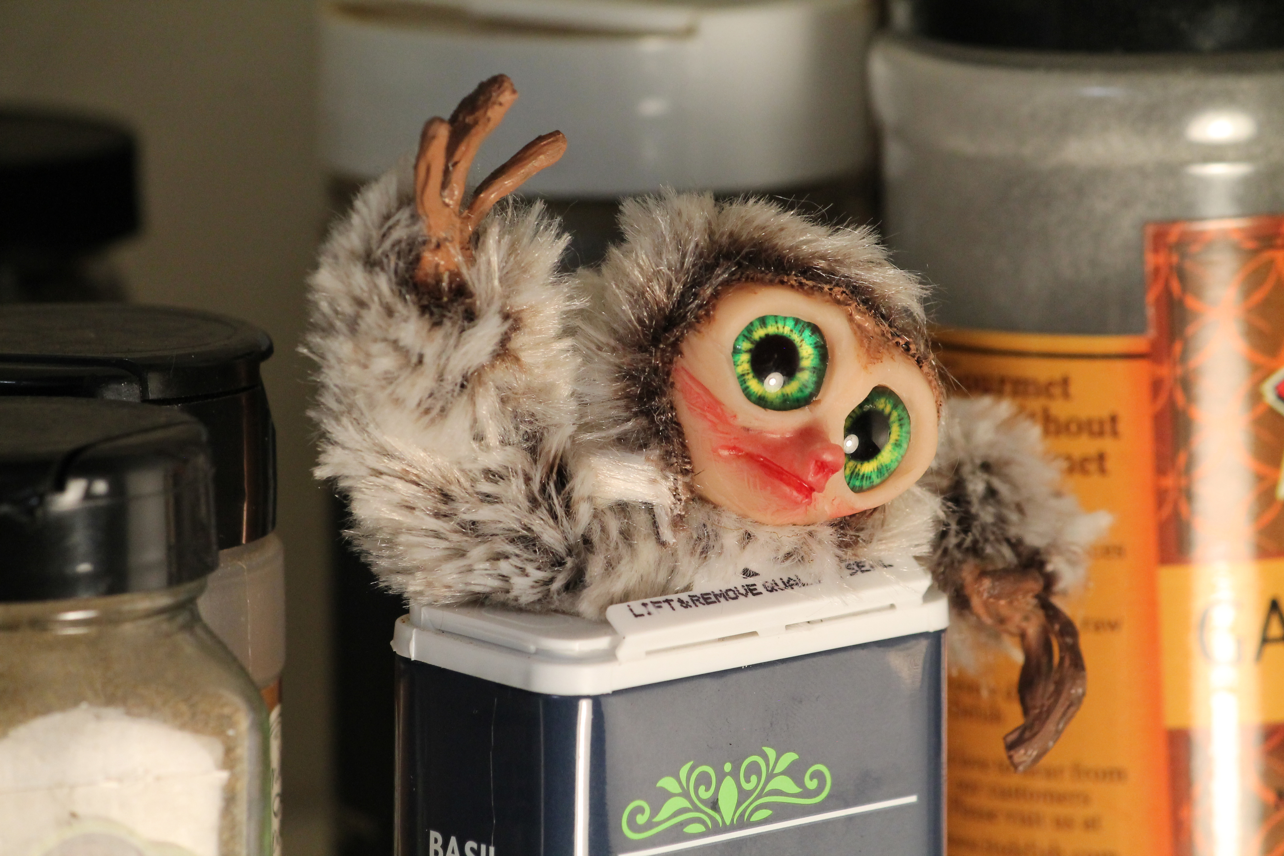 Small enough to hide in a spice container, these are the smallest creatures I’ve made (yet). Their fingers bend and they have a full range of motion in their shoulders and elbows.