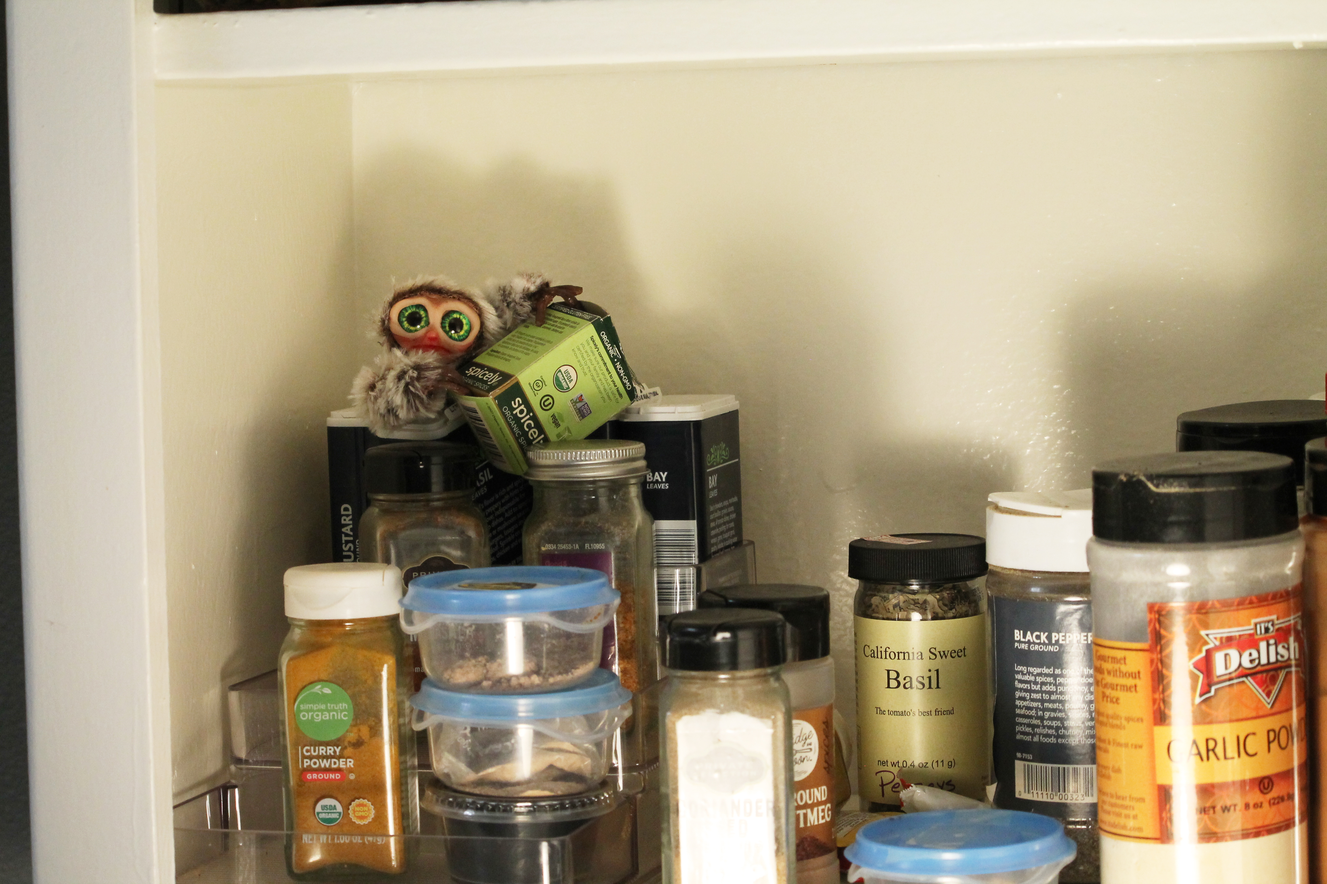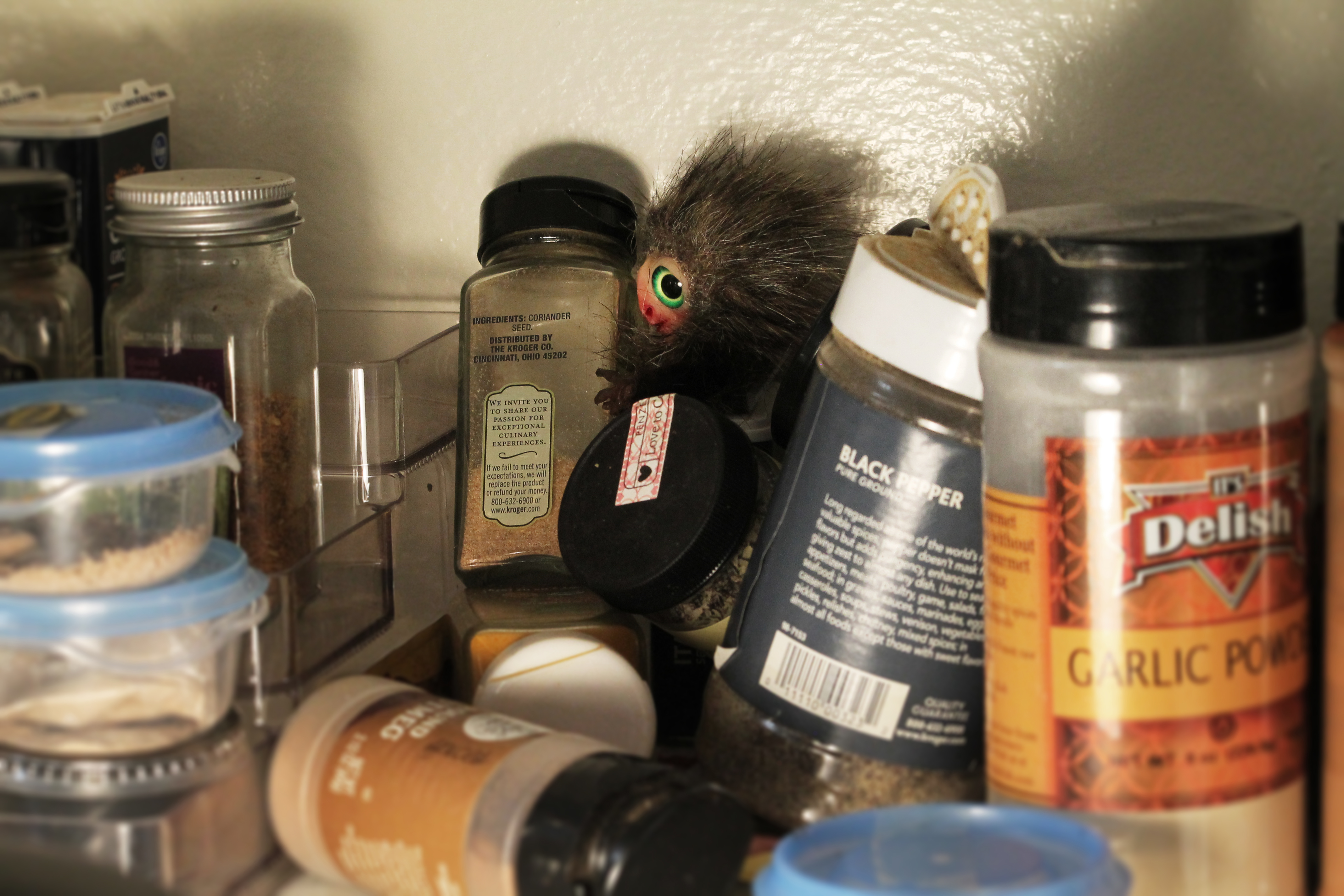 When a spice jar goes untouched for too long, a spice muncher may take up residence inside. Before cleaning out your kitchen cabinets, check your containers for new residents! Use the “shake test”- if you hold the container up to your ear and shake it, do you hear one large object rattling around?