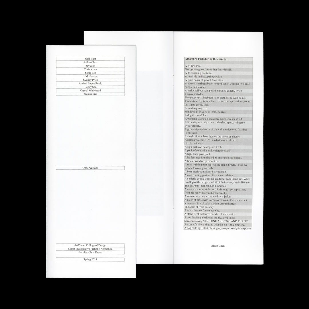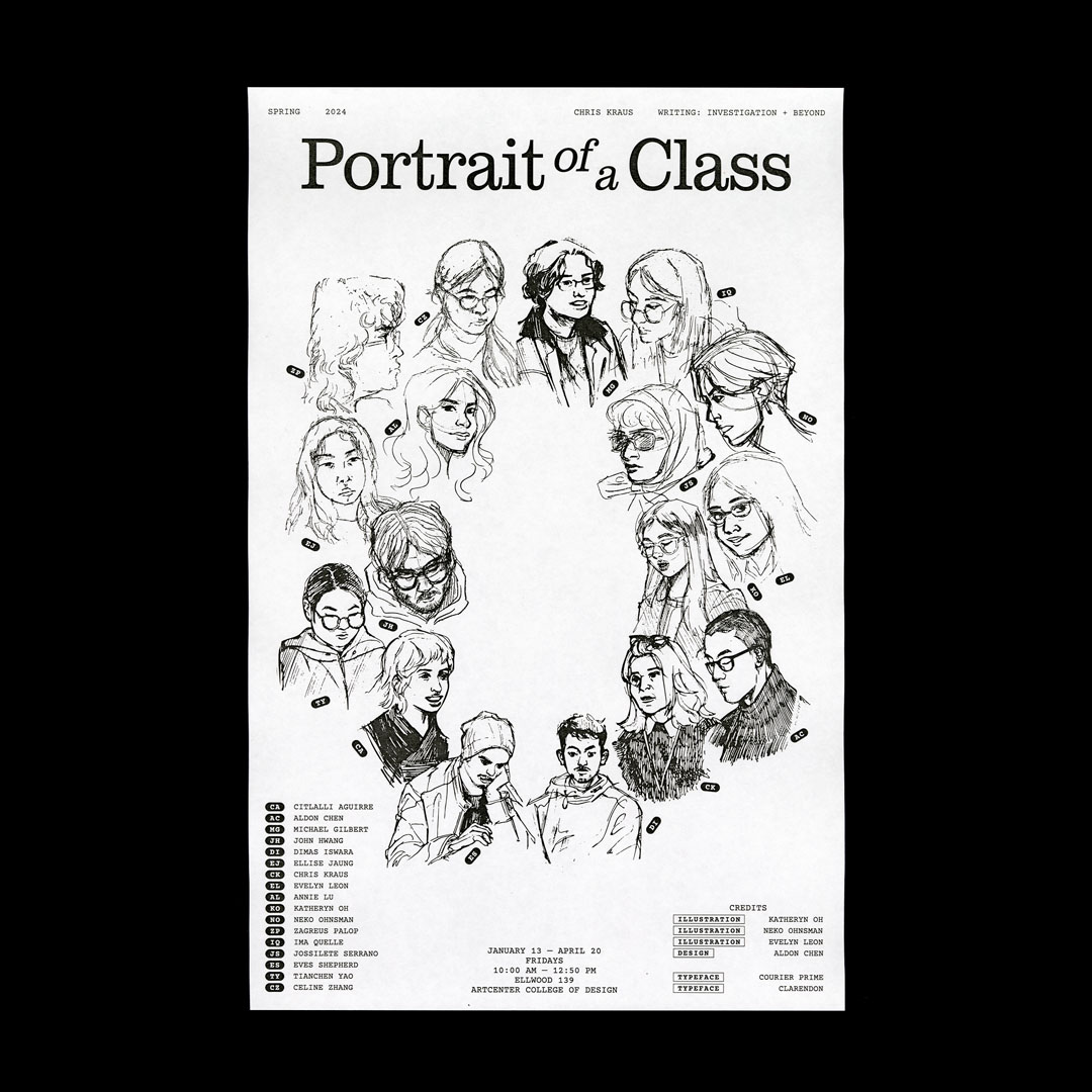 A series of printed matter designed while as a student of and a Teaching Assistant to Chris Kraus, author of "I Love Dick." Designs were inspired by the class' unique pedagogy and the journalistic approach to personal writing that was taught by Chris.