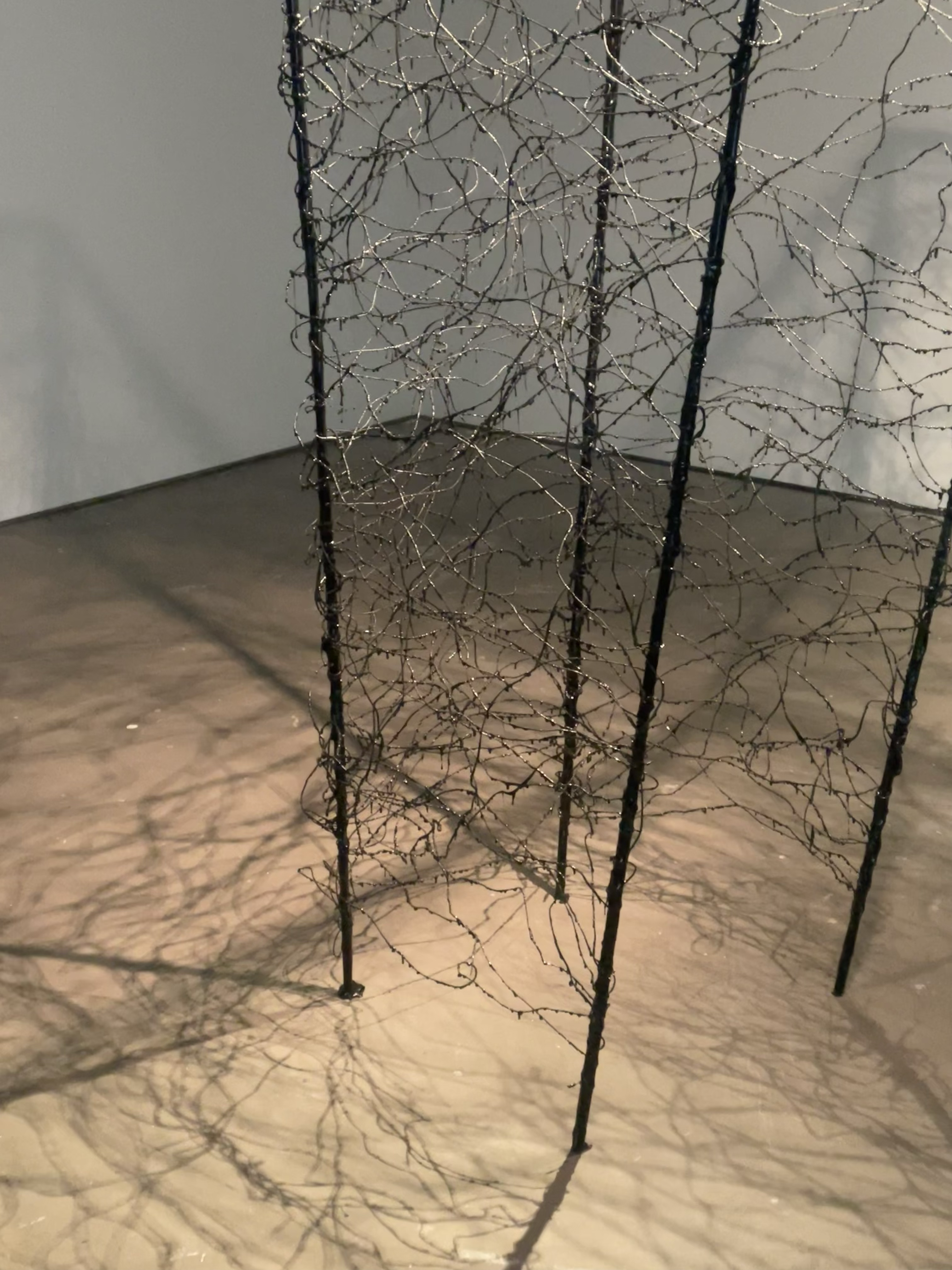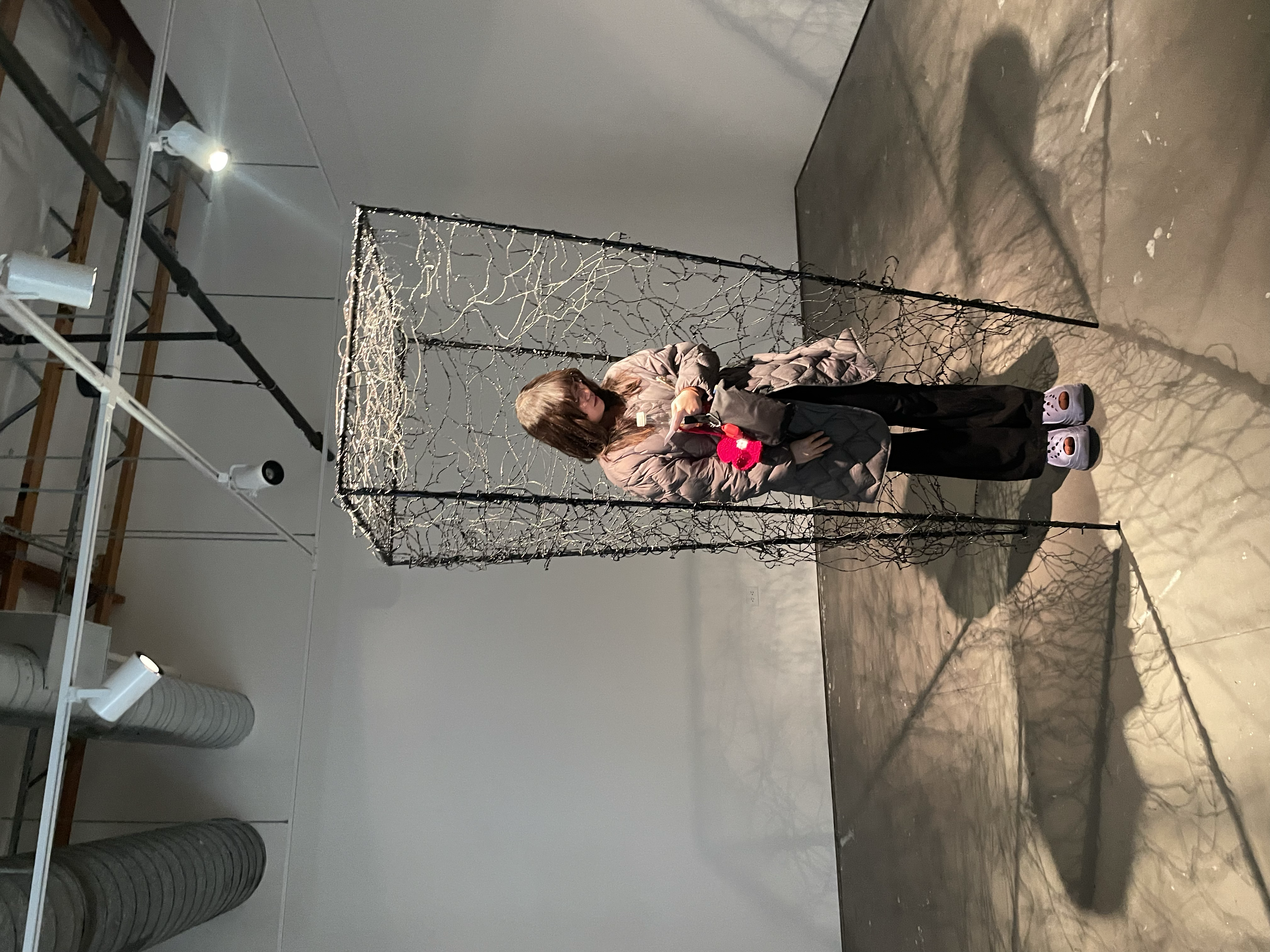 Being one within space, 2023 stands as an installation that extends the artist's ongoing exploration of the interconnectedness between body, sculpture, and architecture. Functioning both as a sculpture and an architectural structure, it invites the viewer to habit the piece with their body. This creation integrates the artist's previous exploration into the act of pouring using resins, as well as the art of creating drawings in space through the play of light and shadow.