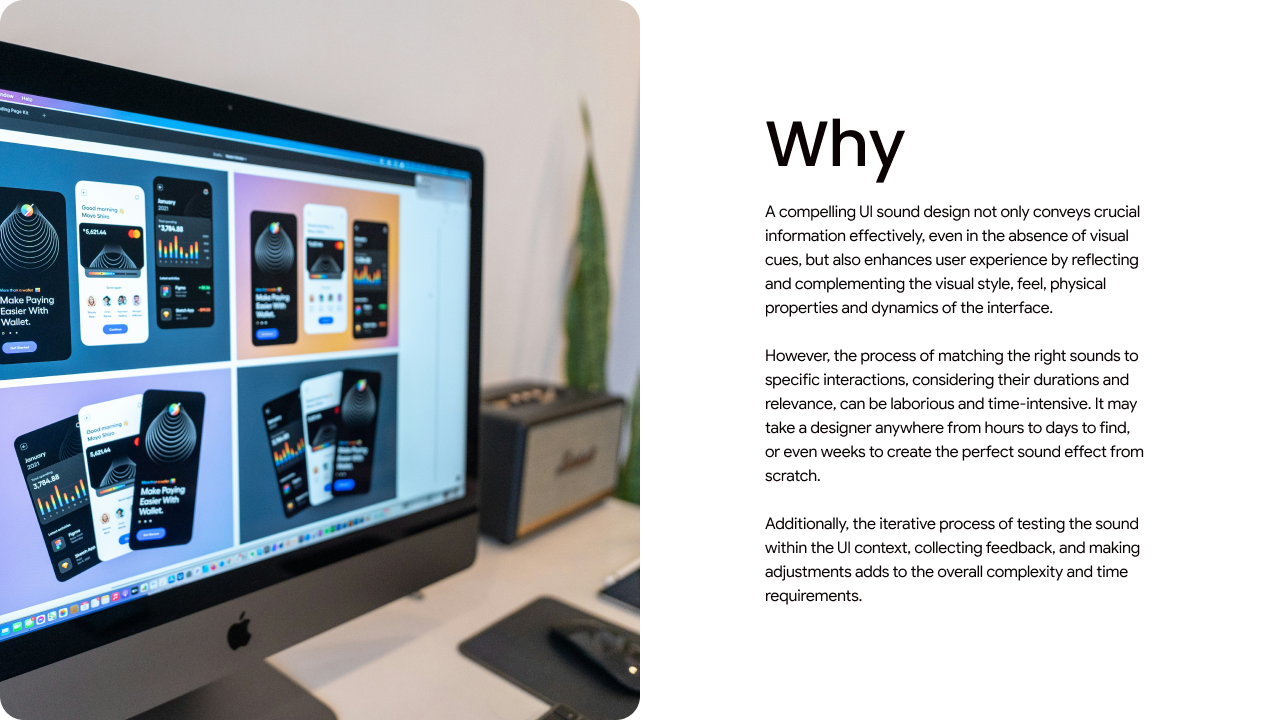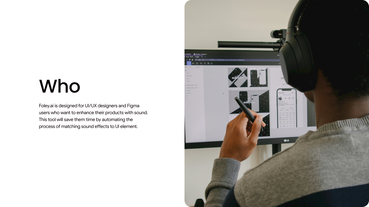 Foley.ai is an AI-powered Figma plugin that assist UI/UX designers by auto-generating sound effects matched with UI elements. This tool enhances creativity and efficiency by allowing sound generation through text, voice input, or reference files. By streamlining the design workflow and reducing time consumption, Foley.ai enables designers to concentrate on creativity and user experience enhancement. In collaboration with: Amy Kim Instructors: Jenny Rodenhouse, Todd Masilko