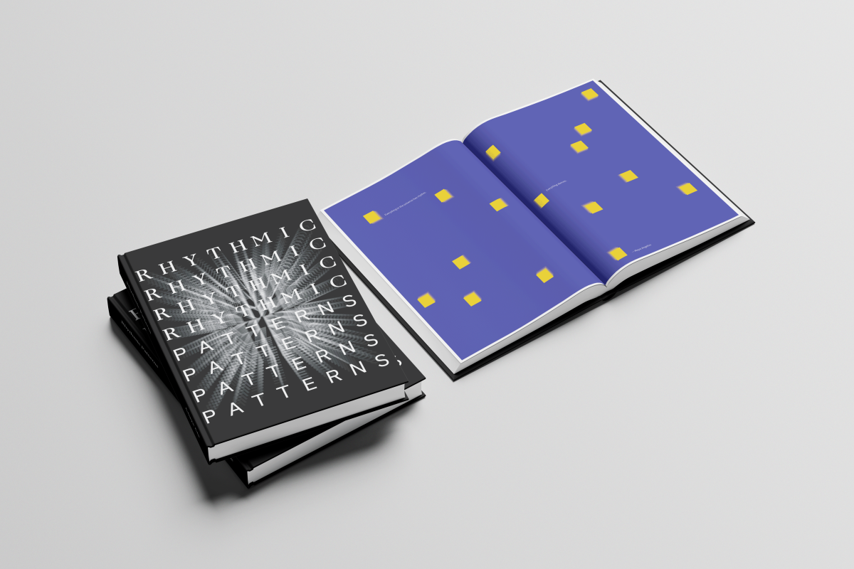 Rhythmic Patterns is a graphic design thesis that argues rhythm functions as a practical working method for designers navigating time-based and interactive digital practice. The project spans two interactive installations — Antinode, a sound-reactive cube, and Resonance, a fabric cylinder — alongside research into synesthesia, architectural acoustics, percussion history, and music visualization. The work draws on sources ranging from Scriabin's color-key associations to cymatics to cross-cultural drumming traditions, proposing rhythm not as metaphor but as a structuring logic for contemporary design.