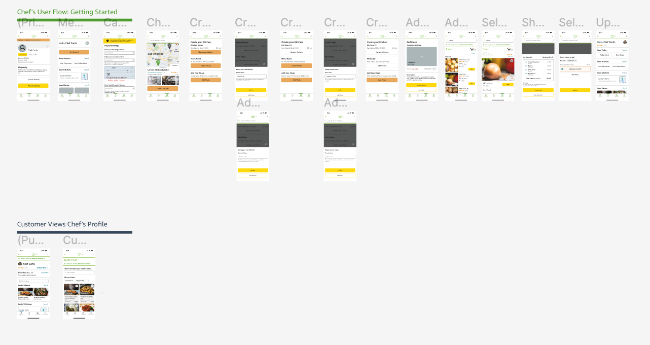 I have created a Hi-fidelity based on the chosen Chef User Flow. Chef's will be able to create kitchens, menus, and have meals delivered to customers who subscribe.