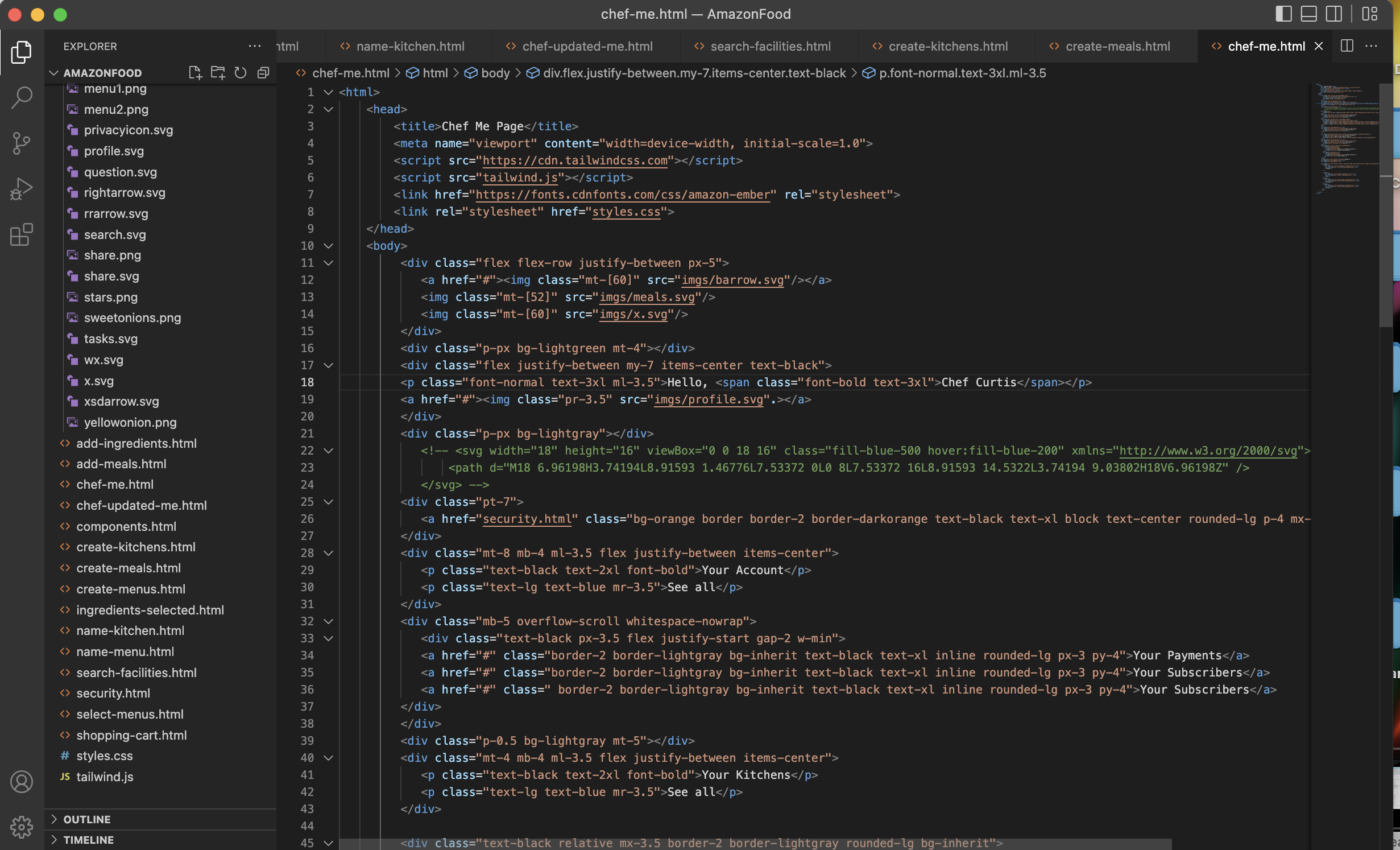 This is what we need to do for Finals in Interactive Prototyping. These are all the pages I have coded in Html/Tailwindcss. Pages are shown in the video "Chef User Flow"