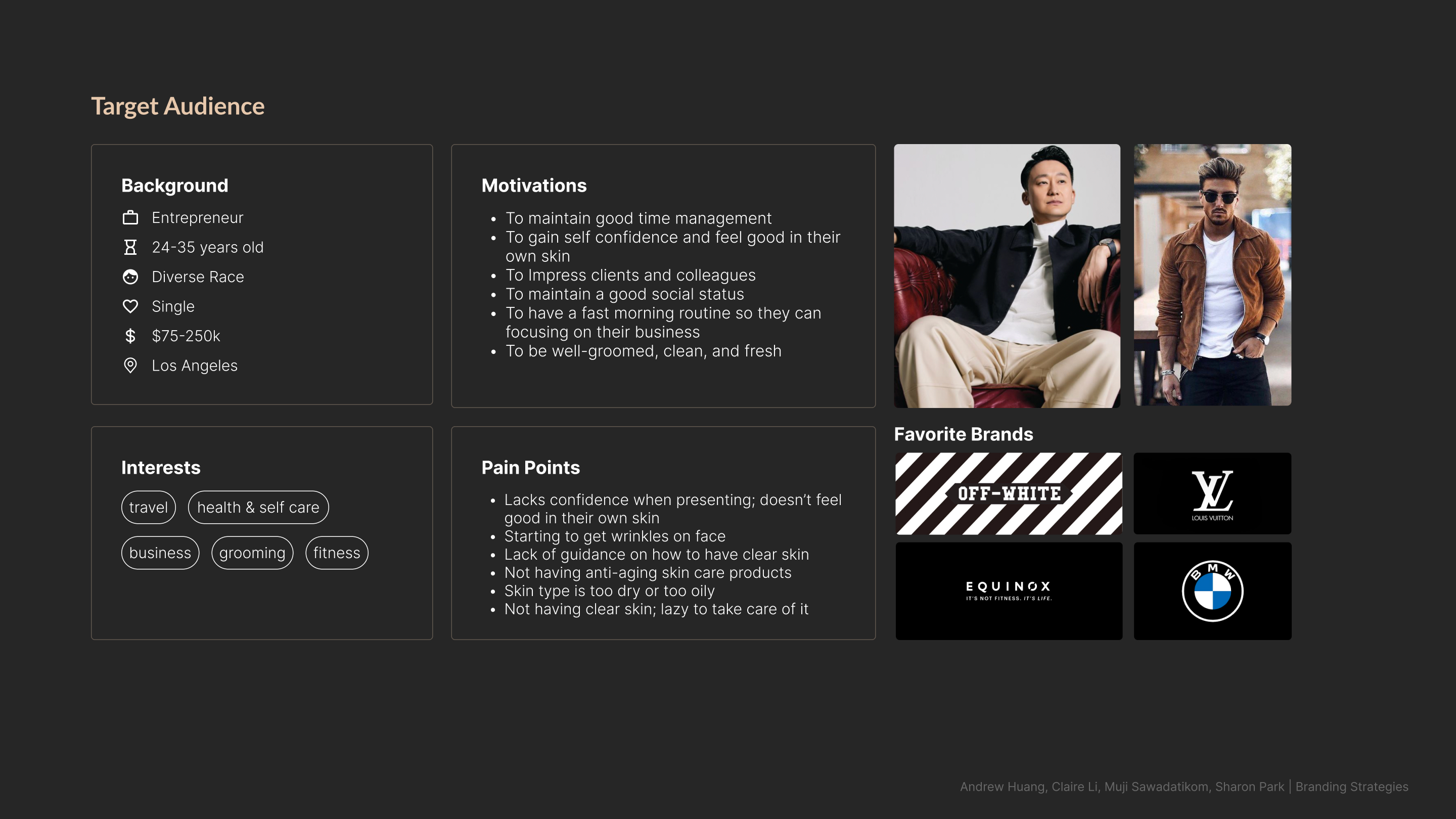 Worked as a team to create a new pitch deck for the brand Allure, delivery service for a diverse set of young male entrepreneurs.