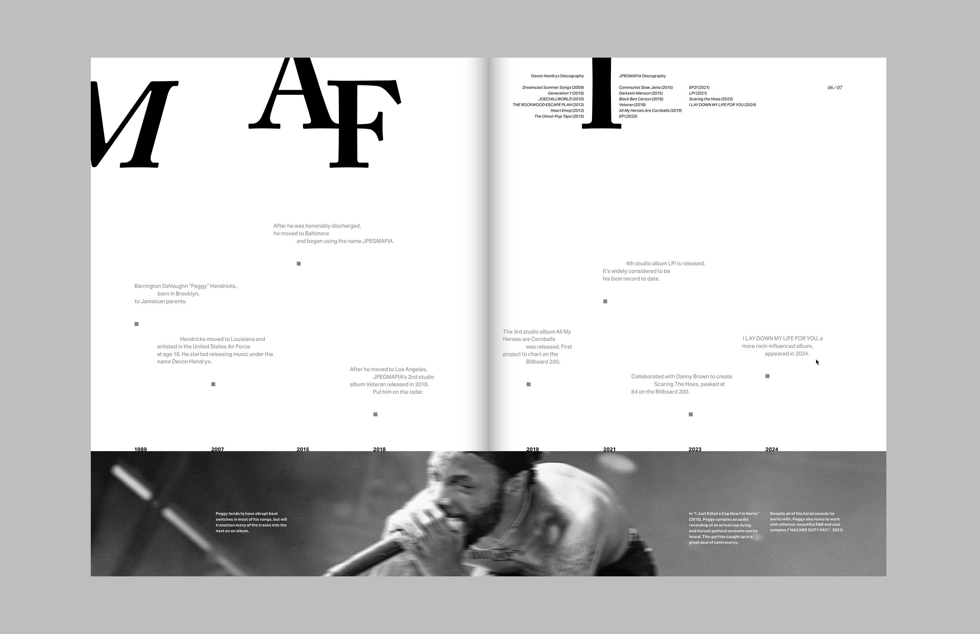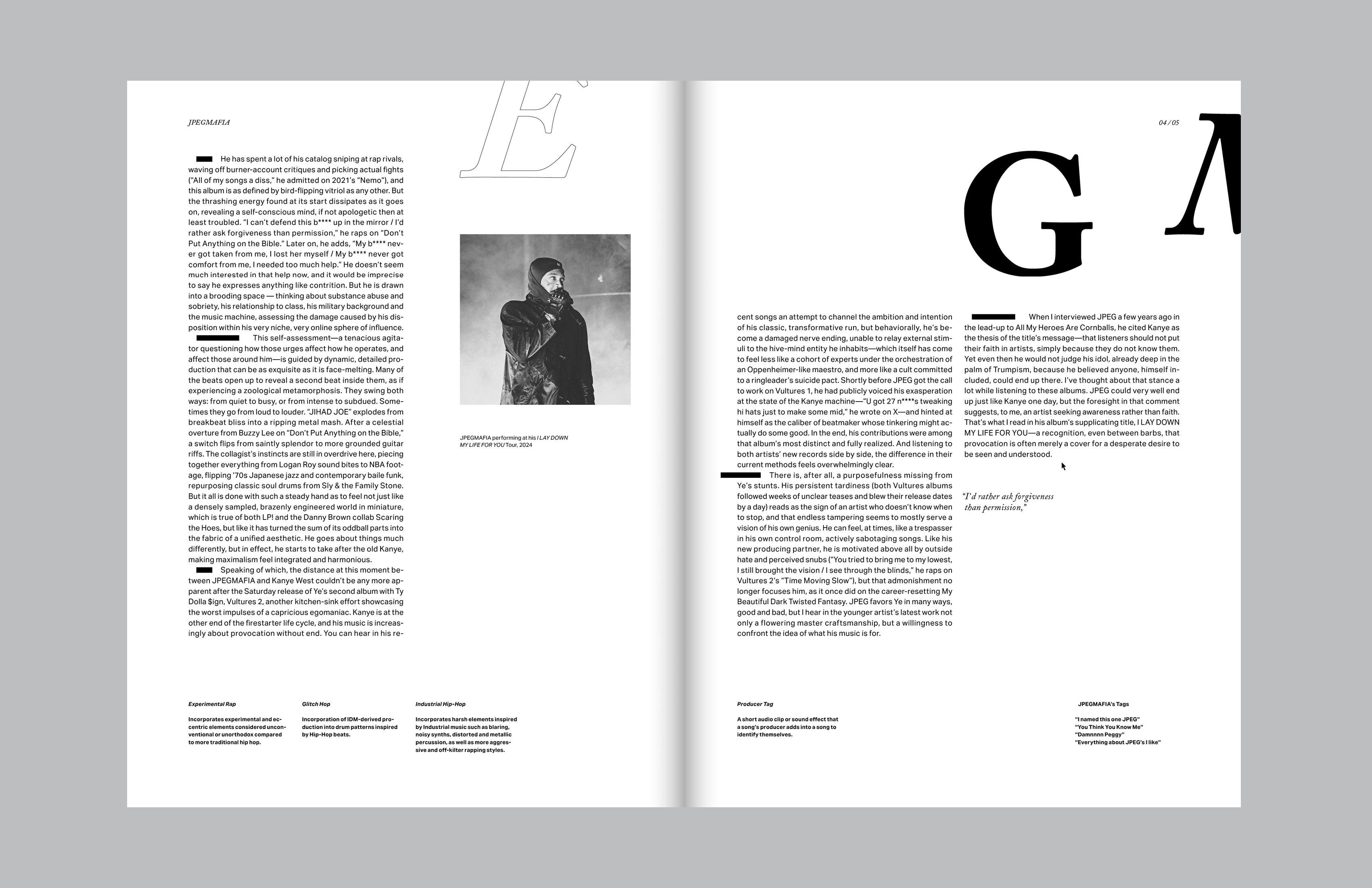 8-page book design for experimental hip-hop pioneer, JPEGMAFIA.