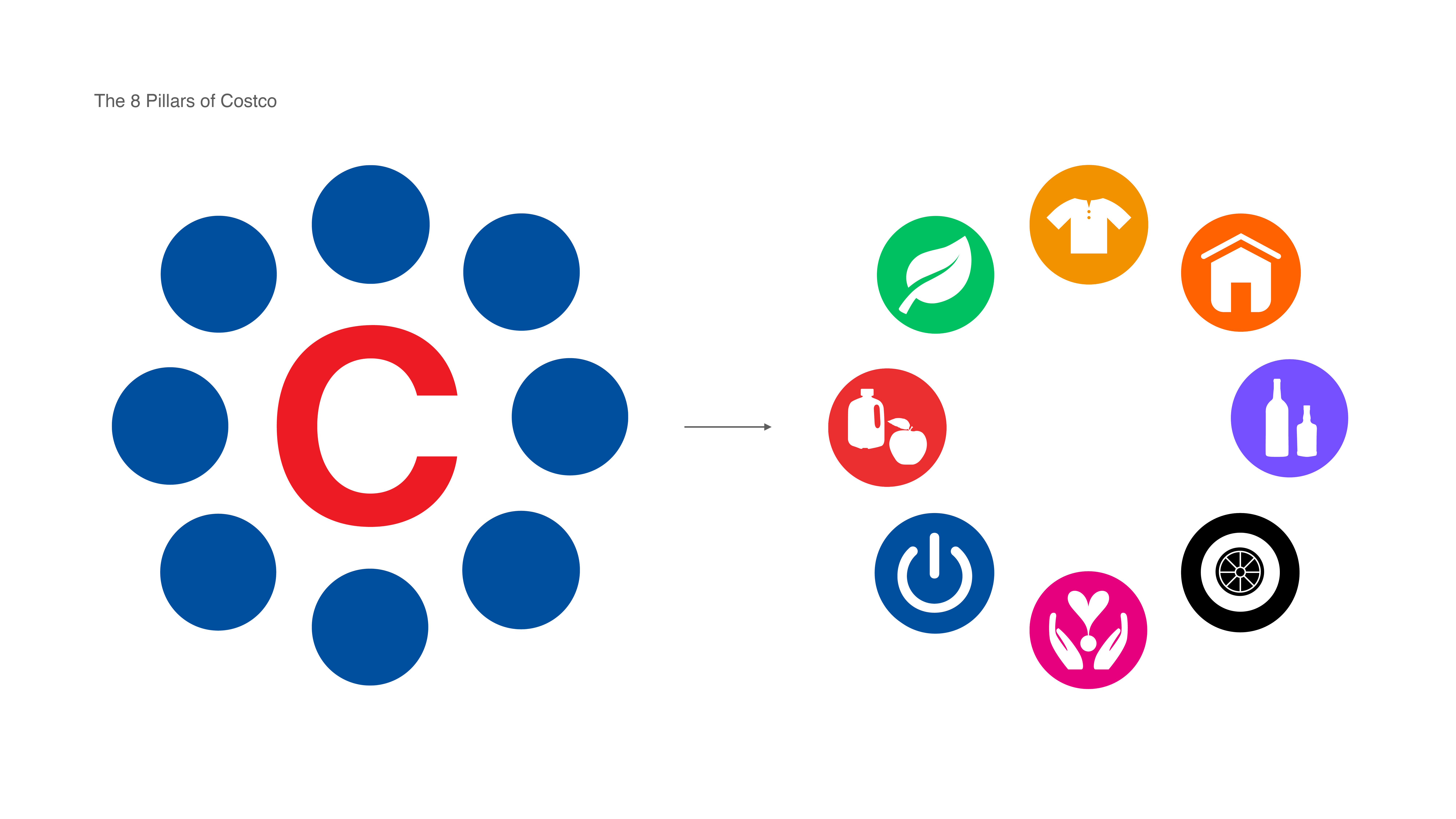 My primary objective in evolving the visual identity of Costco was to design a cohesive in-store signage and product organization system, addressing 'organization' as the central issue flagged by customers, both online and in-store. My graphic identity utilizes the motif of sunshine which is repeated through the logo mark, the companies own brand and the public communications.