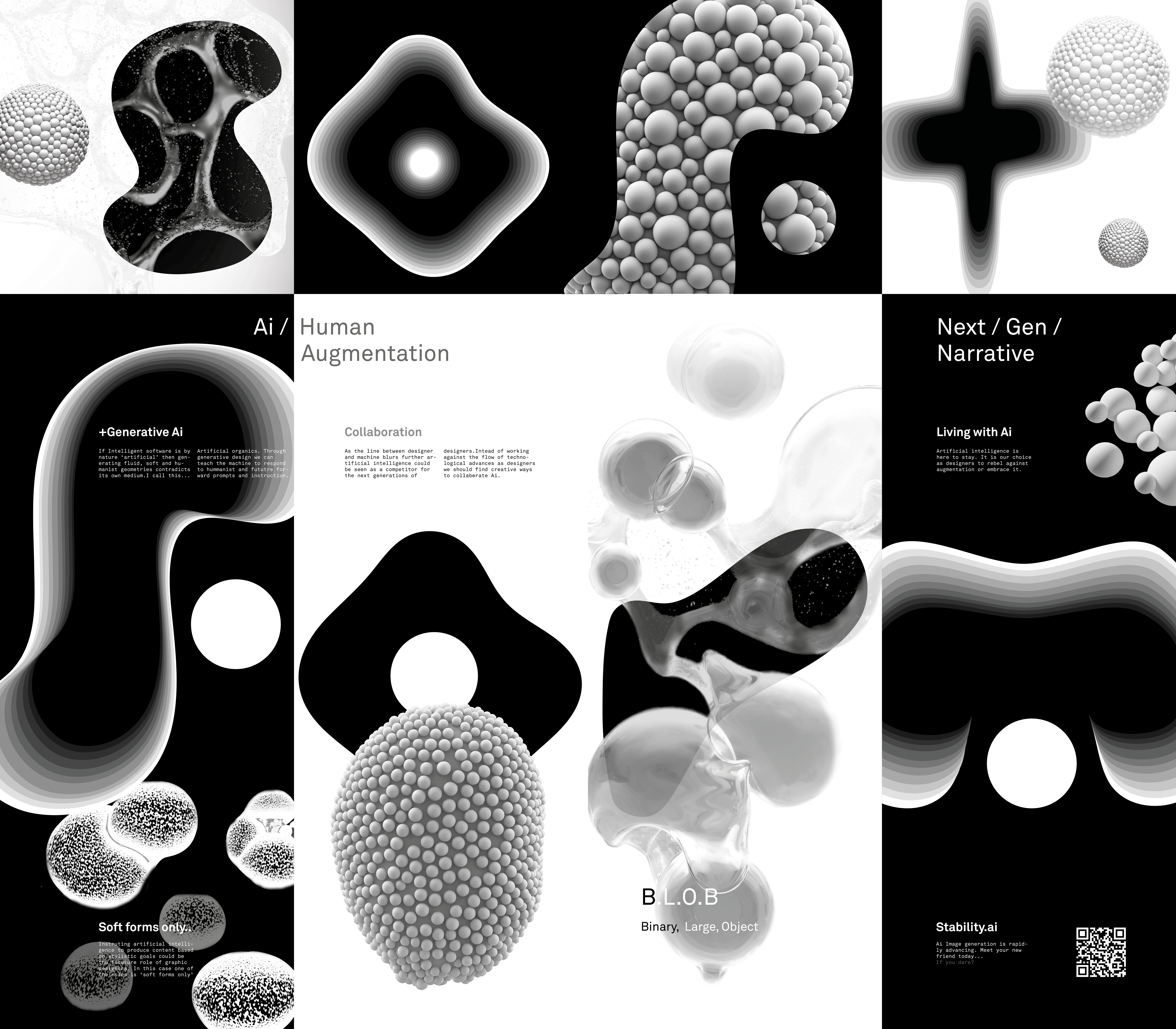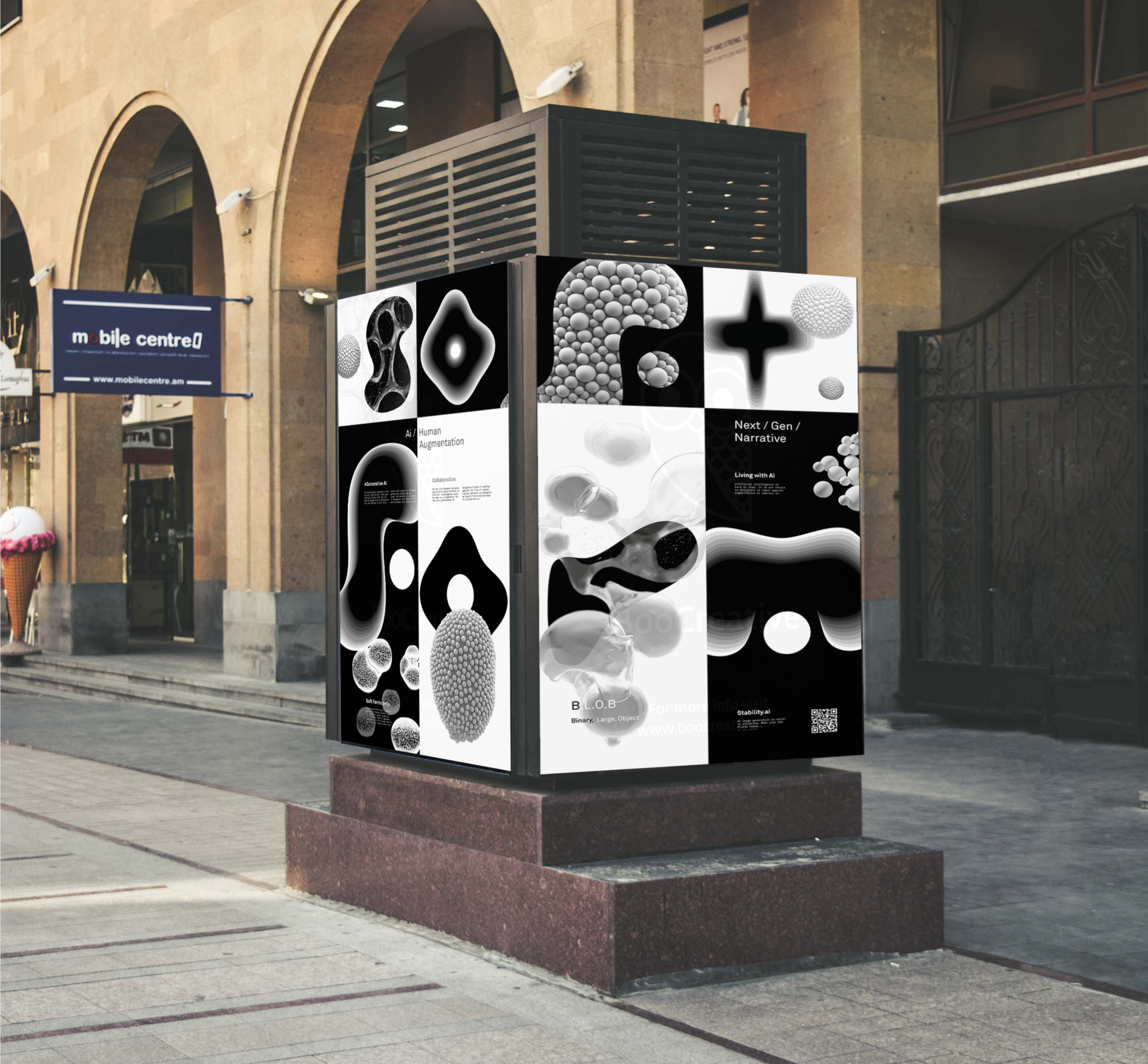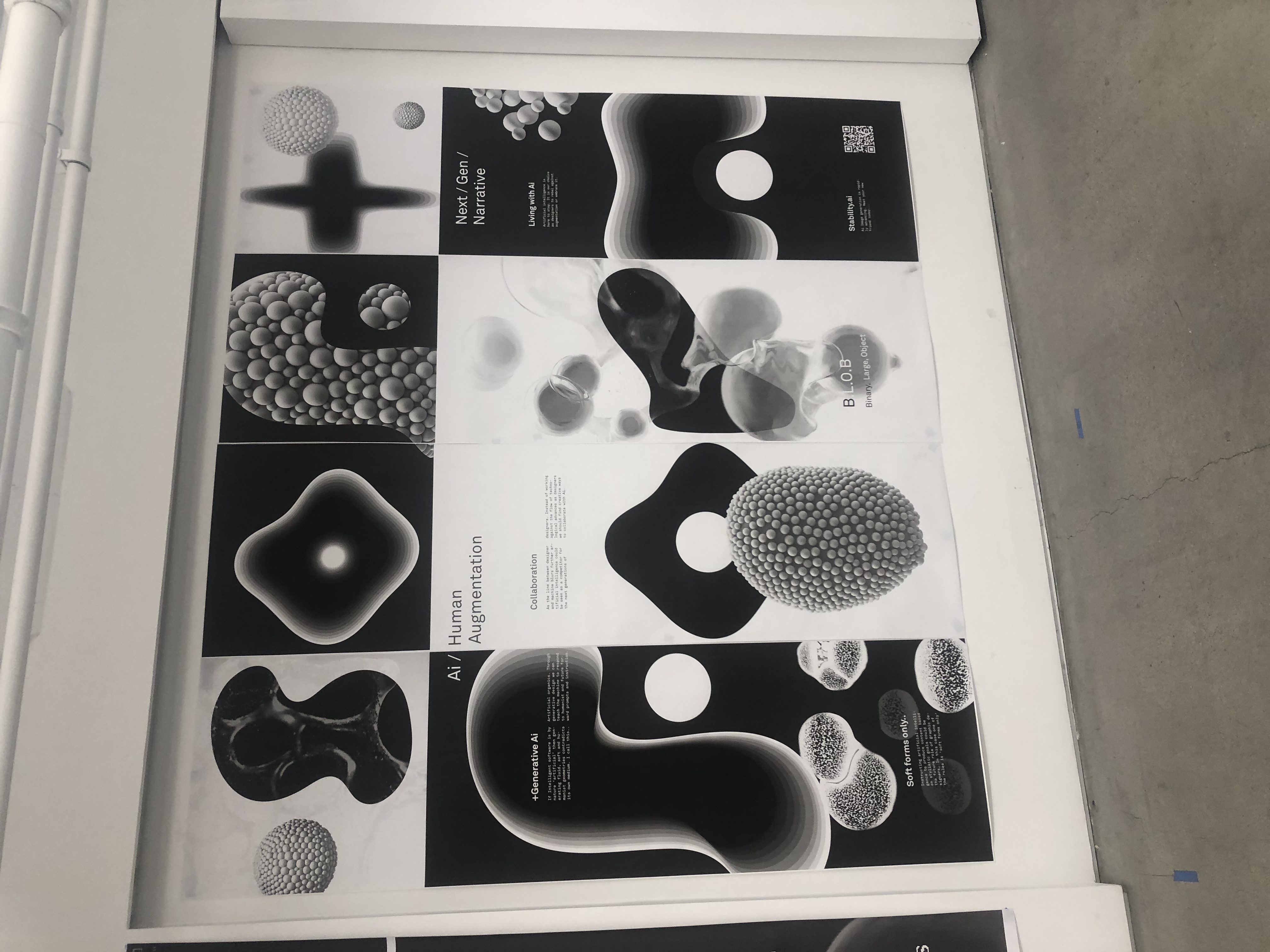 This mural was based on the prompt ‘Objects of Desire.’ This work is focused on a visual and typographic narrative about artificial intelligence and its role in design. The typography in this project is rooted in parametric thinking, using modular and monospaced letterforms. The visual elements themselves draw influence from the manifesto of parametric architecture.