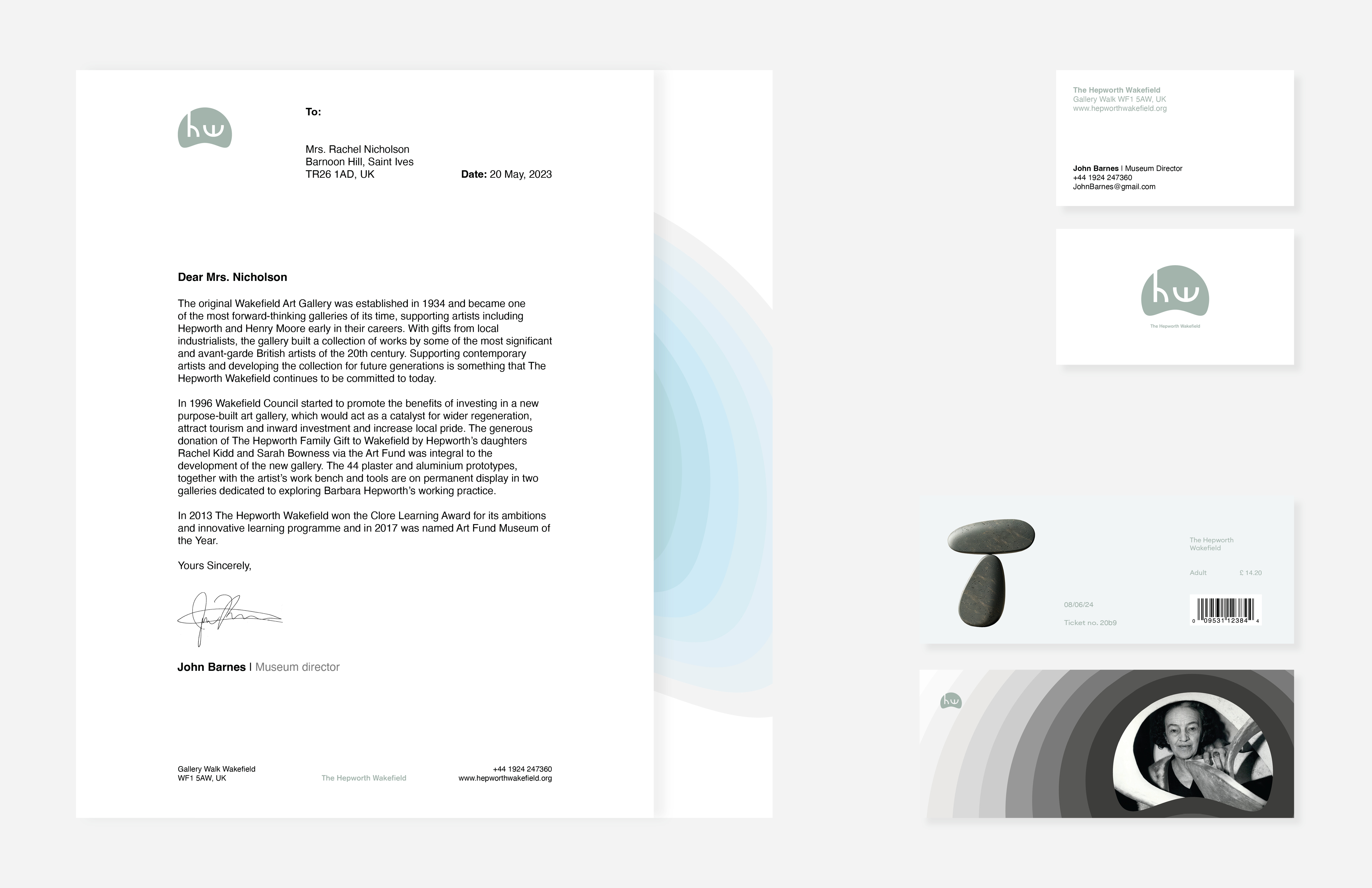The Hepworth Wakefield is a museum in the north of England, dedicated to the life and work of sculpture artist Barbara Hepworth. I focused on the form of Hepworth's artwork as the primary inspiration behind the smooth curvature of the logo mark.