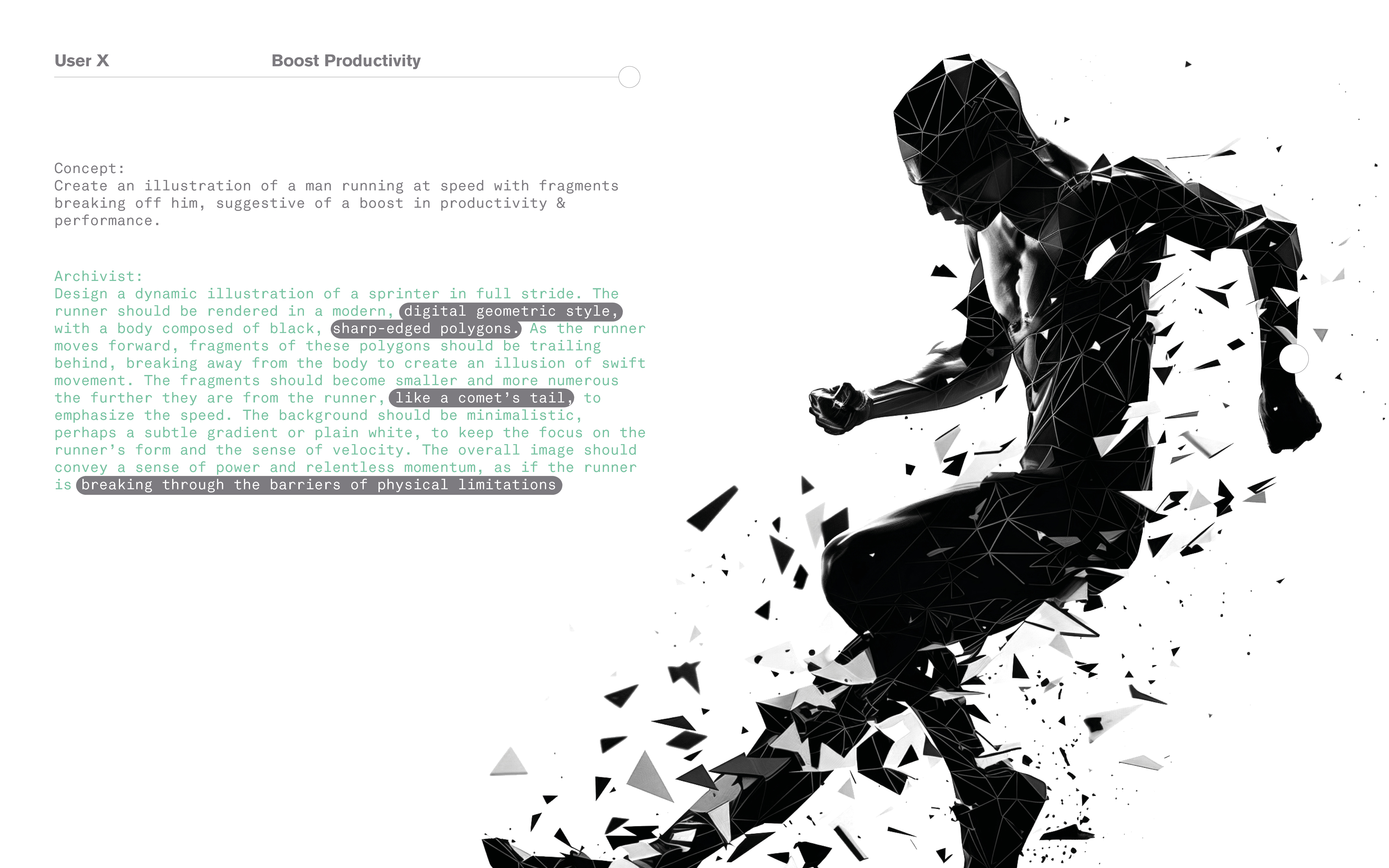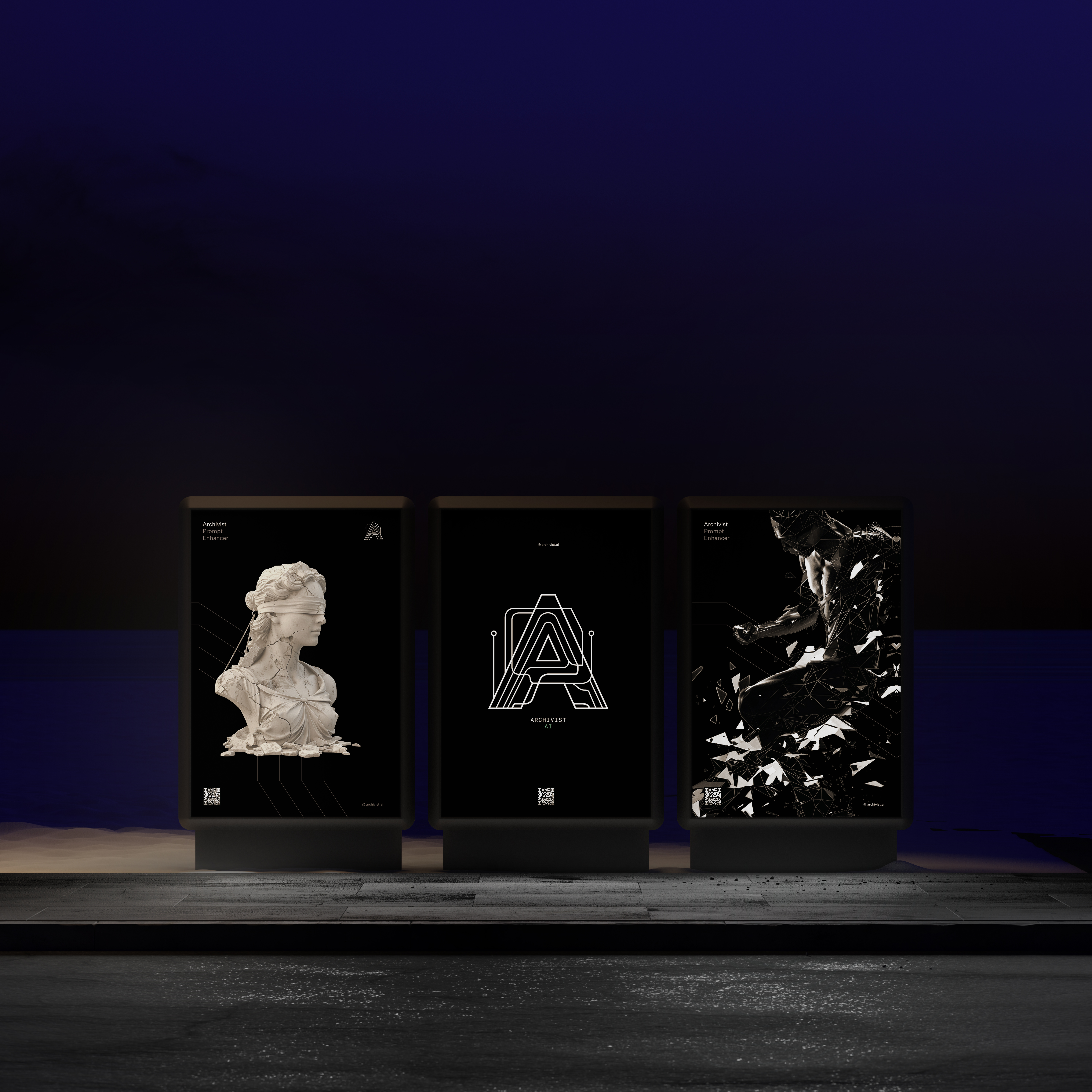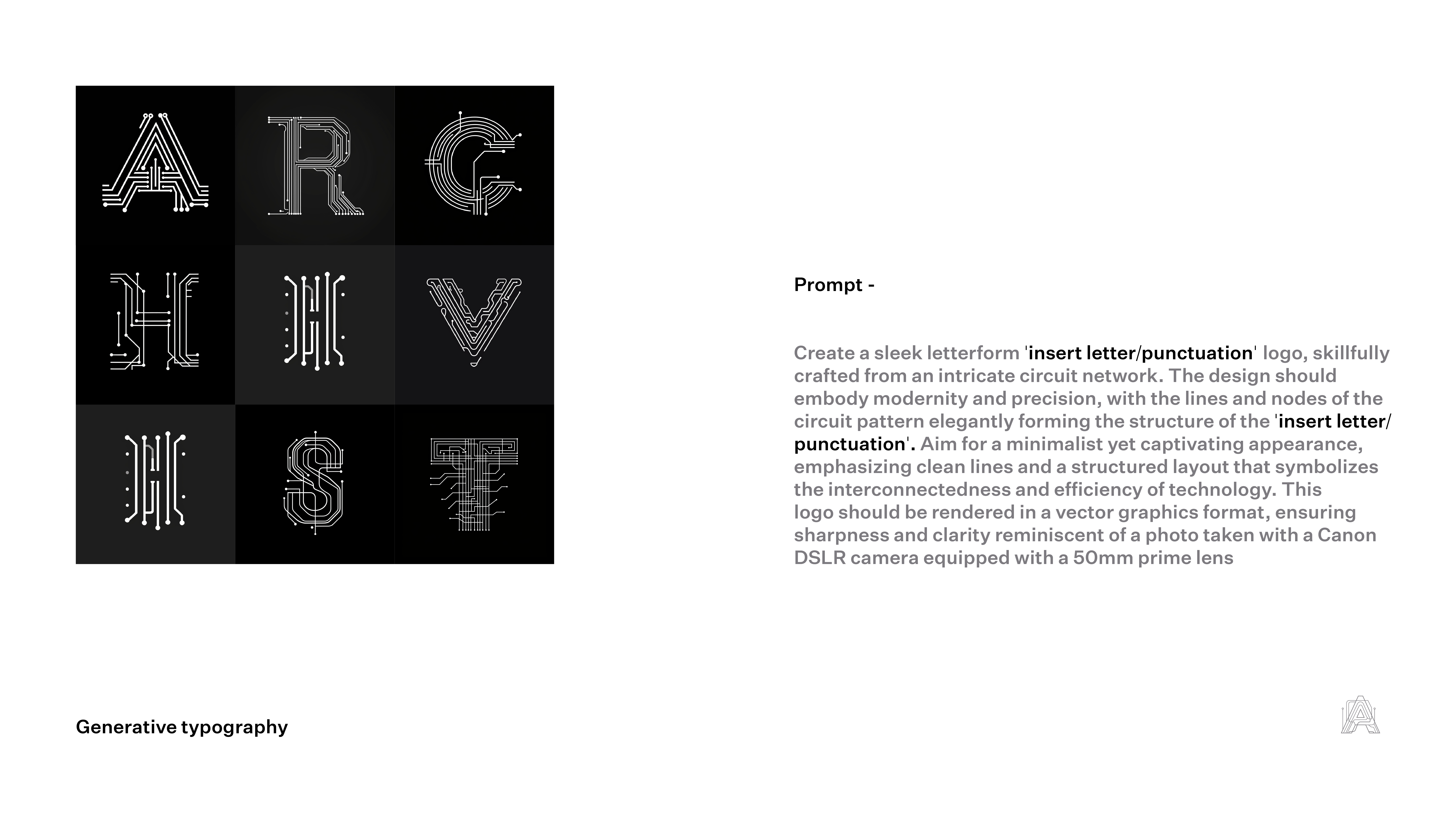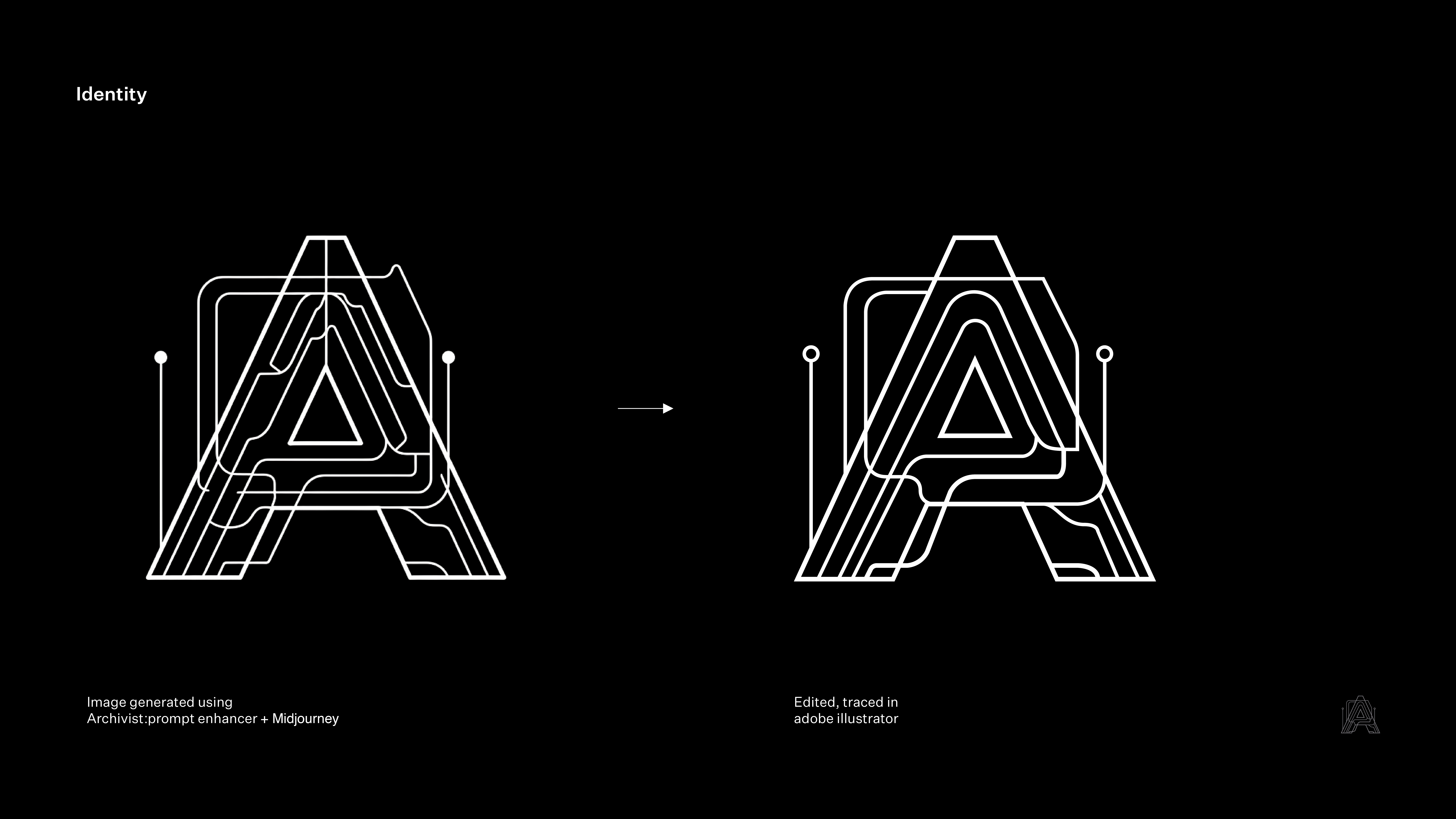 Through this research I was able to integrate ChatGPT and Midjourney into my design projects creating a generative AI typeface and a human-led AI logomark for the Archivist visual identity.