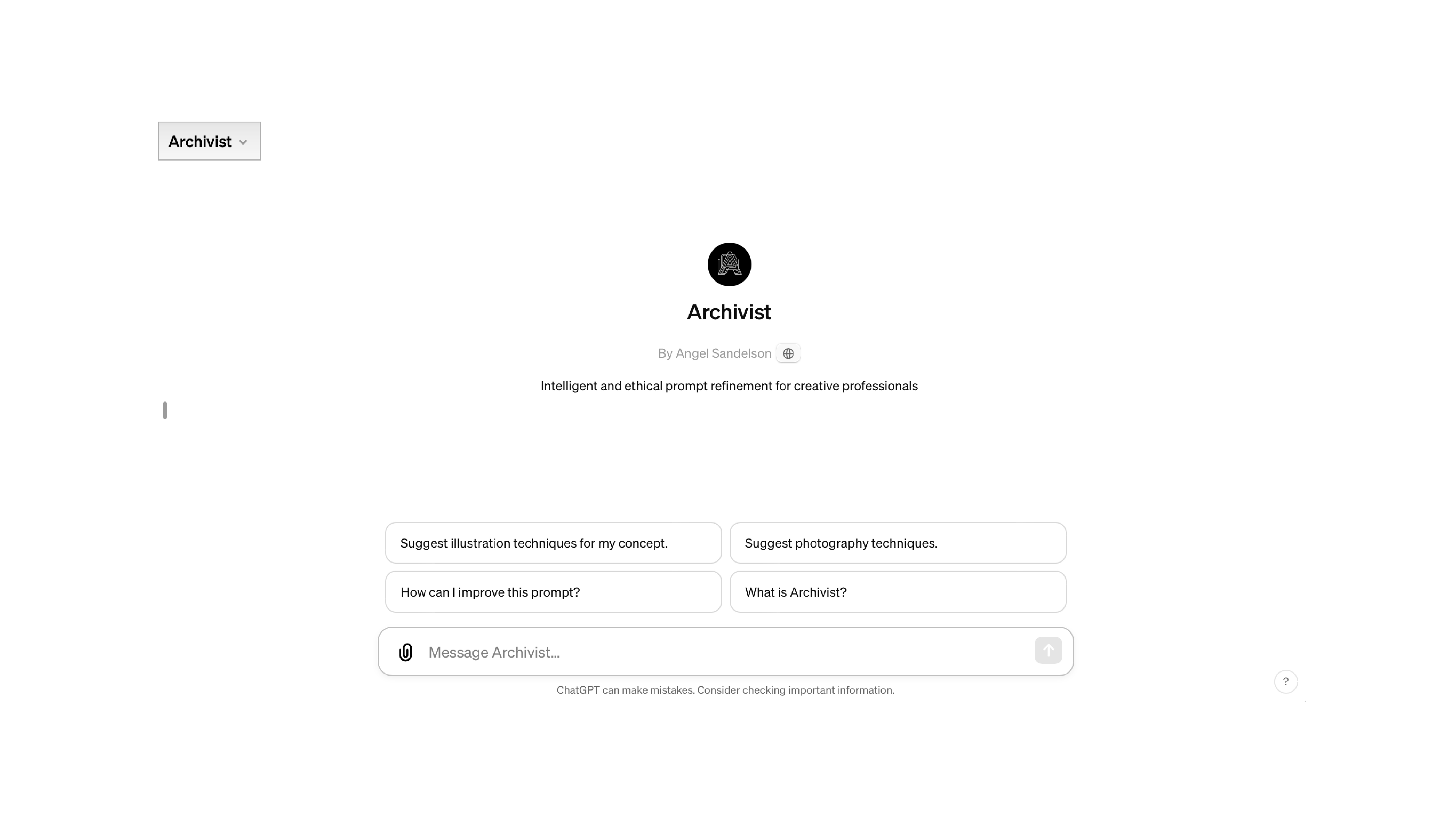 Archivist is a specialized prompt enhancer powered by ChatGPT. It is designed to refine and elevate creative concepts for text-to-image prompts, integrating both technical precision and creative direction. Archivist acts as a creative partner, enabling users to instantly generate highly relevant prompts for their projects.