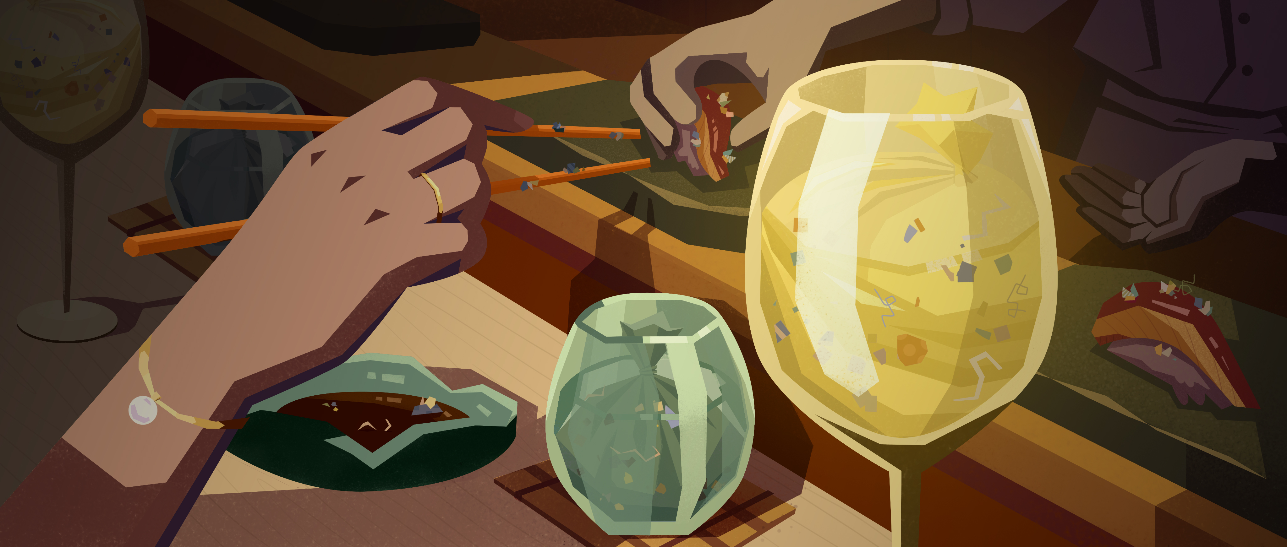 Even when we think that the food we eat is clean and high-end, there are still possibilities of it containing micro-plastics. This sequence aims to invite the audience to question what is in all their foods and everything we consume into our bodies. The idea that there are microplastics everywhere, including in foods we eat, is represented by the process of a chef preparing a fine dining Omakase sushi that has plastic pieces in it.