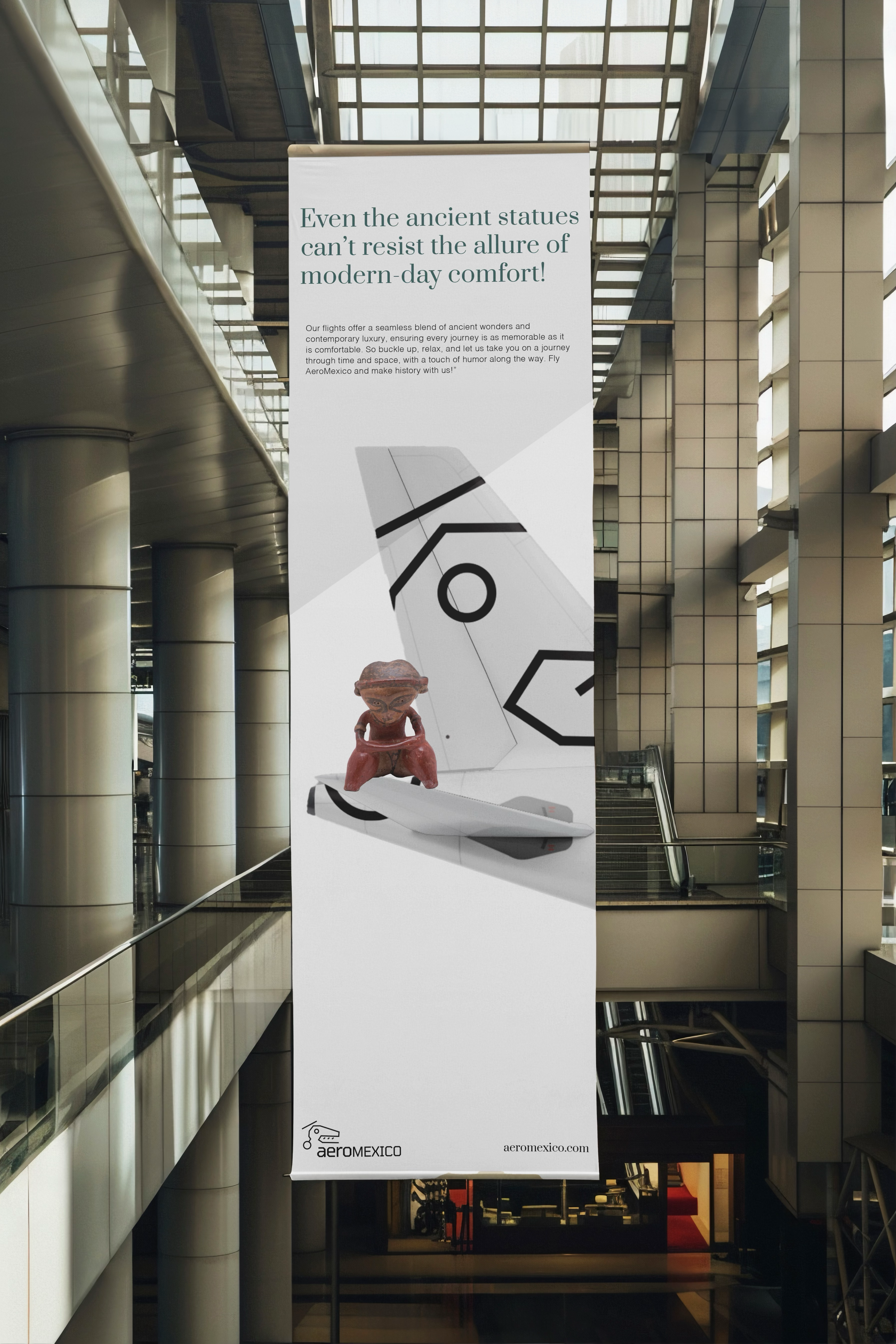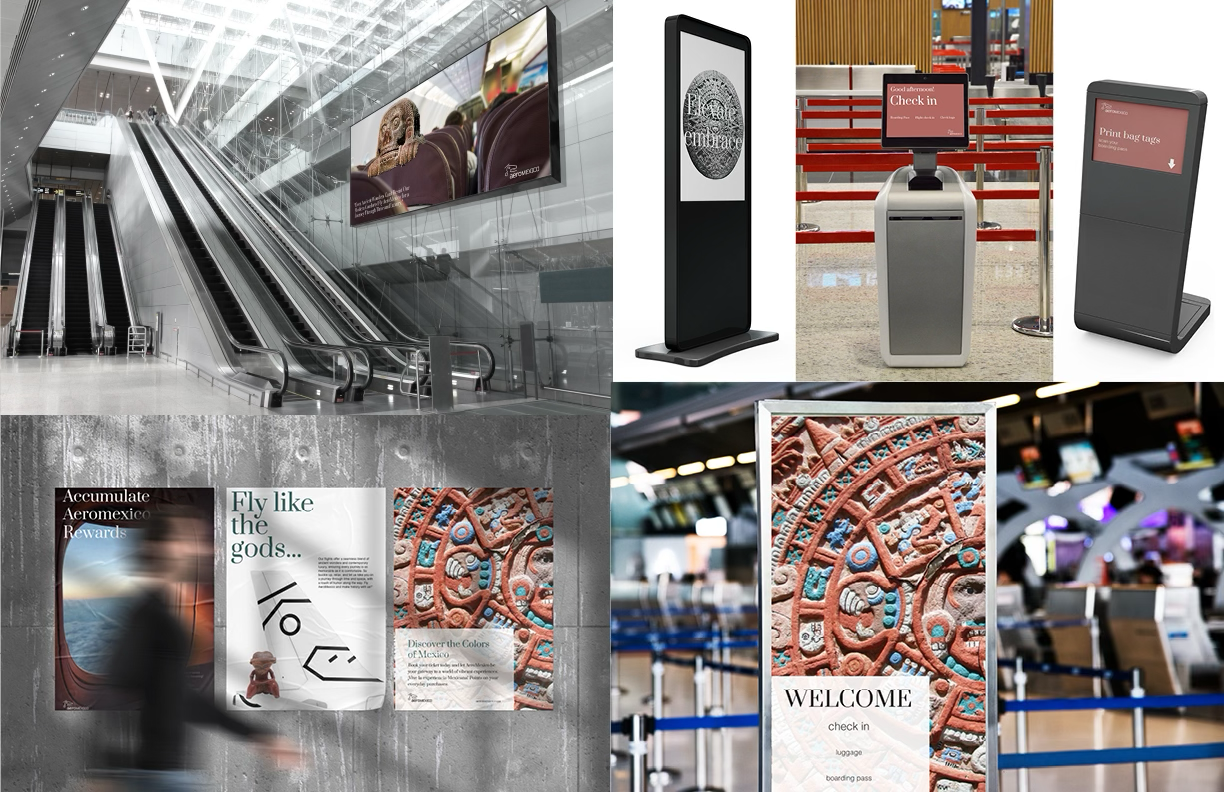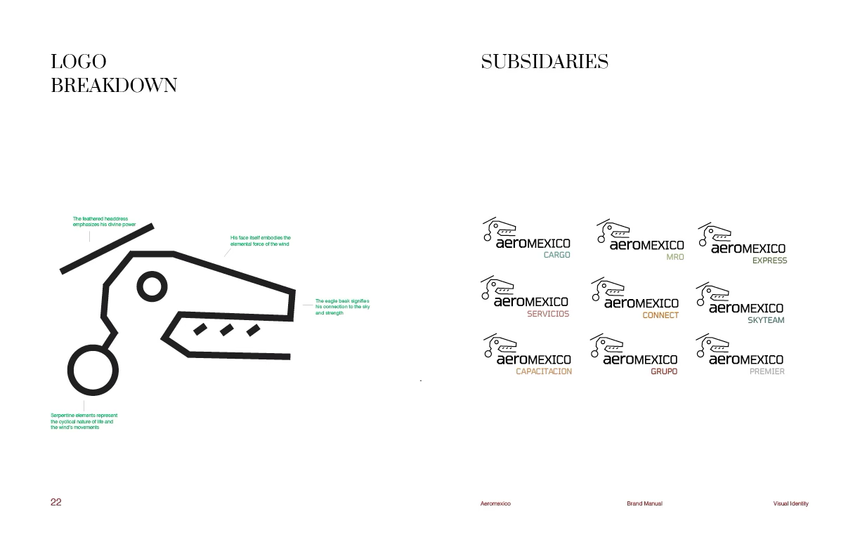 This brand refresh for Aeromexico introduces the "Eheactl" logo, designed to capture dynamism and modernity. It reflects Mexico's forward-looking aspirations while honoring its ancient heritage and spiritual traditions. The simplified symbol, depicting Ehecatl, the Aztec wind god, adds authenticity and historical resonance, making it a fitting icon for an airline. The logo's structural form aligns with the type, enhancing the overall cohesion and recognizability of the brand.