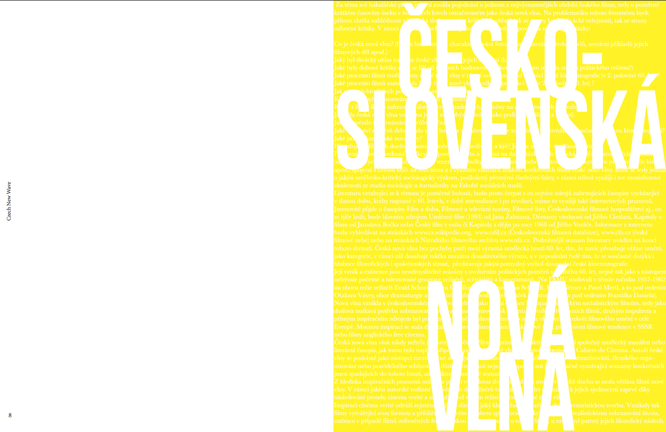 For this booklet, I chose the Czech New Wave. Centered around the staple films from that era and experimenting with type and imagery. (Instructor Jimena Gamio)