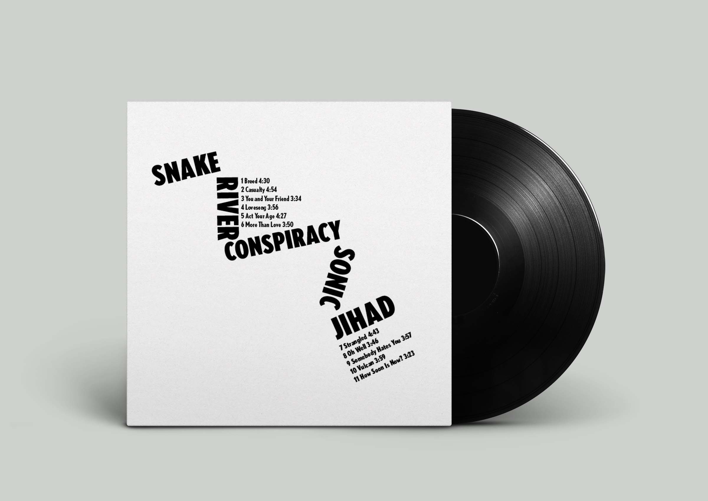 The following is the Snake River Conspiracy album redesigned to give it a new fresh look while still honoring their music. A better design could still be attention-grabbing and visually compelling, but it would do so in a way that is respectful and inclusive.