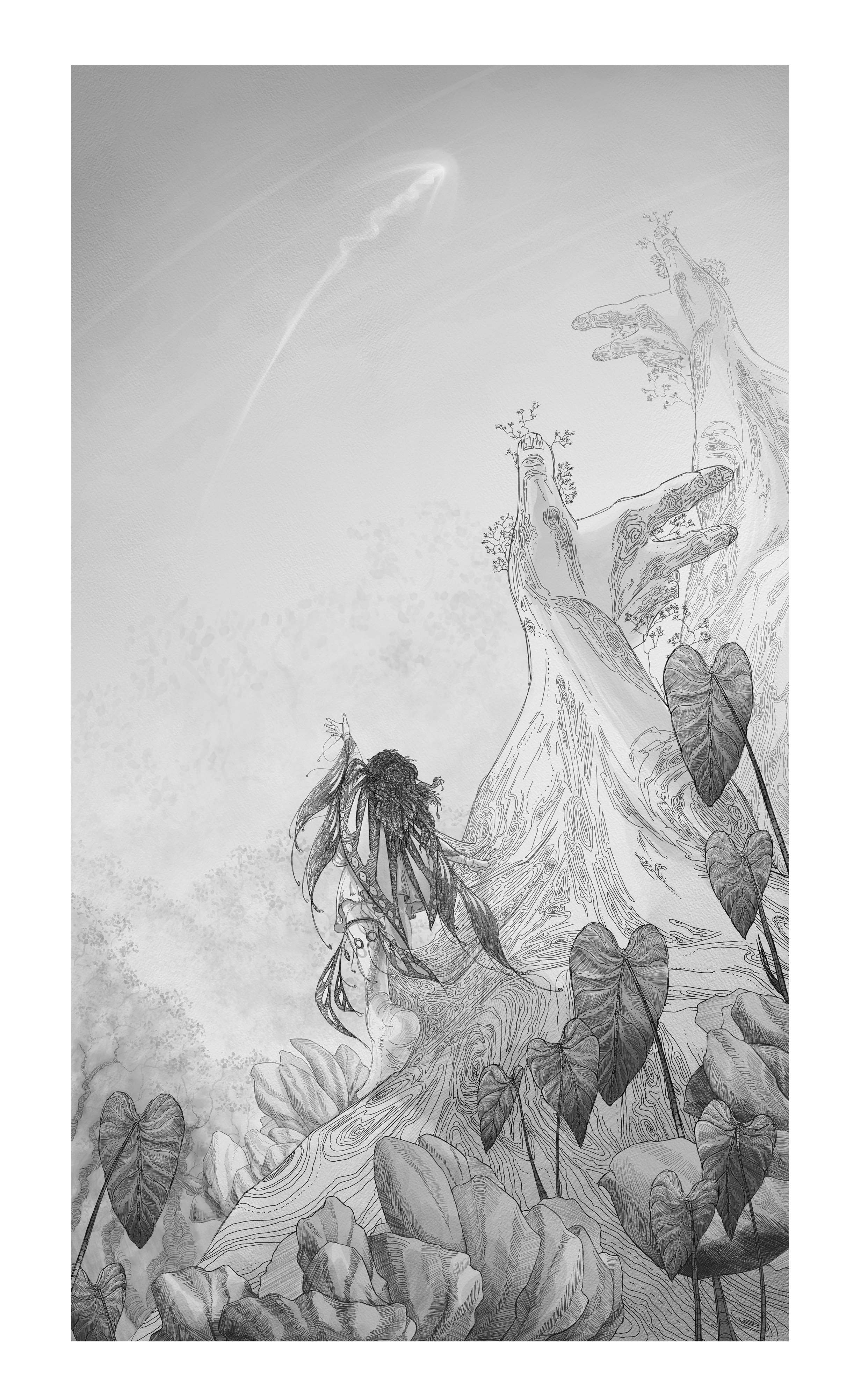Stranded on a living, conscious, planet, two members of a small underground community of human survivors journey across the surface searching for a way out. A visual development project for an original story.