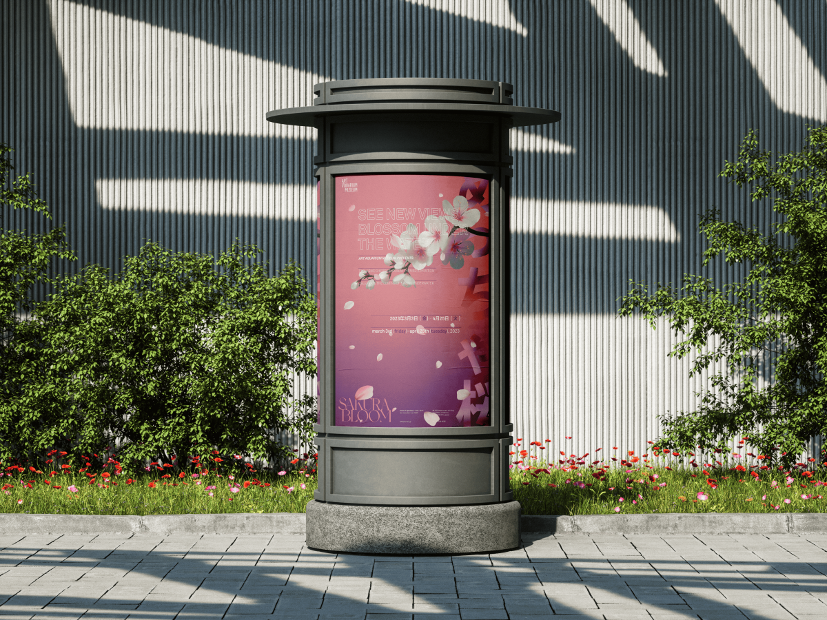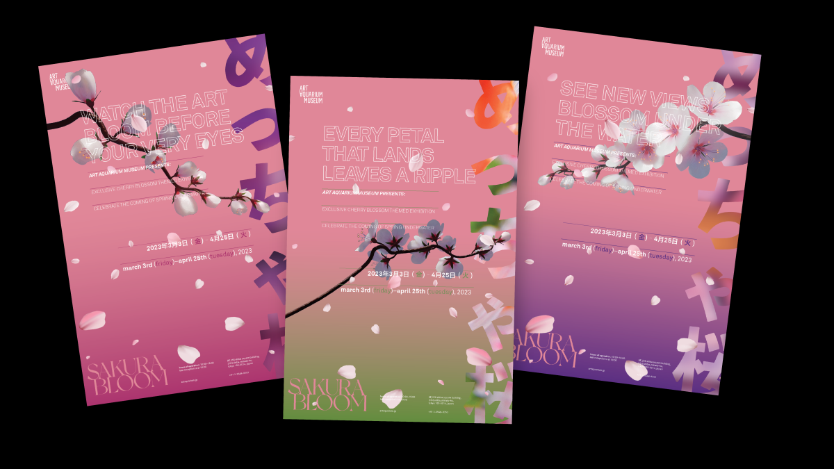 While the basic exhibitions for the aquarium are wonderful and interesting, I wanted to make sure that they would also be able to host unique events and minor exhibitions. Because spring is a season for change, I chose a cherry blossom themed exhibition to bring forth the idea of rebirth–the visitors are reborn when they enter the aquarium.