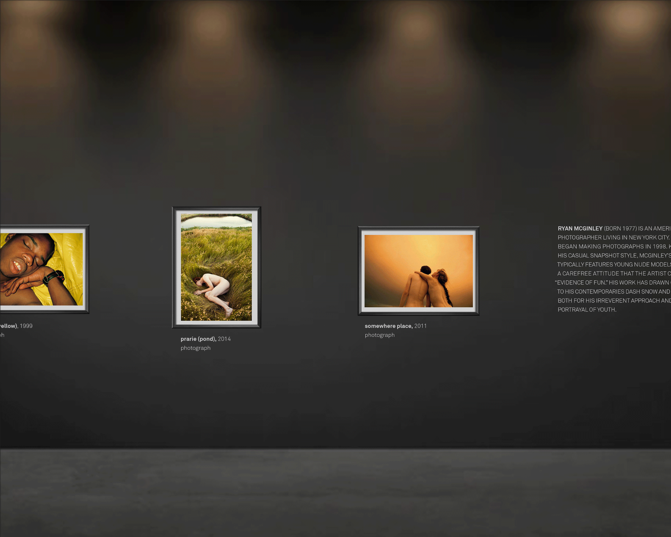 I wanted the exhibition to be shown in a moody environment with dim lighting. Utilizing warm lighting, I wanted the experience to be intimate and warm while showcasing the pieces themselves as small so that viewers would have to get close to the work.