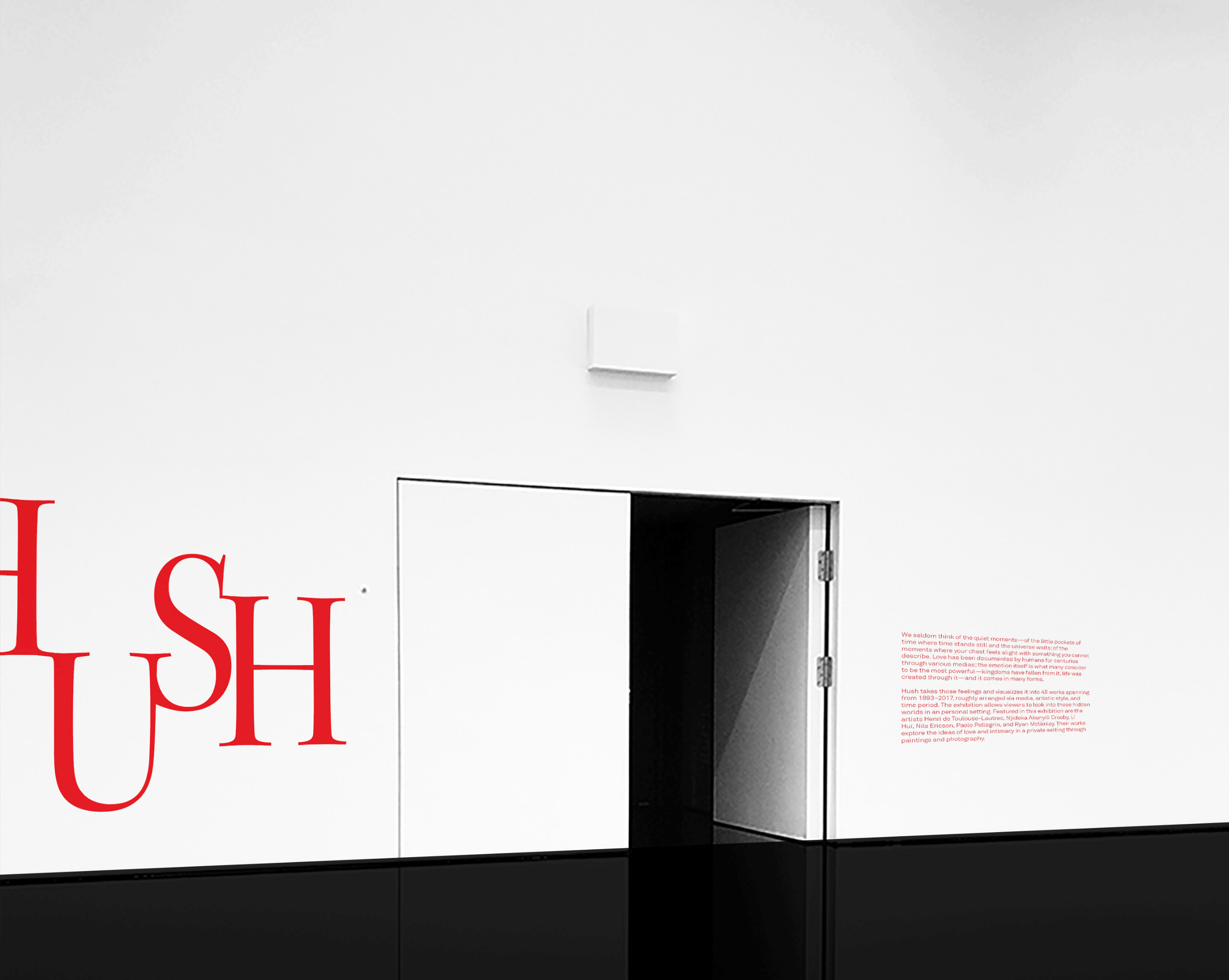 The posters feature a spotlighted artwork from the six different artists featured in the exhibition. I chose pieces that I personally believed portrayed intimacy extremely well. I was determined to show the beauty in sexual and nonsexual intimacy, choosing large-scale images to make the viewer feel enveloped in its warmth and have an intimate experience with the posters themselves.