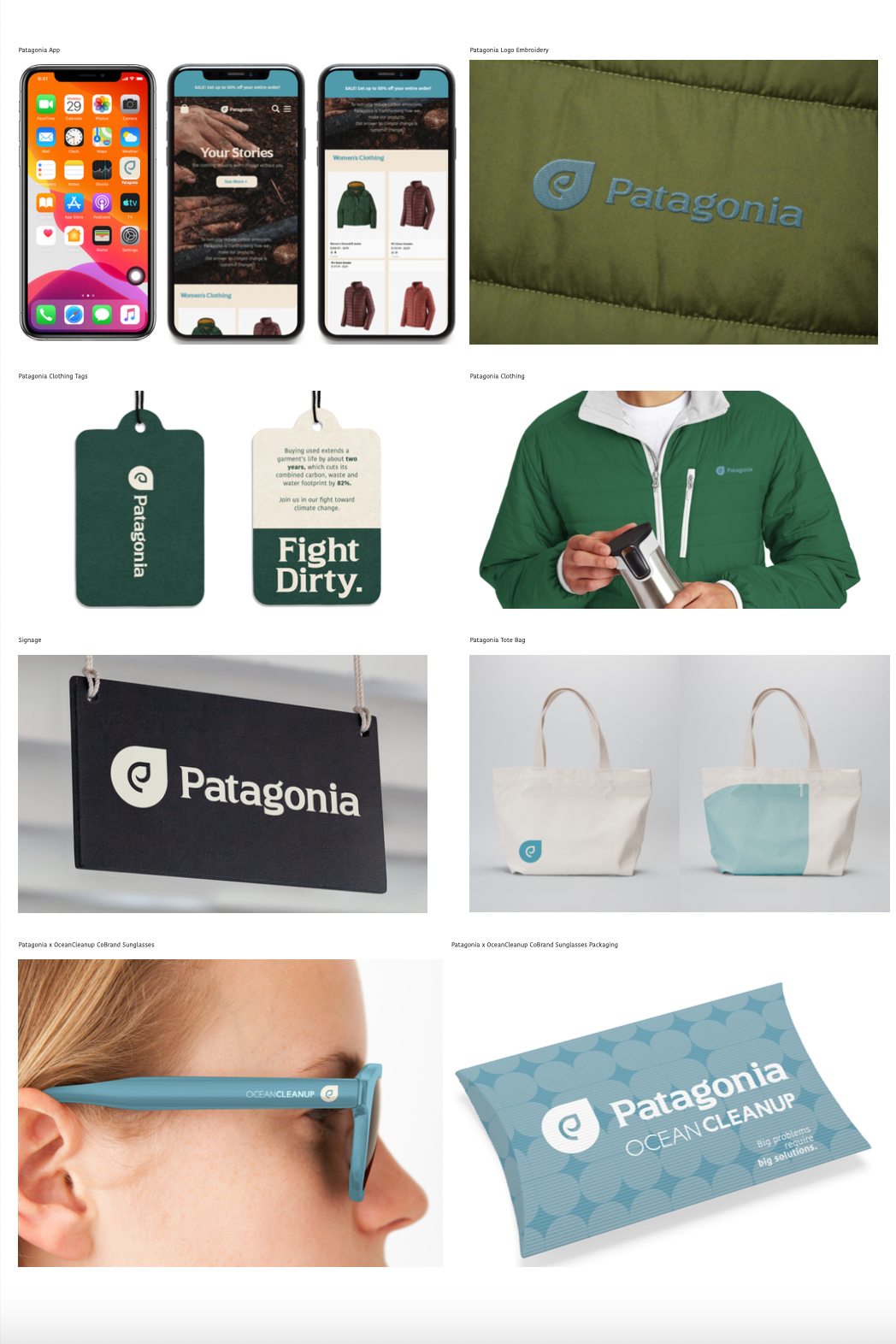 2nd large poster including app mockups, embroidery, clothing tags, signage, tote bags, and collaboration apparel and packaging.