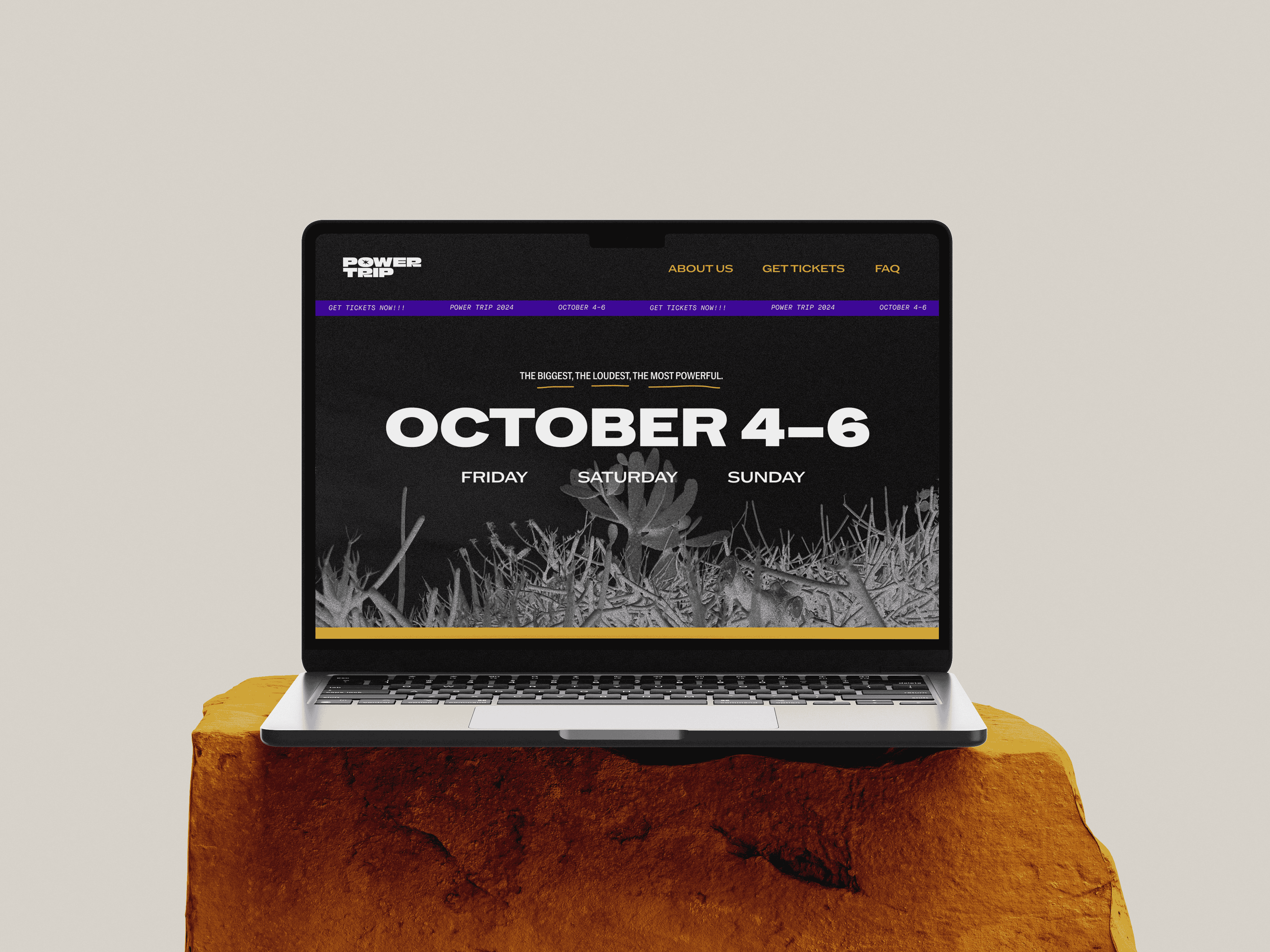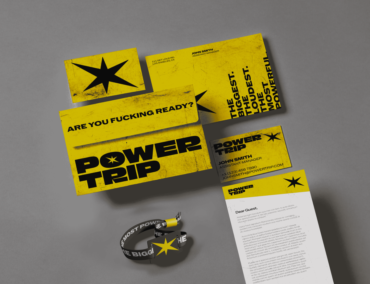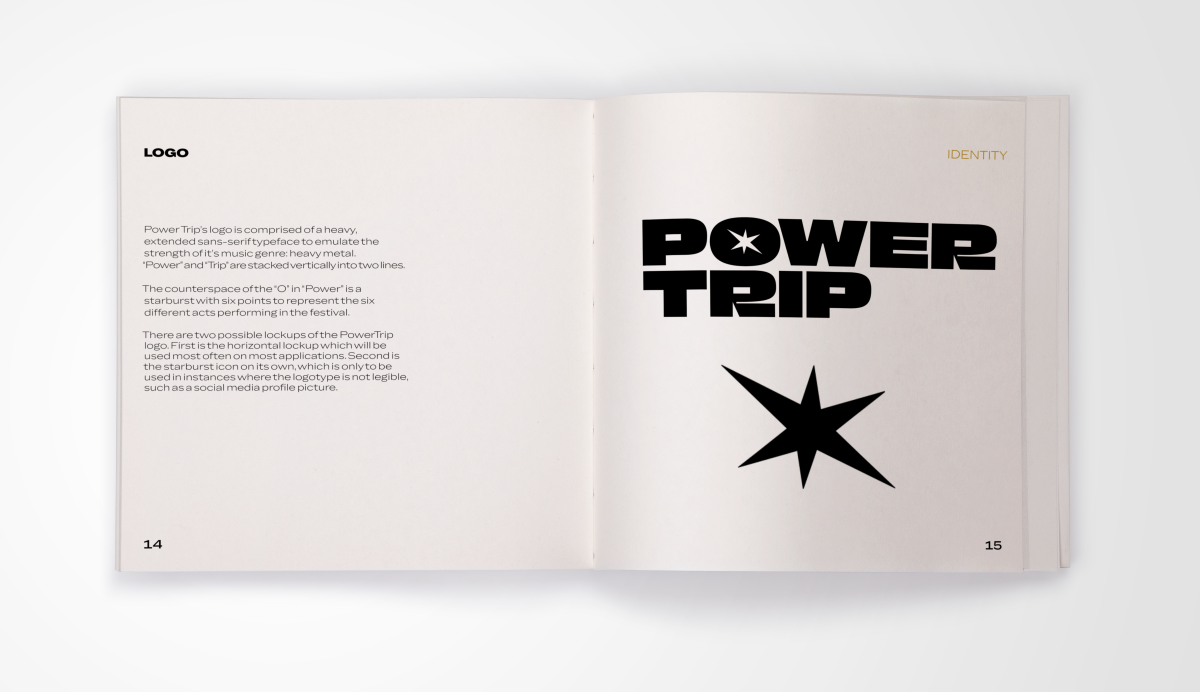 When designing the logo, I listened to AC/DC to get inspired. I wanted the logo to feel as grounded as their music, and I replaced the counter space of the “O” in “Power” with a six pointed burst. The six points represent the six different acts performing at the festival, and I chose a starburst shape to emulate the loud, in your face feeling heavy metal offers.