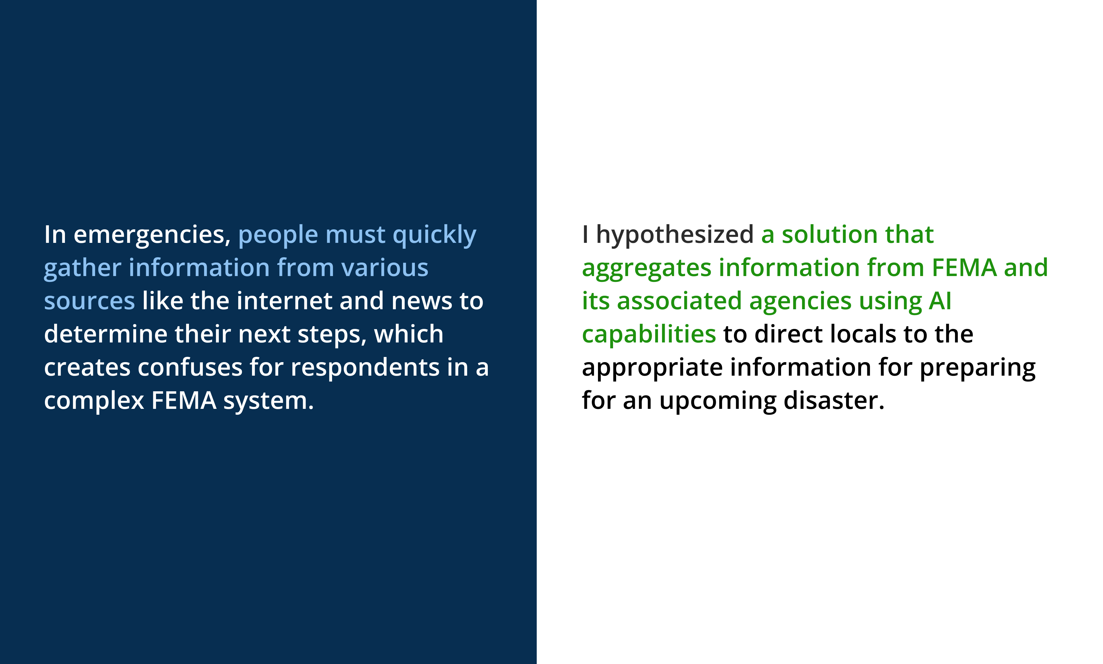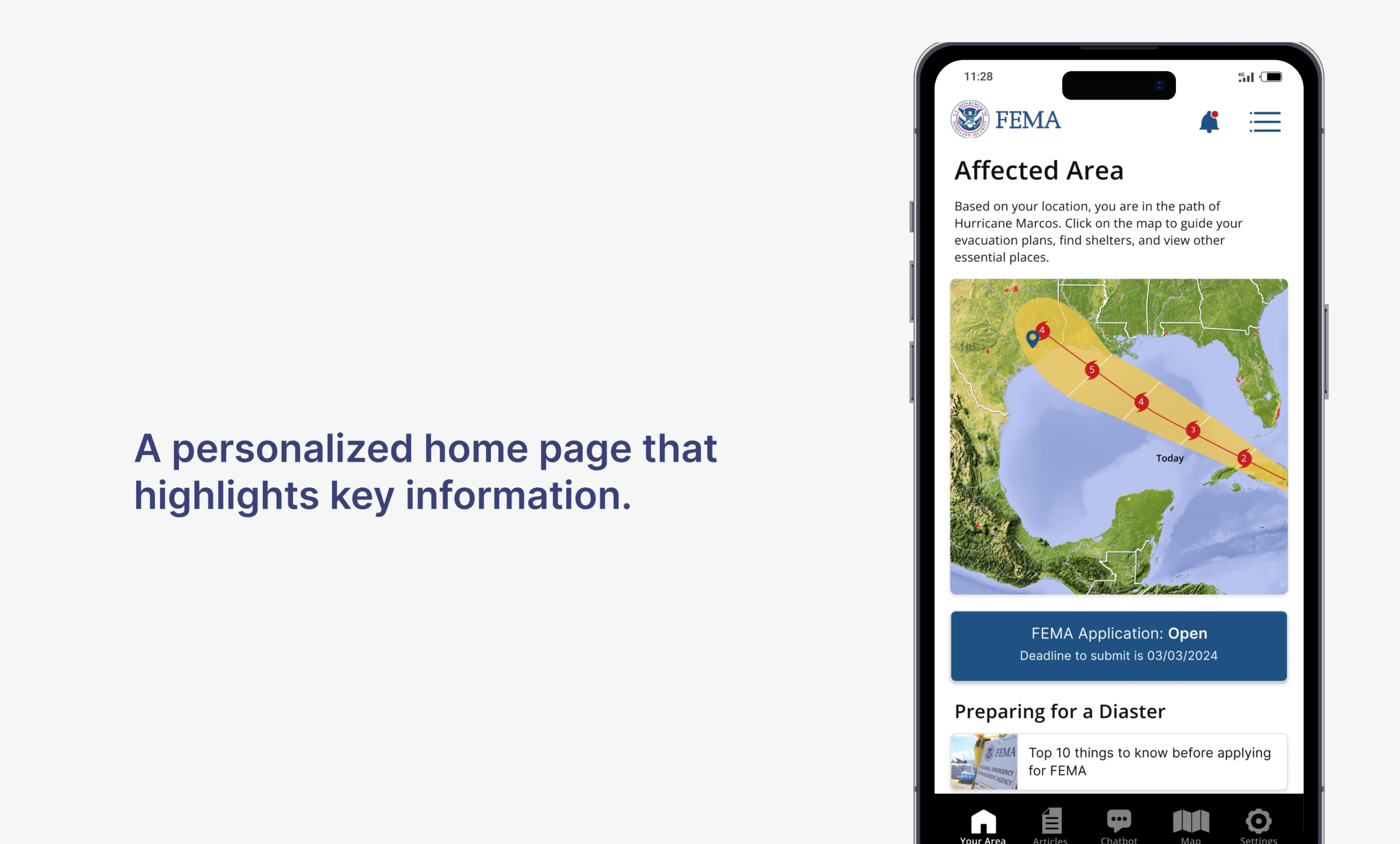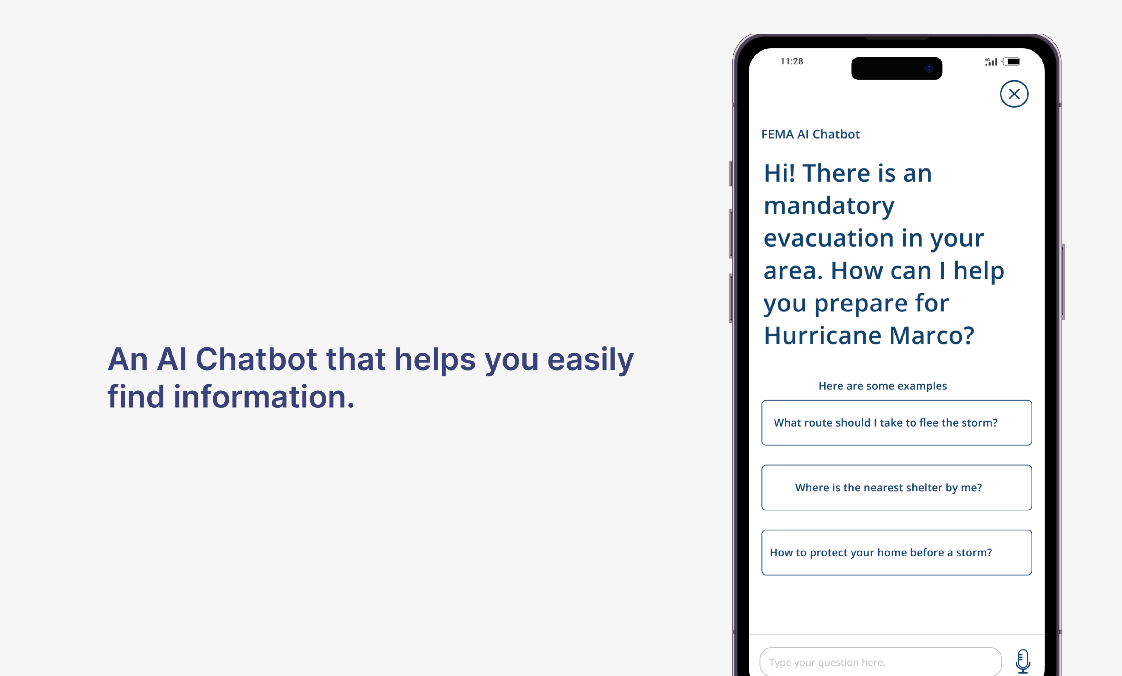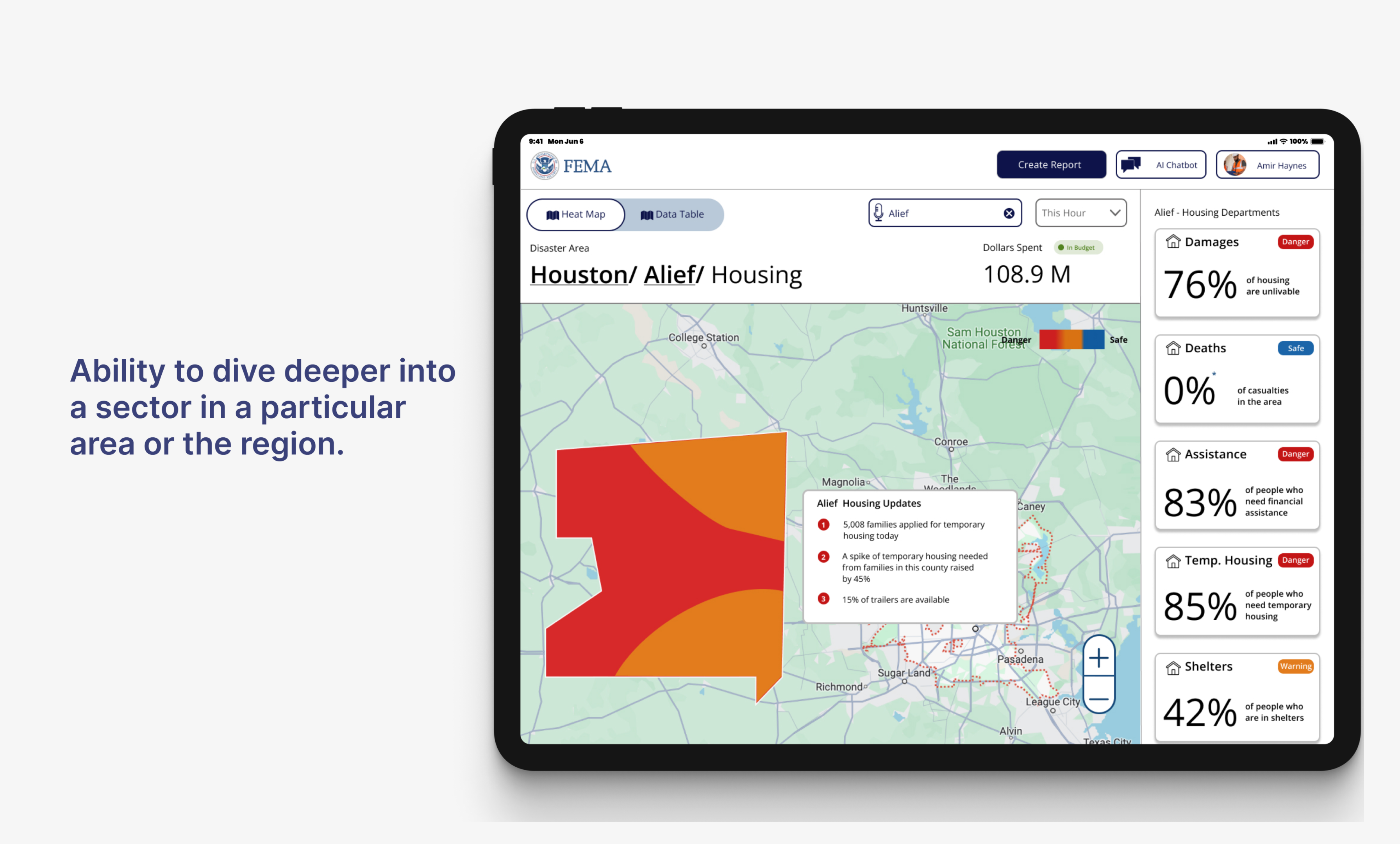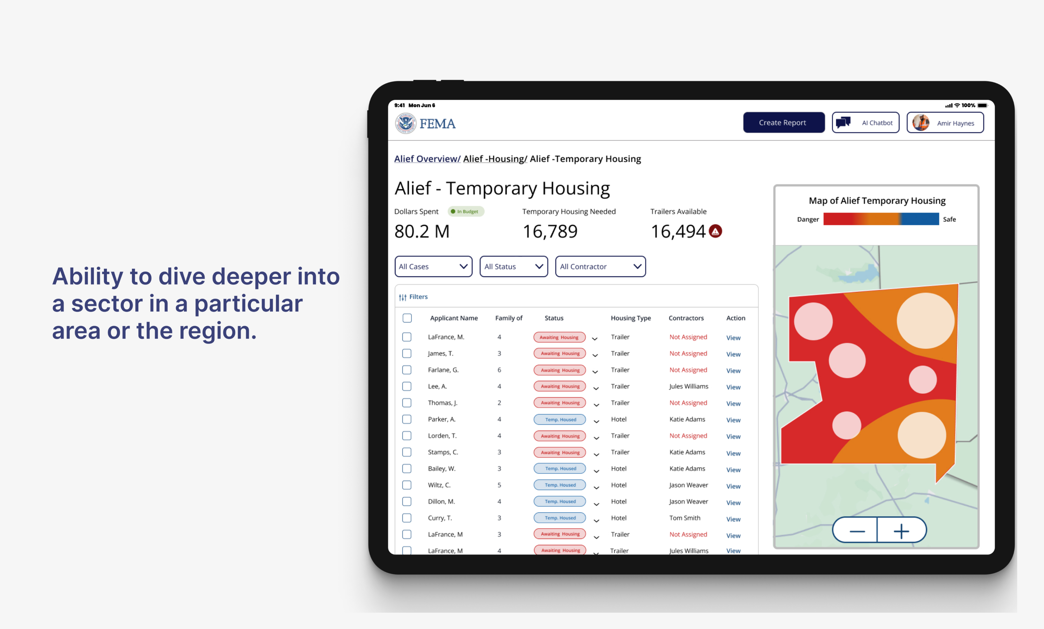 Through exploring various mobile and dashboard interactions, I designed user-friendly interfaces that seamlessly aggregate information from FEMA and associated agencies. These interfaces serve two purposes: one for individuals responding to natural disasters, and another for FEMA employees during recovery efforts.