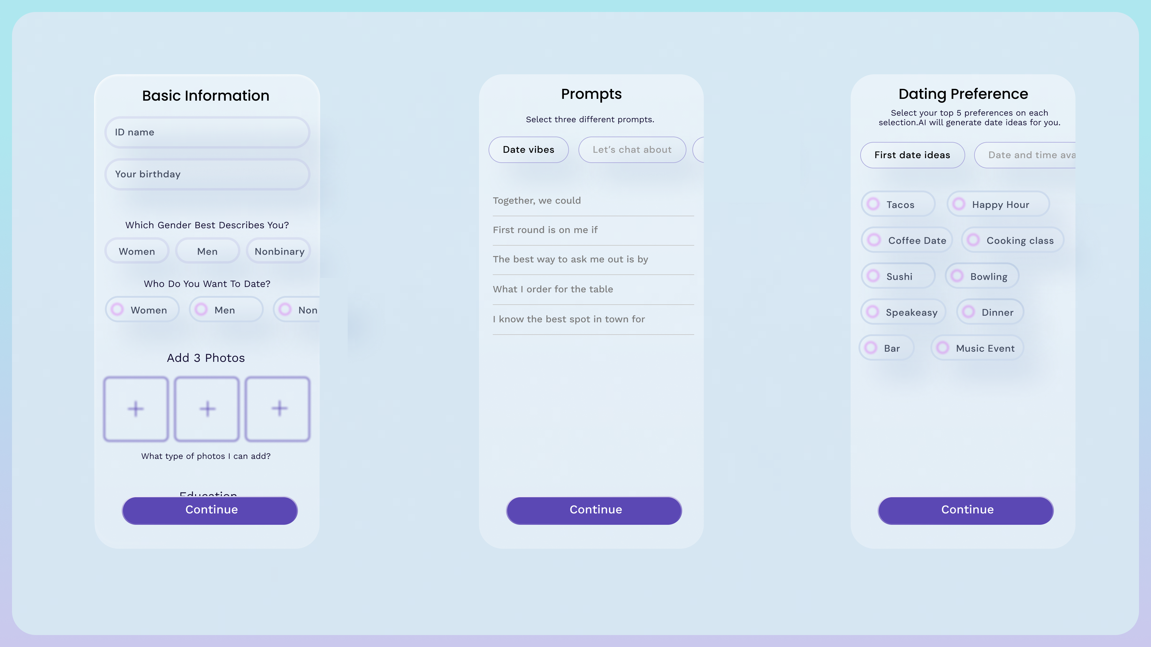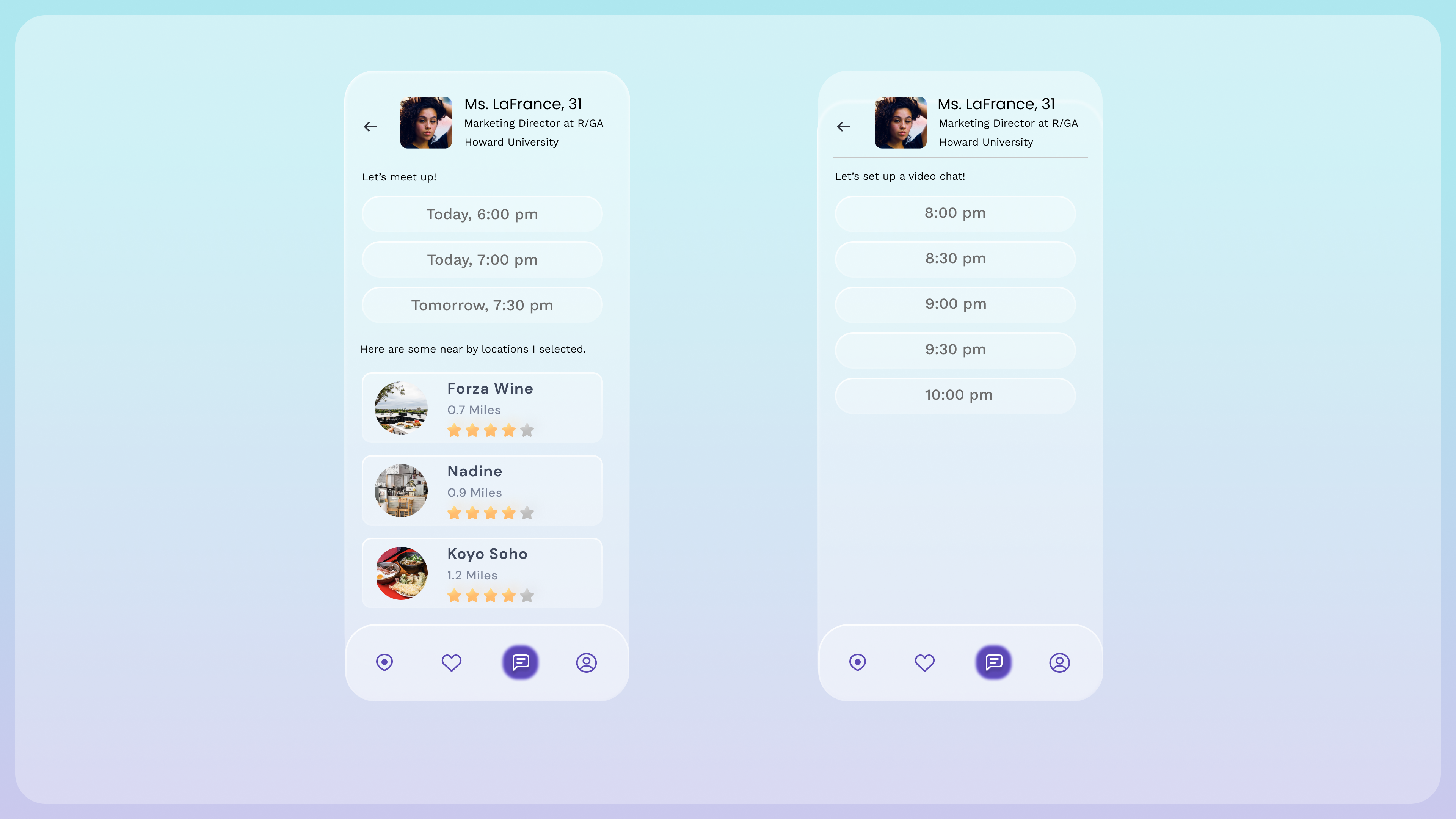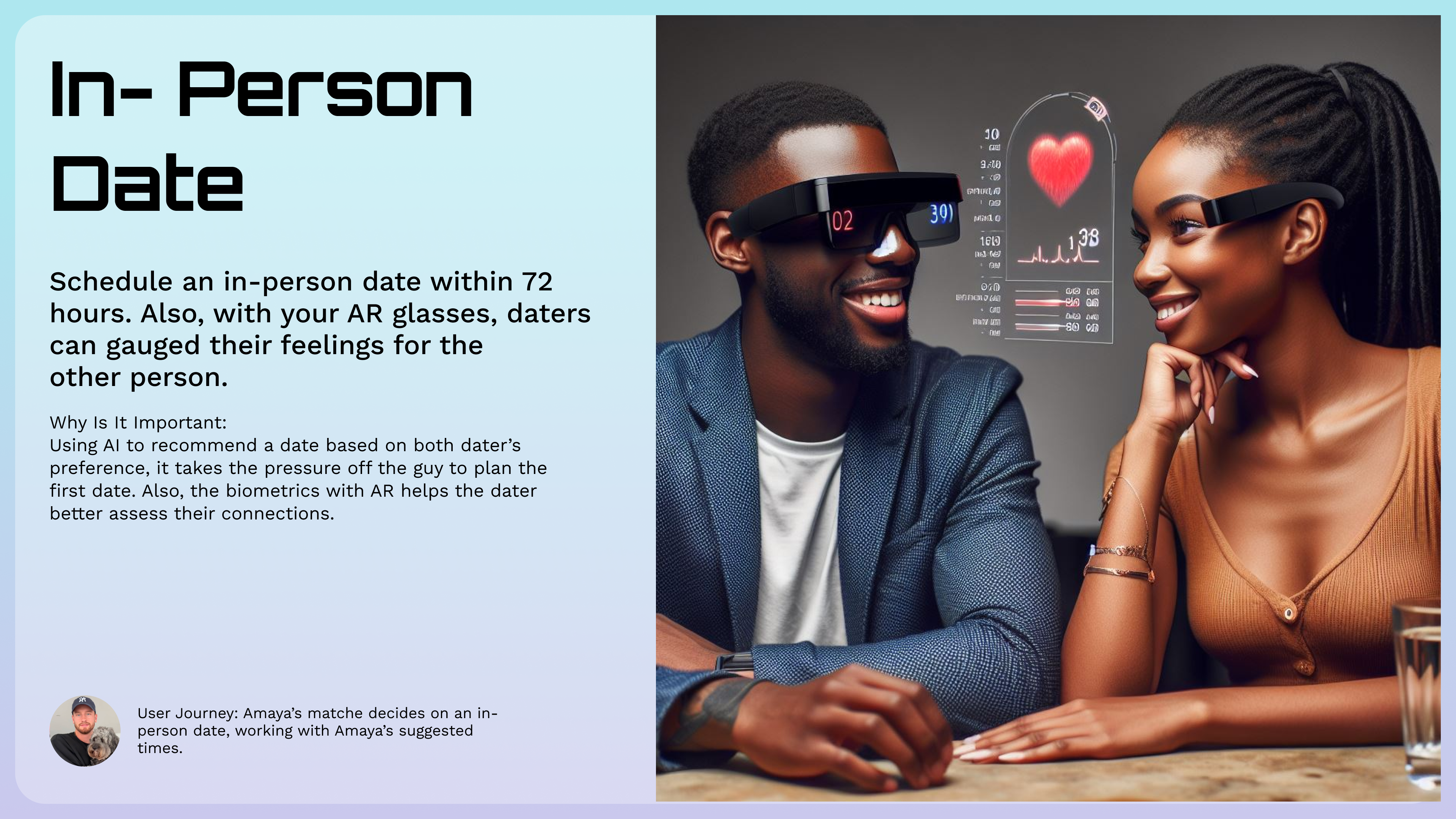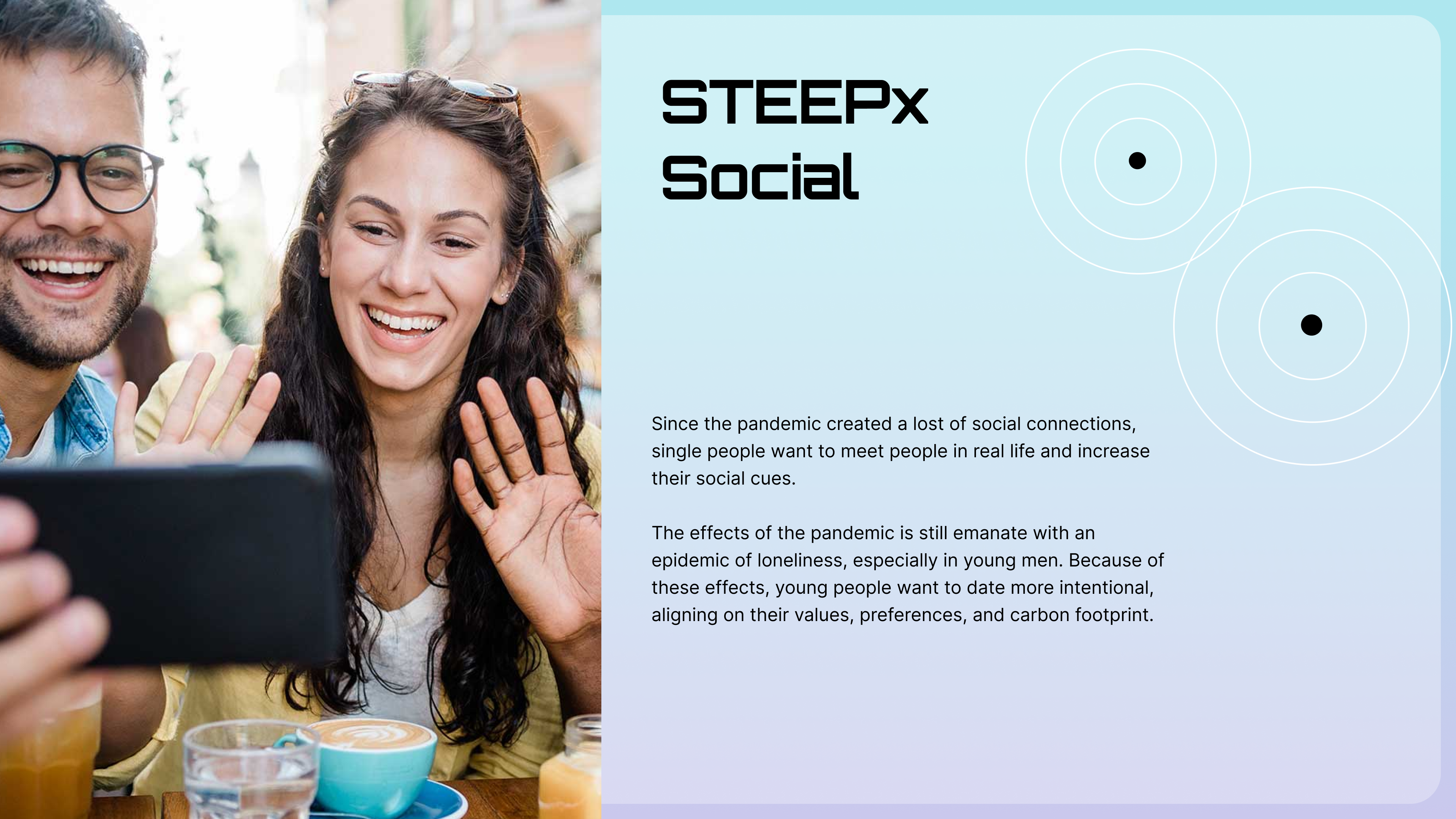 Since the pandemic created a lost of social connections, single people want to meet people in real life and increase their social cues. Online dating is now paid wall and authentic connections are far and few. How might we design an experience where single people can utilize technology to meet people In-Real-Life and uild authentic connections?