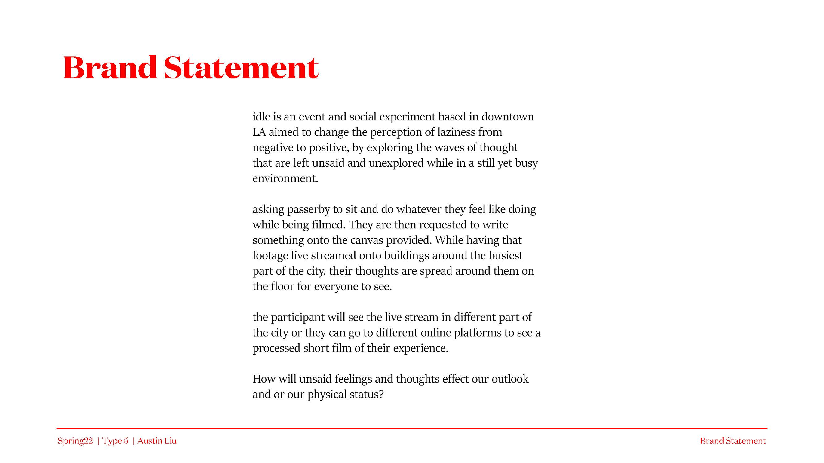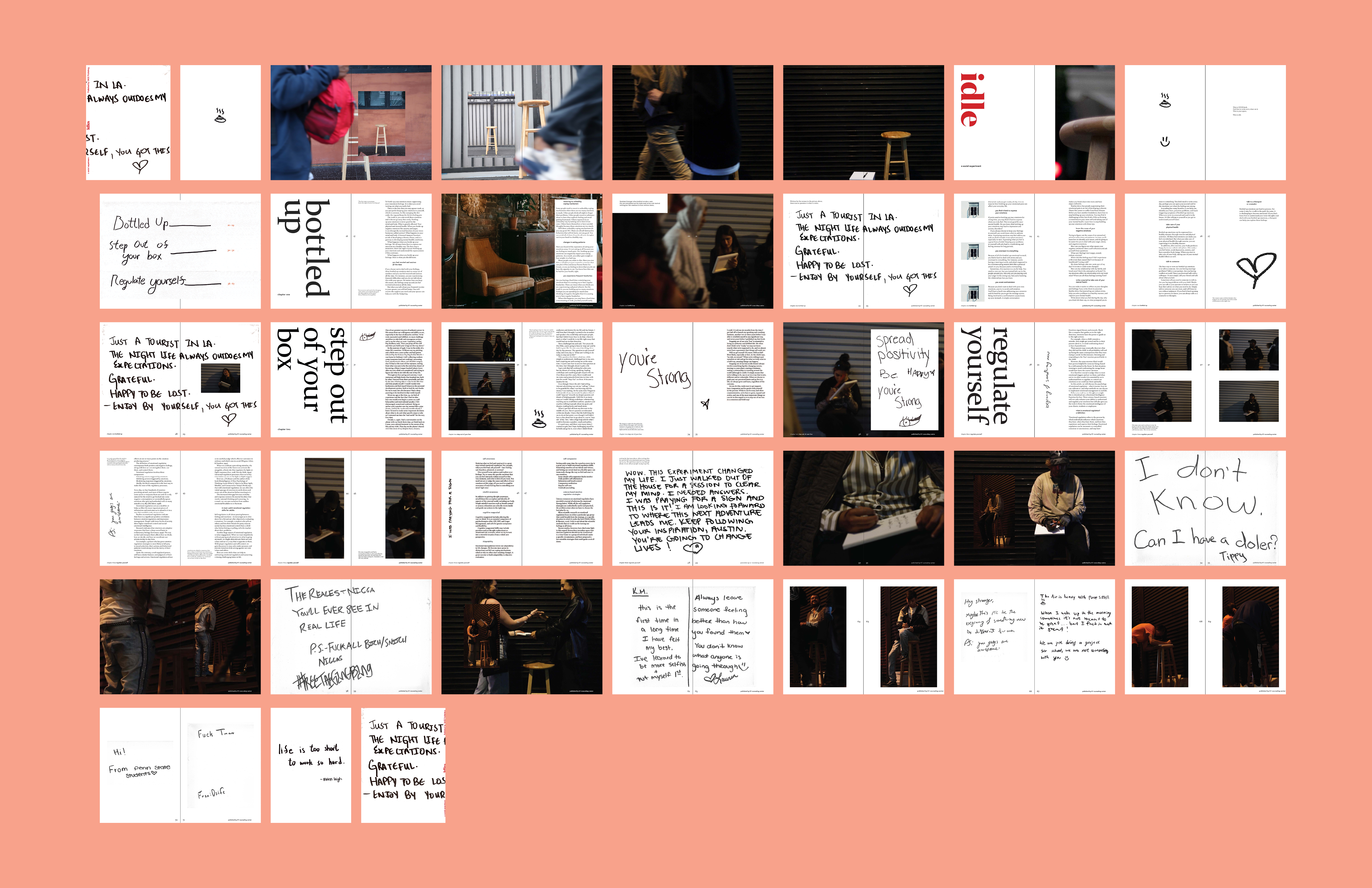 I started from literally nothing, and then step by step I created a branding event, utilizing a brand (Calm), and an artist (Timothy Goodman). It is a social experiment to explore the thoughts we have hidden away, or just want to say but for some reason cannot. We have the passerby sit down and write their thoughts while being filmed.