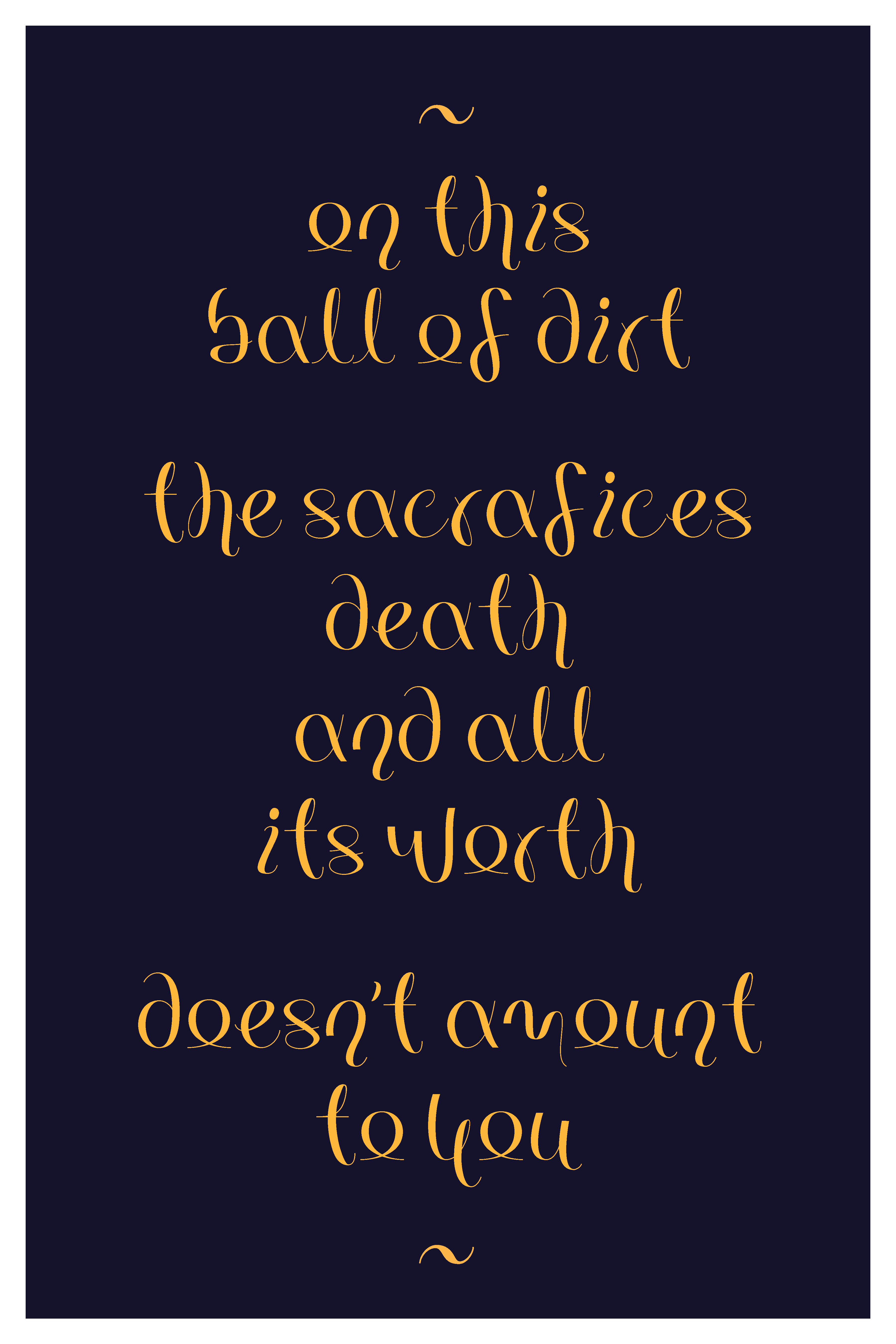 I wanted to develop a typeface that combined my handwriting and my interest in outer space and alien life, so I thought, "What would it look like if aliens made a language that's similar to English?