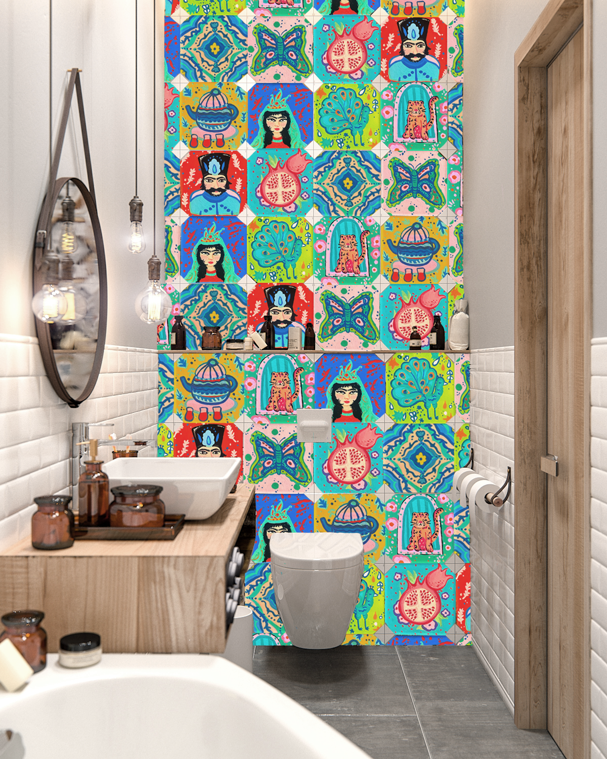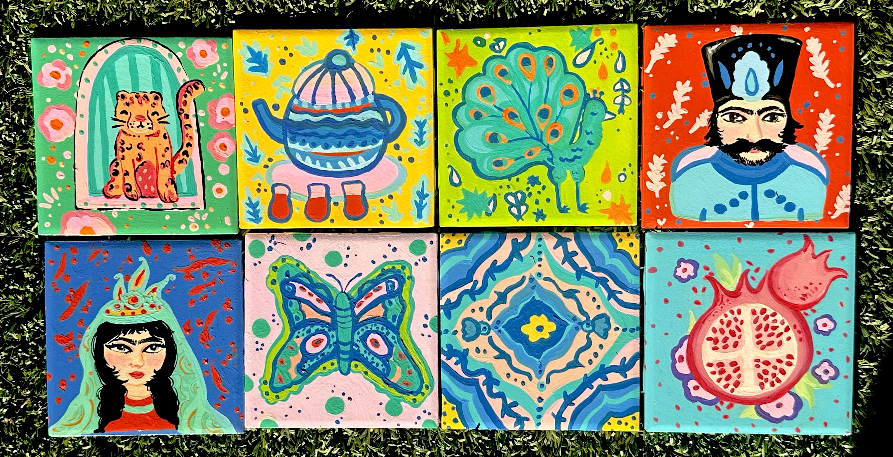 Hand-painted eight 4x4 ceramic tiles inspired by Persian culture, incorporating folktales, traditions, and figures that have influenced me. This project reflects my identity as an artist and focuses on bringing my surface design to life. These tiles were painted directly with acrylic.
