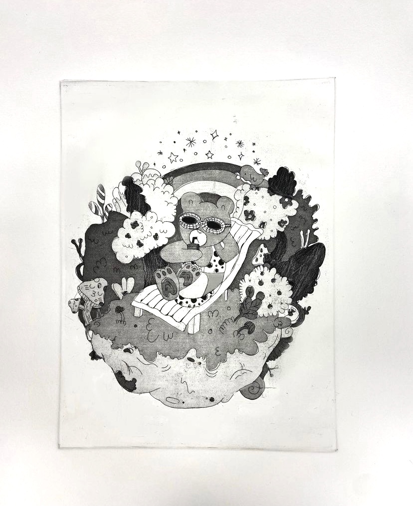 Collection of images of illustrative works, with a mix of mediums ranging from traditional pen and ink, to printmaking, to digital. I focus on a playful, fun, vibrant approach to each art piece.