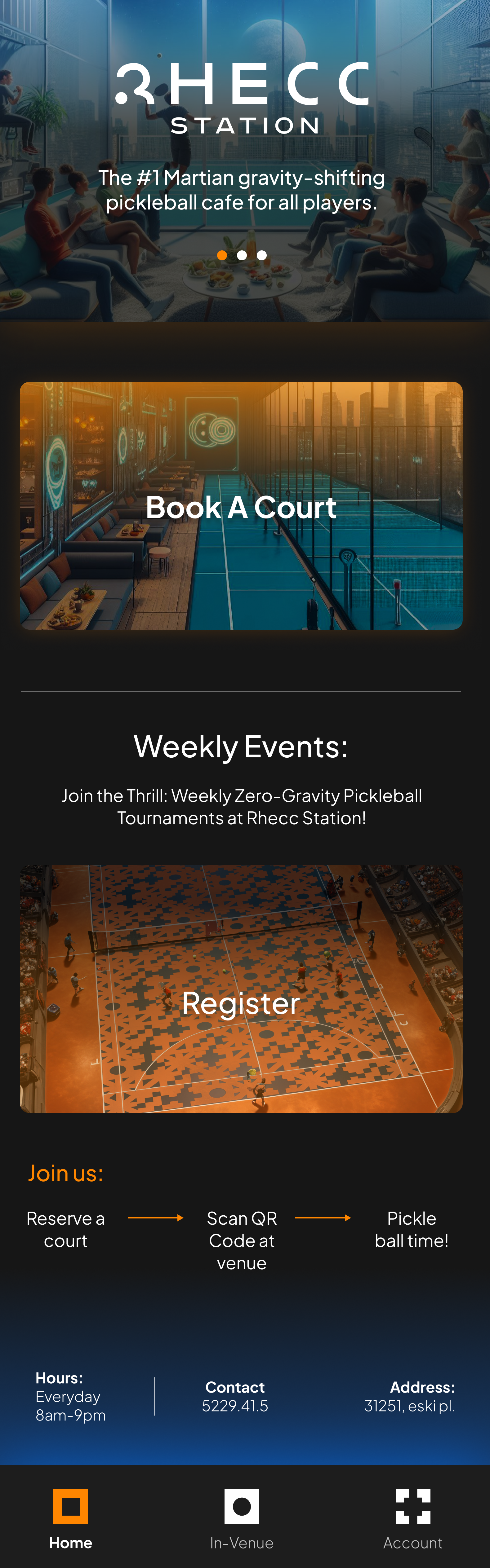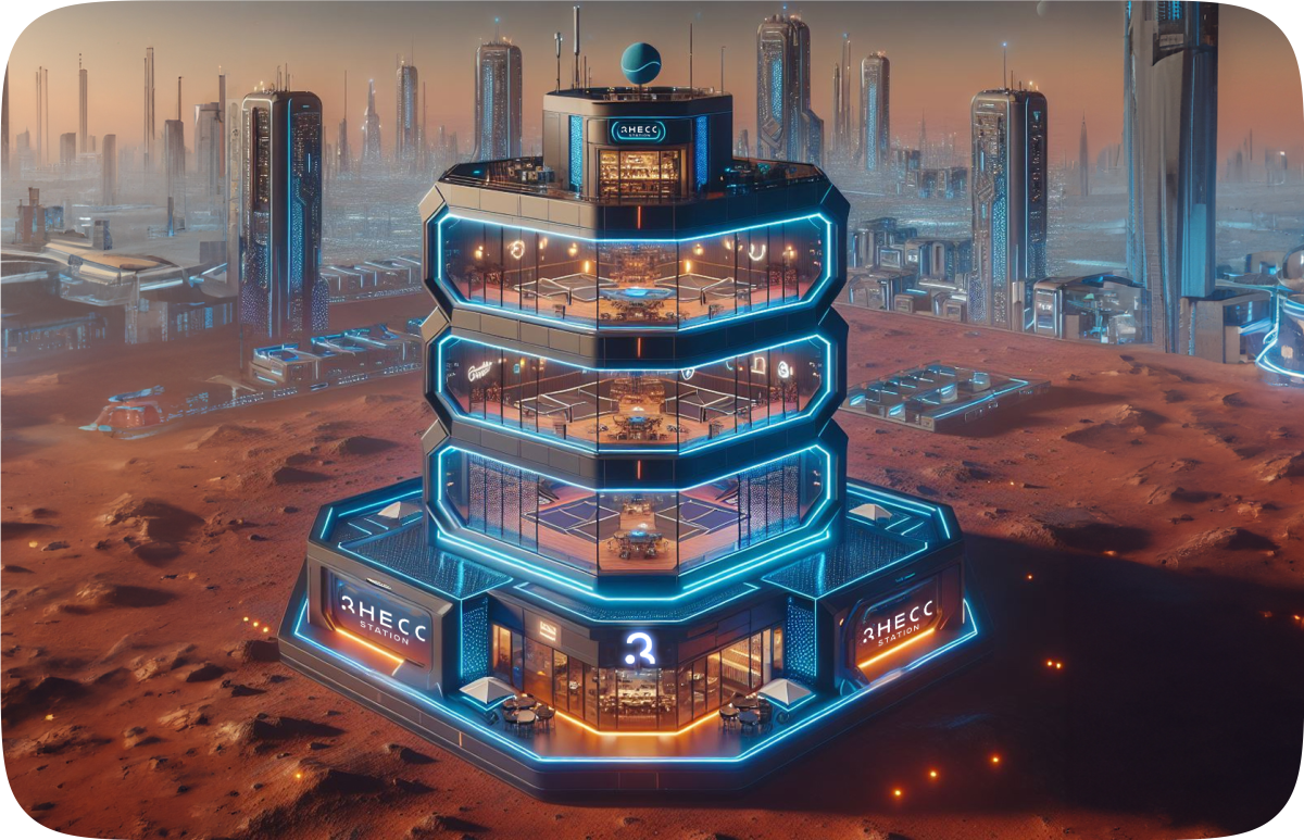 Humans have settled on Mars, but what’s still missing? Beyond basic needs like food, air, water, and shelter, where can people connect and build a community in a Martian atmosphere? My team, including Rhys Benham and Anastasiia Glekel, created Rhecc Station—a pickleball cafe where people can connect and have fun in a gravity-shifting environment.