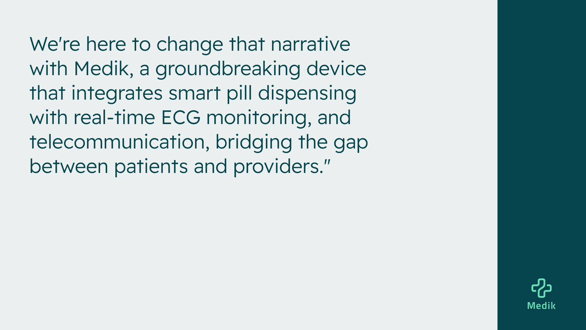 Medik is a groundbreaking device that integrates smart pill dispensing, real-time ECG monitoring, and telecommunication, bridging the gap between patients and providers.