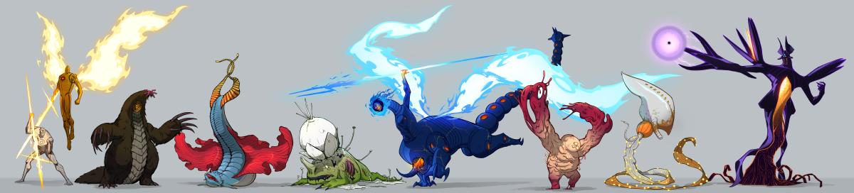 A character lineup with expressions sheets and turnarounds of creatures from a story that I am developing called, "The Akin." The premise is about a lone giant on a journey of self discovery while wandering a now desolate earth. along the way, he will meet the surviving remnants of humanity and battle giant monsters that threaten them. Along the way, the Akin discovers a great conspiracy led by otherworldly beings whom may also may be connected to the Akin's own mysterious existence.
