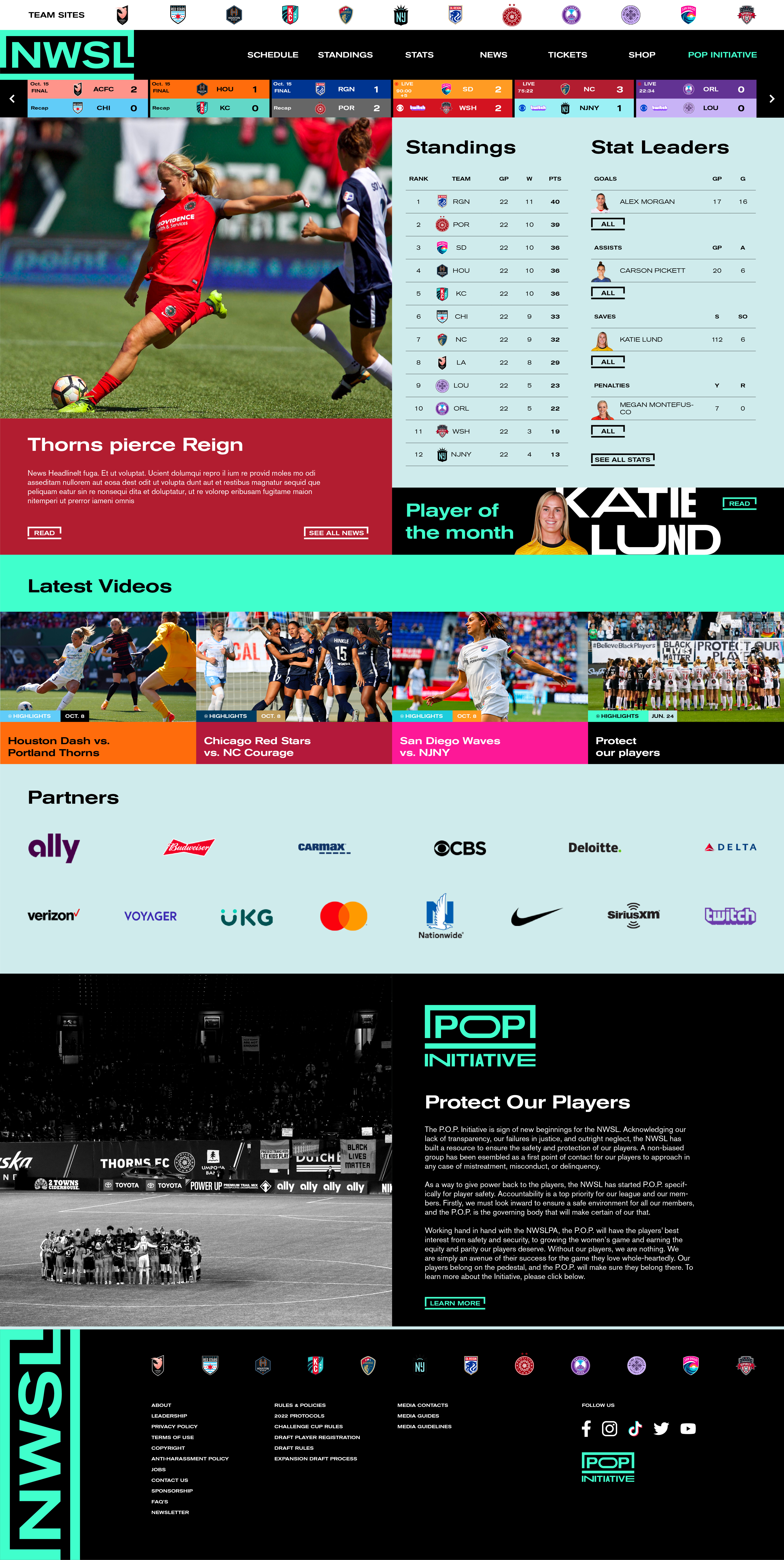 Consistency is key throughout a rebranding project. There aren't many, if any at all, touchpoints of a brand that receive more eyes than the website. The challenge is clearly designing the content to be received quickly and without confusion. Hierarchy is key. For a sports league, the content is heavy and people are looking for many different things. It's important they can find that info as quickly as possible.