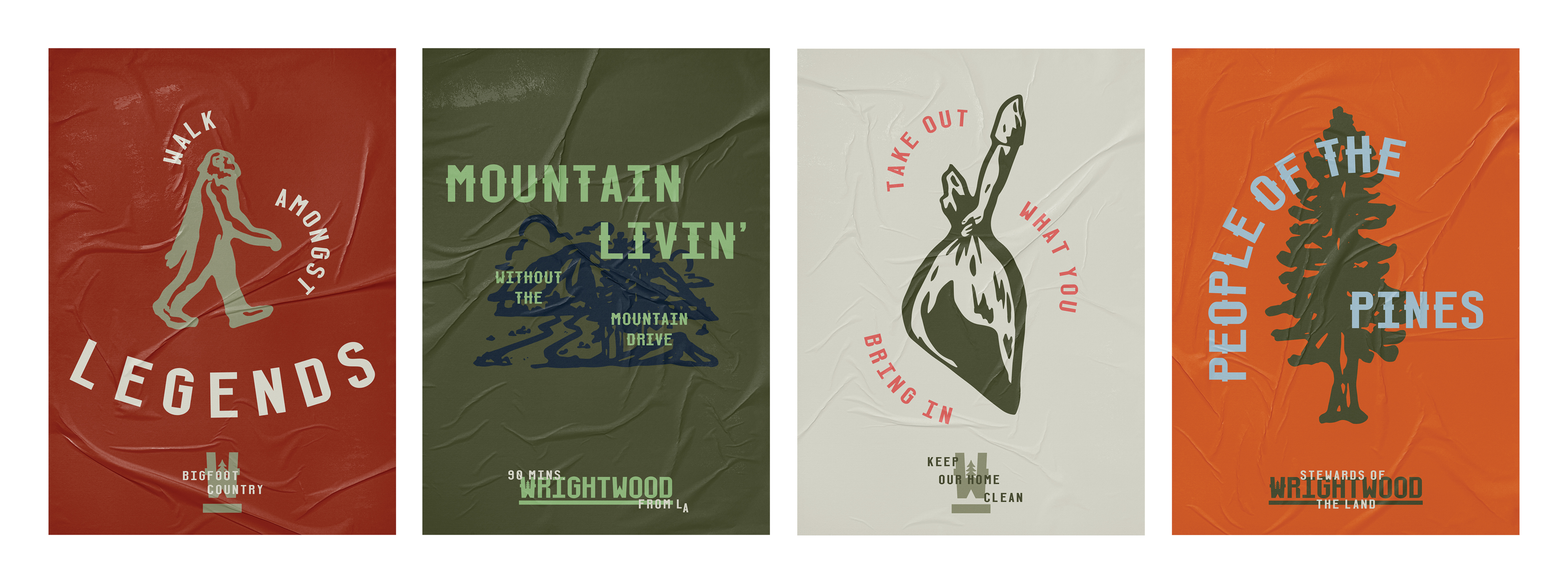 As part of my thesis titled Resonance: authenticity, meaning, and branding for people and place, the case study was creating a branded "kit-of-parts" for the town of Wrightwood, California as an open-source community brand. The project will continue after ArtCenter. For any questions or to learn more about the project, feel free to reach out directly or follow along on socials and my website.