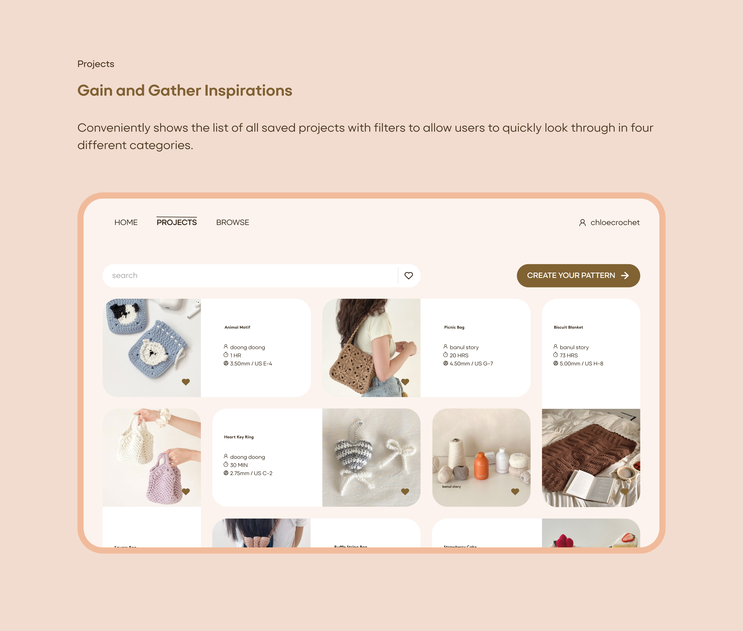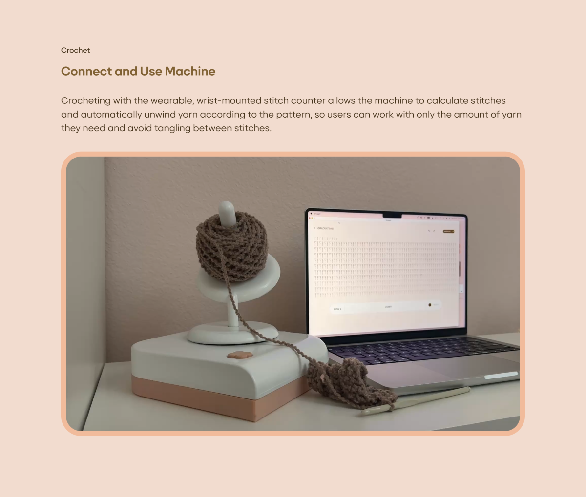 My crochet process was filled with tedious pauses—untangling yarn, recounting stitches, and figuring out where I left off each time. These small frustrations slowly took away from the joy of crocheting, especially when I was trying to balance my life as both a crocheter and a busy student.
