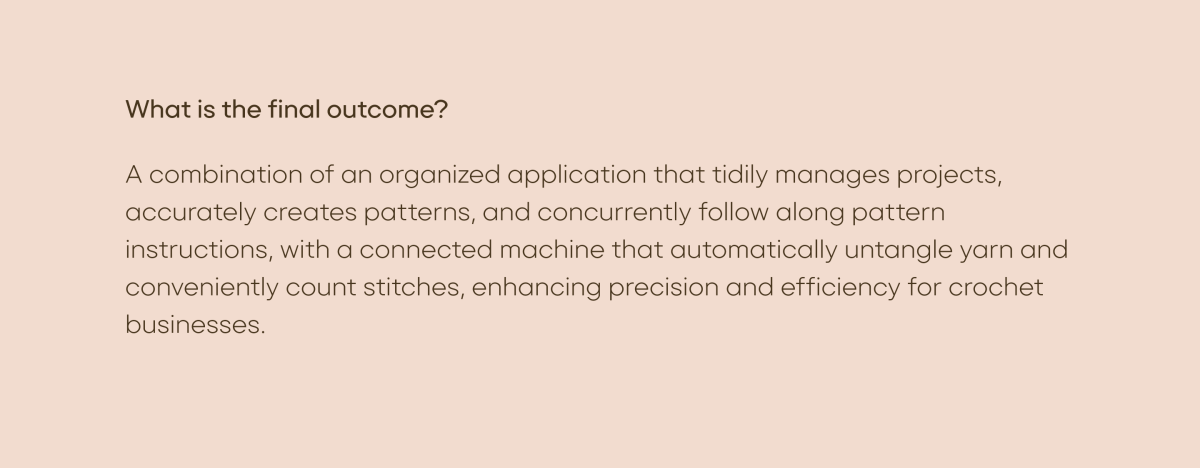 This led me to wonder, “What if I had a personal assistant for crocheting?” Using my skills as an interaction designer I began to explore how this traditional form of art could merge with modern technology to create a smoother and meaningful experience.