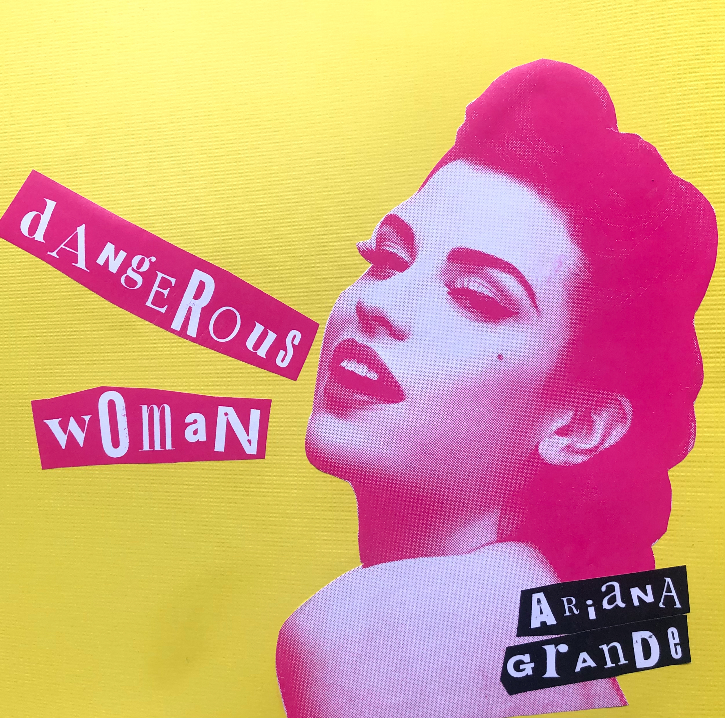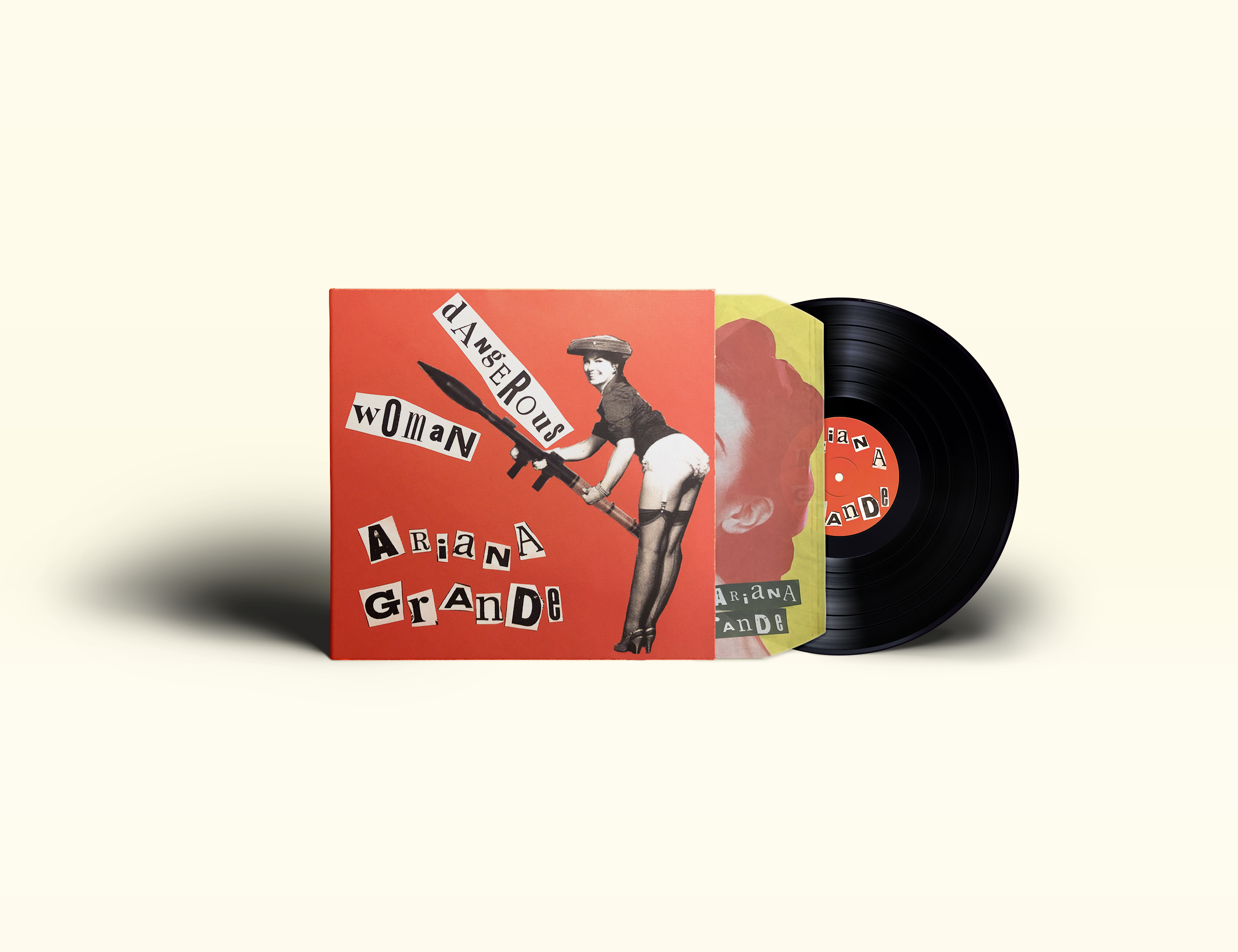 For this project we had to chose a musical artist and a historical design style (Swiss, new wave, punk, etc) and combine them to make an album cover design. I chose Ariana Grande and the punk style because I thought the two had a nice contrast and could yield something interesting. Everything was done analog with cutouts and scans except for the final mockup.