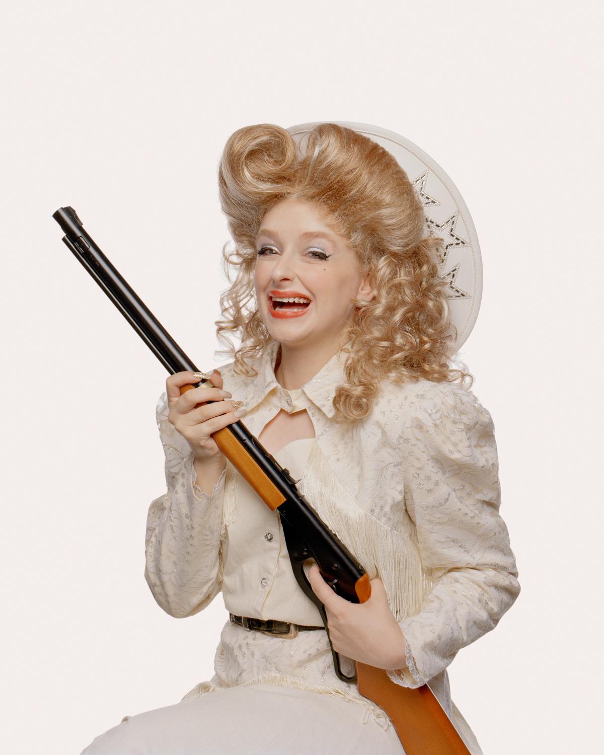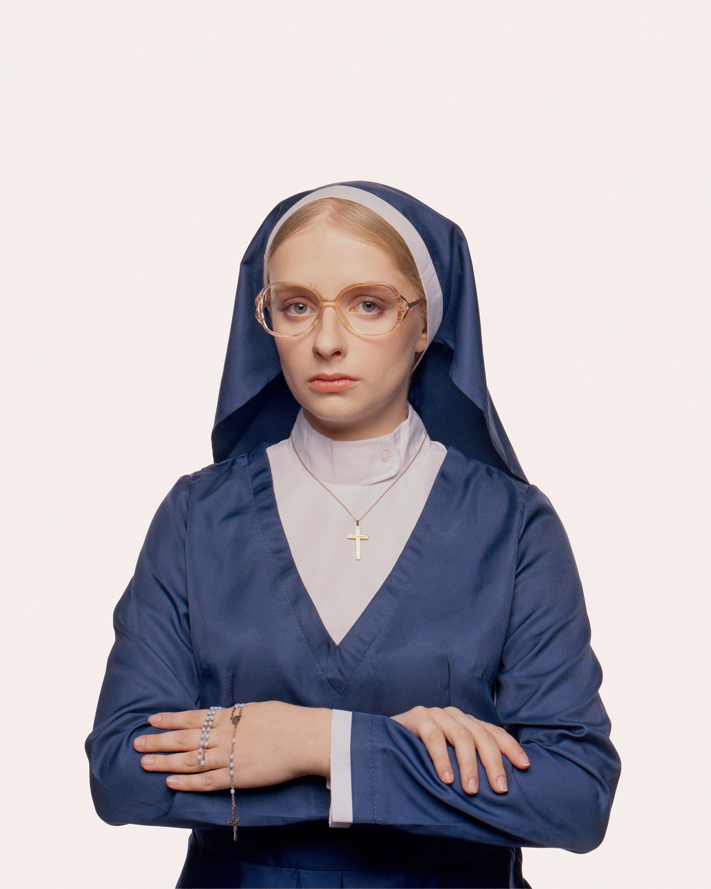 In this work, Stephen stages a series of incomplete transformations through the use of saturated color, oversized prosthetics, synthetic wigs, and false teeth. She appears as a showgirl, a pioneer, a beauty queen, a nun, but the performances never fully settle into illusion. Instead, the constructed nature of each character remains visible: the seams are left exposed. What emerges is a body of work that is at once humorous, uncomfortable, and sincere. Stephen’s images exist in the space between mimicry and self-portraiture, where adopting the guise of another becomes a mirror – distorted, but revealing. In the process of becoming someone else, the artist exposes the fragments of herself that remain beneath the surface, confronting the lingering impact of trauma, the instability of self-image, and the blurred boundary between who she is and who she’s been told to be.