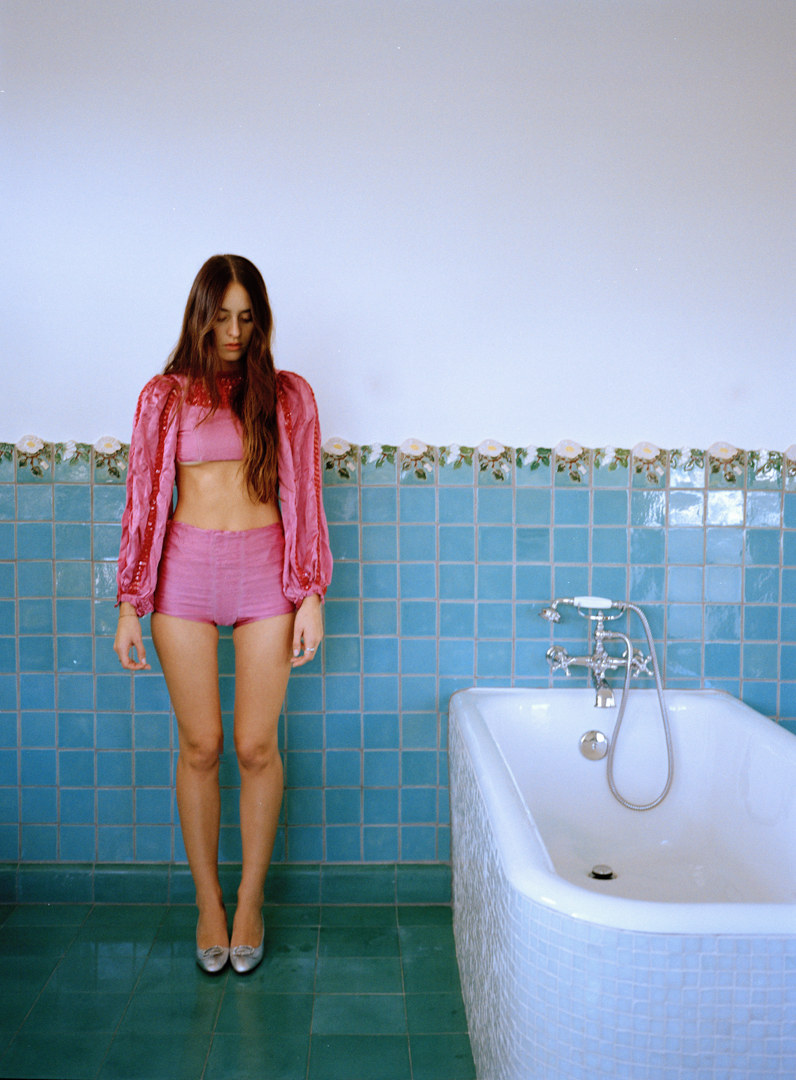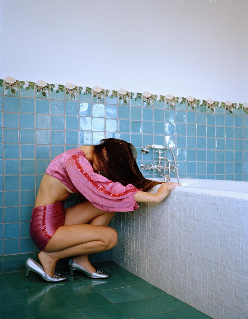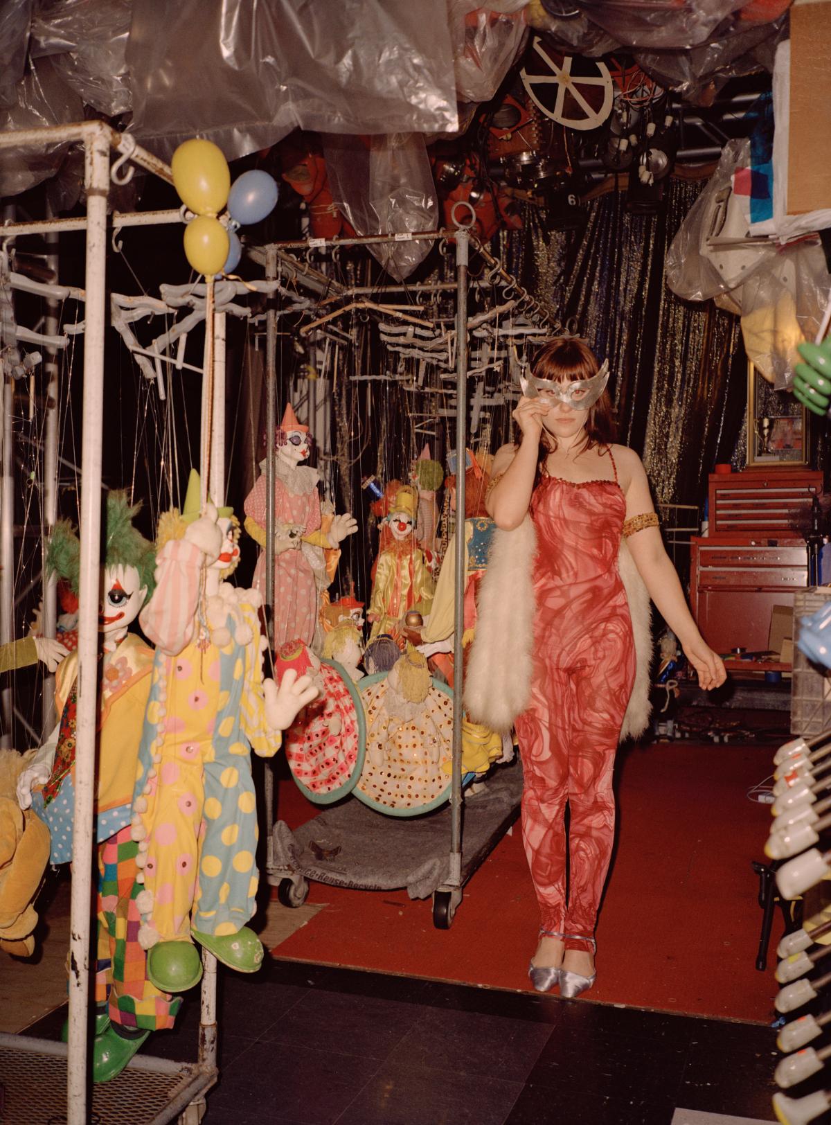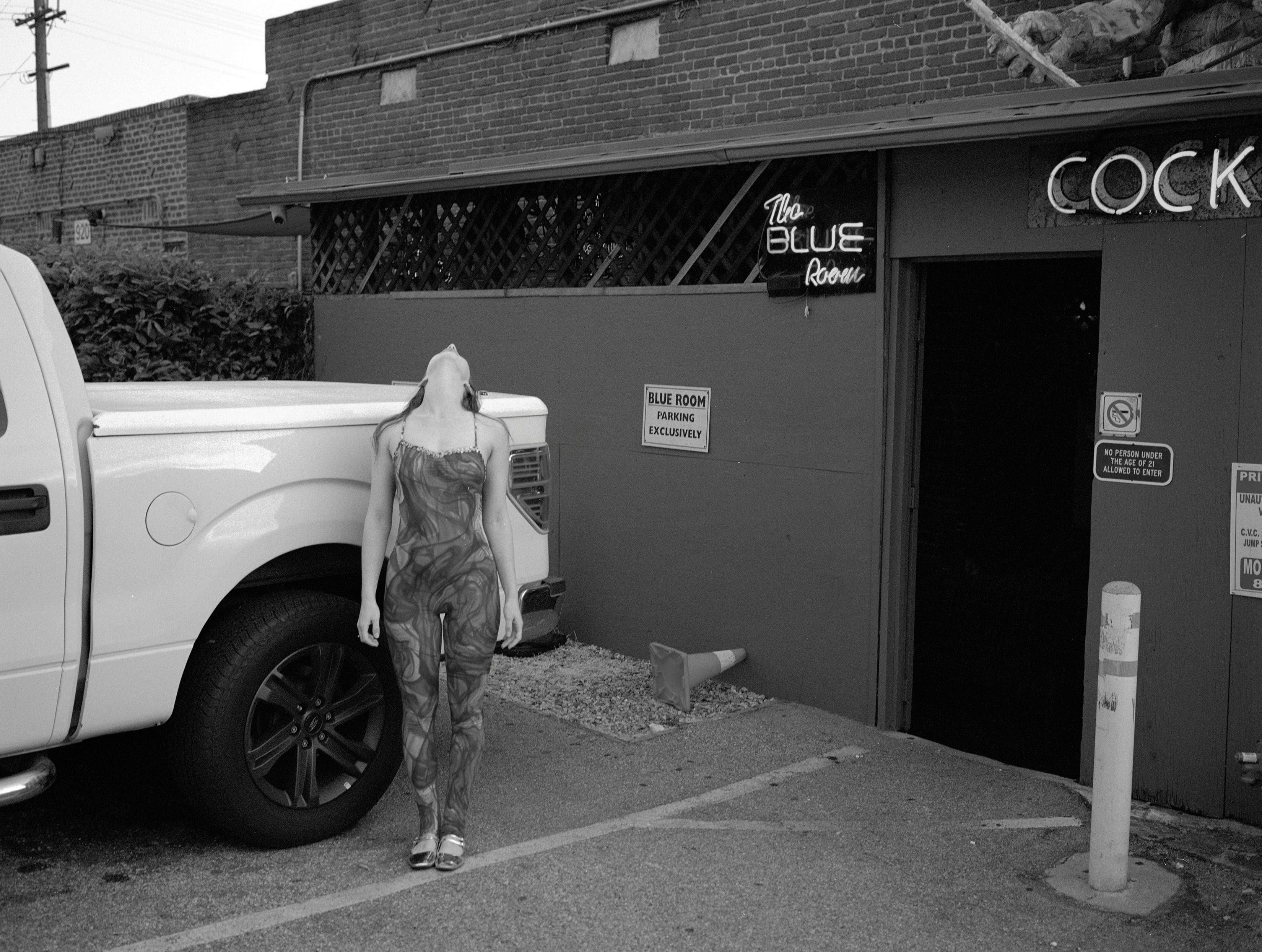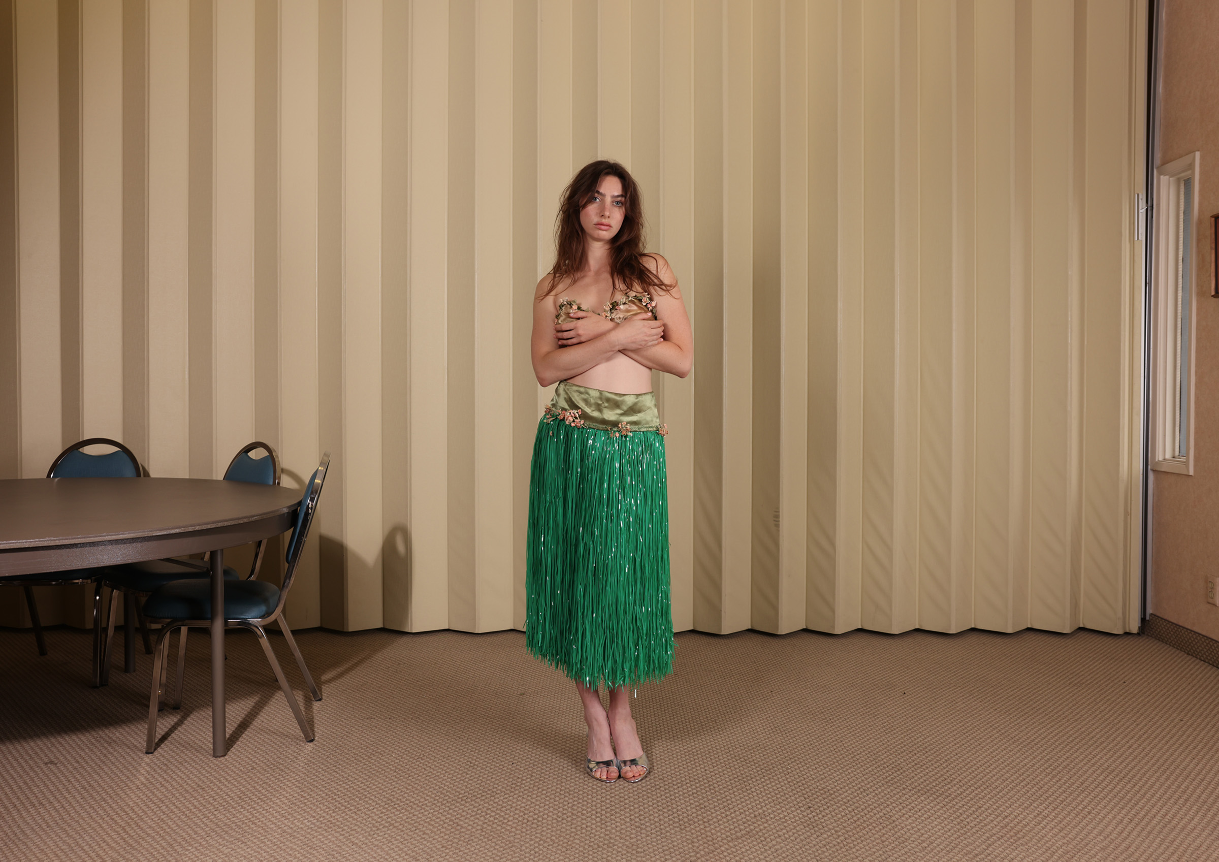 Stephen’s ongoing project, Women (2025), depicts women wearing antique, handmade theatrical costumes, in incongruous settings. These women pose facing the camera, often deadpan, commenting on the ways in which women are expected to perform at all times. For example, in the photograph, Nursing Home, a woman wearing a 1940s Hawaiian costume is posed holding her breasts against a bleak background, reducing her to a mannequin-like form. This project revolves around the artist’s intimate relationships with her models, ultimately allowing Stephen to abstract her relationship with herself. By directing others to perform stylized versions of femininity, versions she herself has internalized, Stephen gains critical distance from her own image. The models become both stand-ins and collaborators, enabling her to examine the roles she has occupied without directly placing herself in front of the lens. Through this mediated process, she dissects the emotional, cultural, and psychological layers of her identity, refracted through the bodies of others.